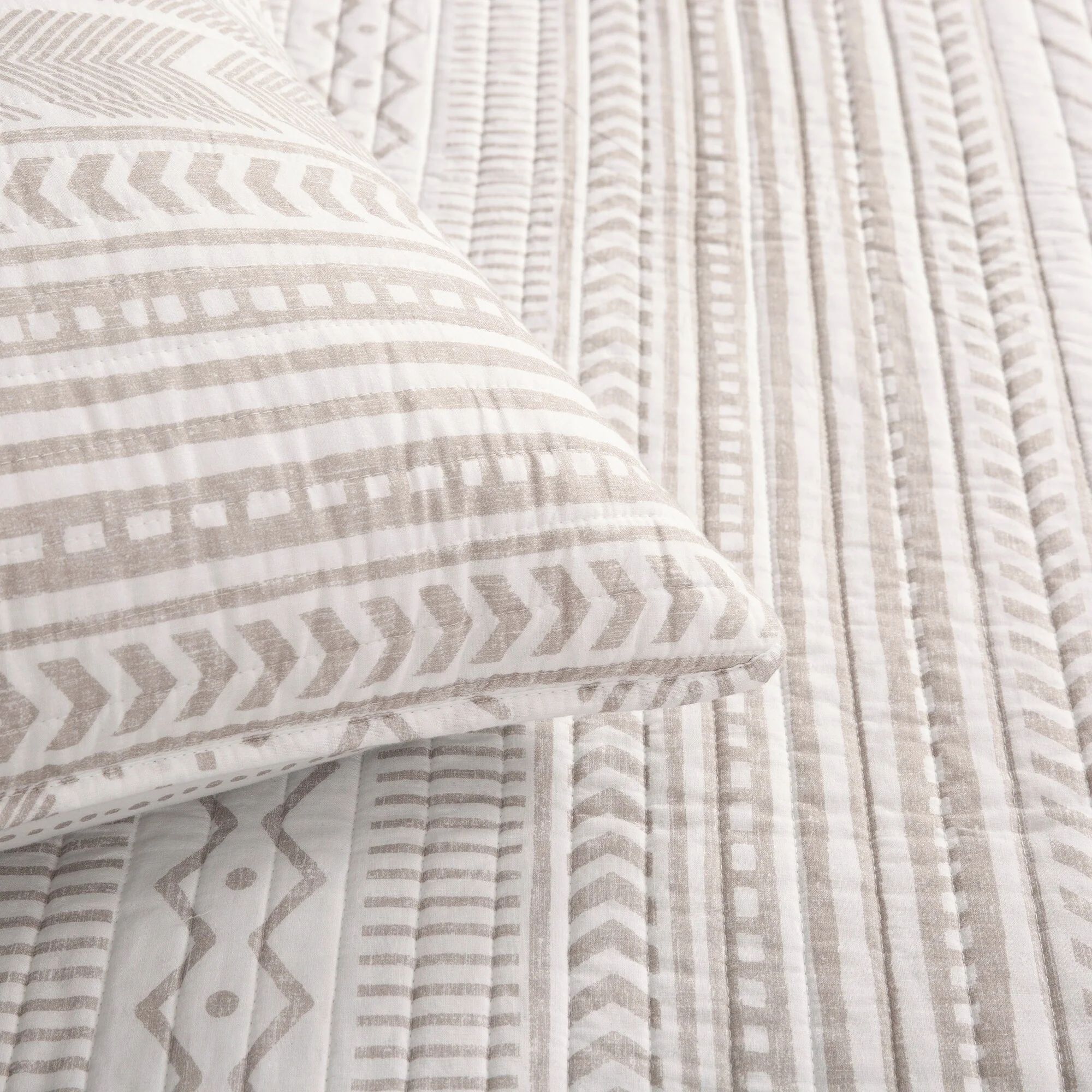 Eddie Bauer Salmon Ladder Beige Cotton Quilt Set