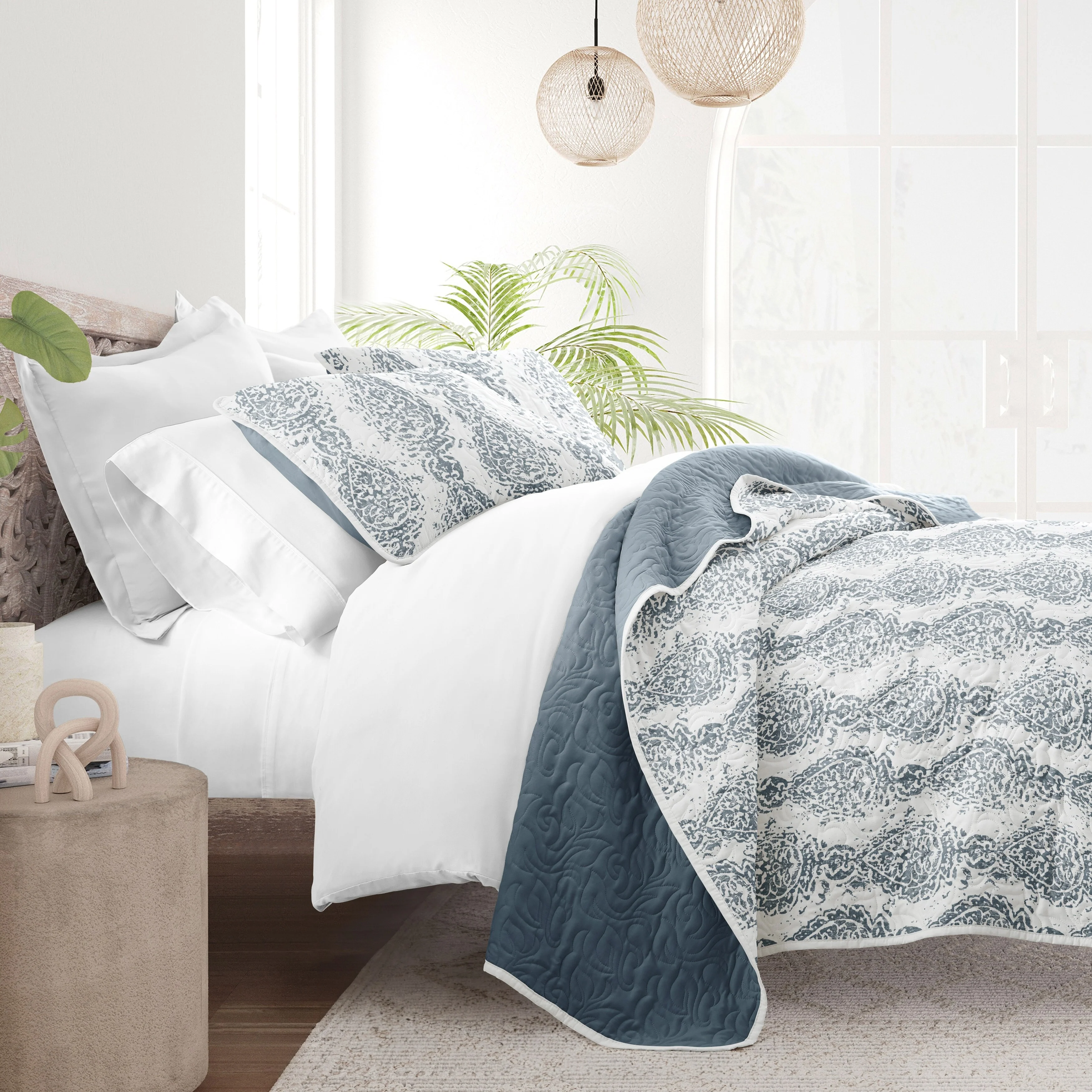 3-Piece Reversible Ultra Lighweight Coverlet Premium Microfiber Bedspread Quilt Set