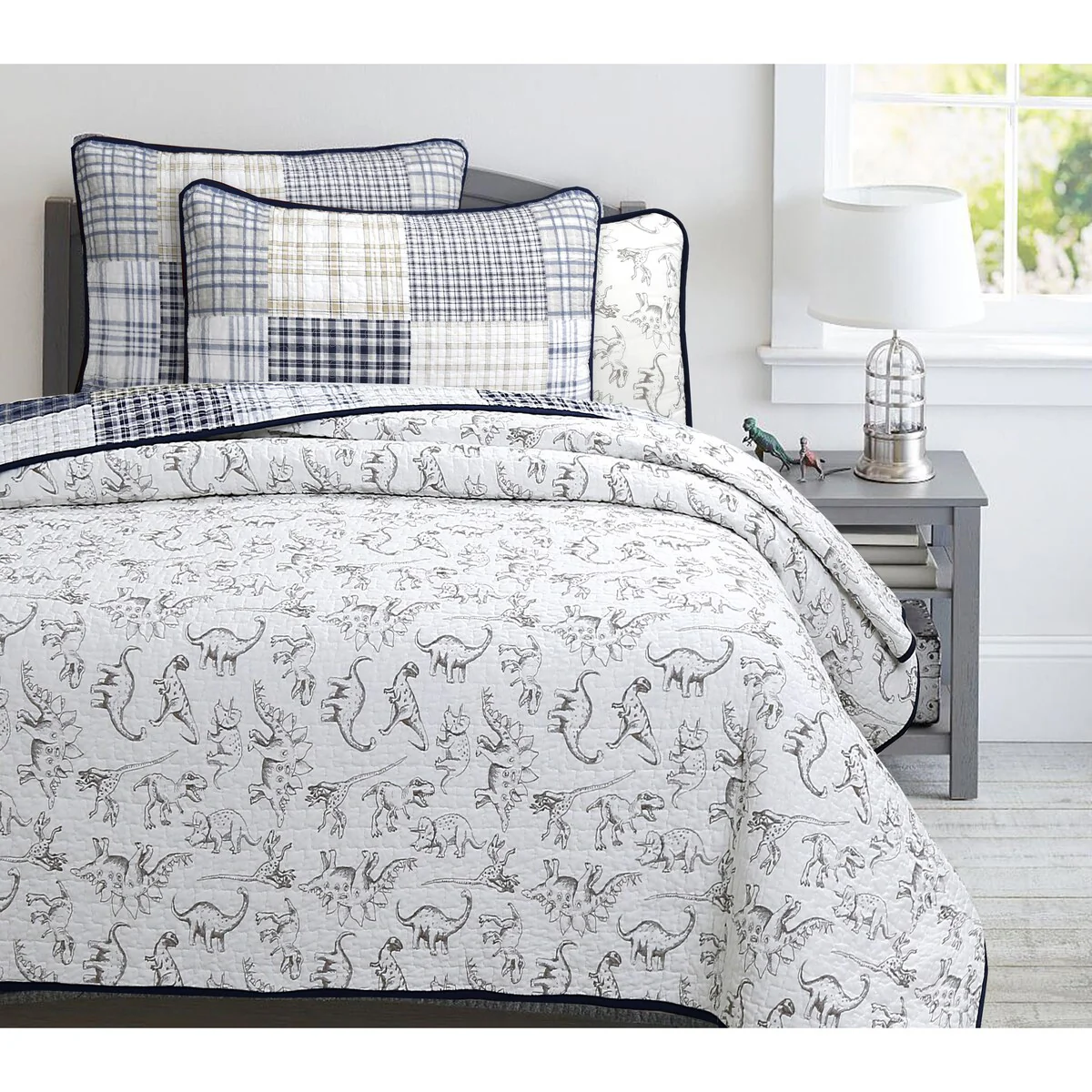 Coverlet Set: White, Sheet Set: Grey - Twin
