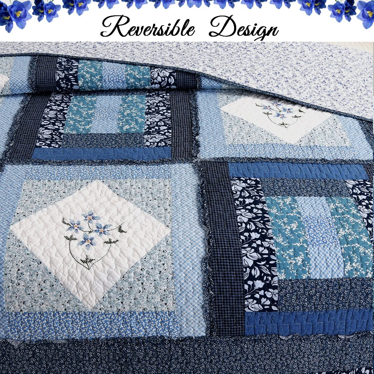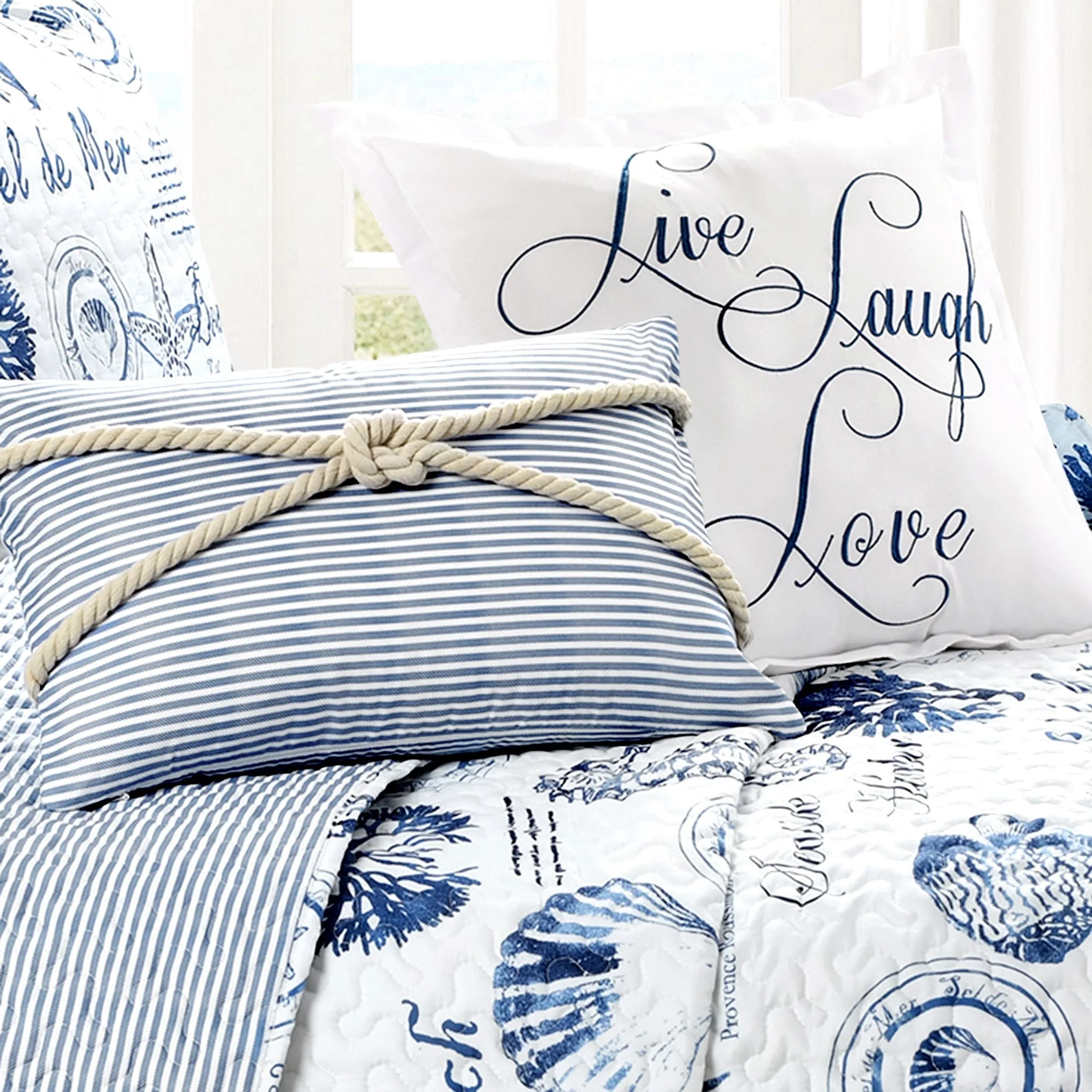 Coverlet Set: Dark Blue, Sheet Set: Light Blue - Queen