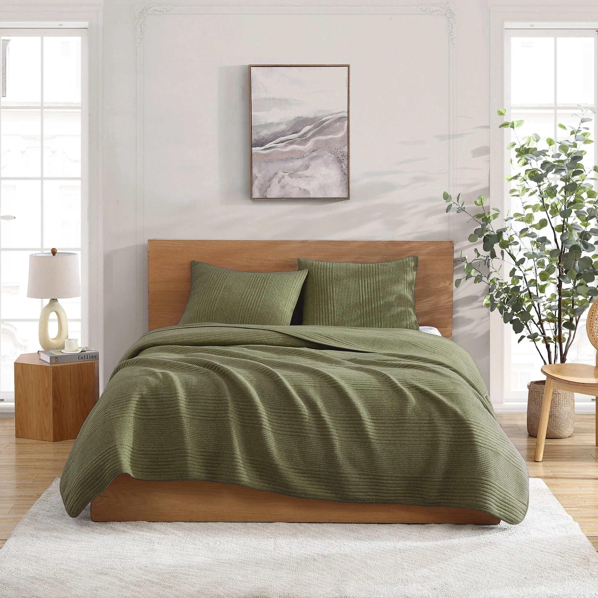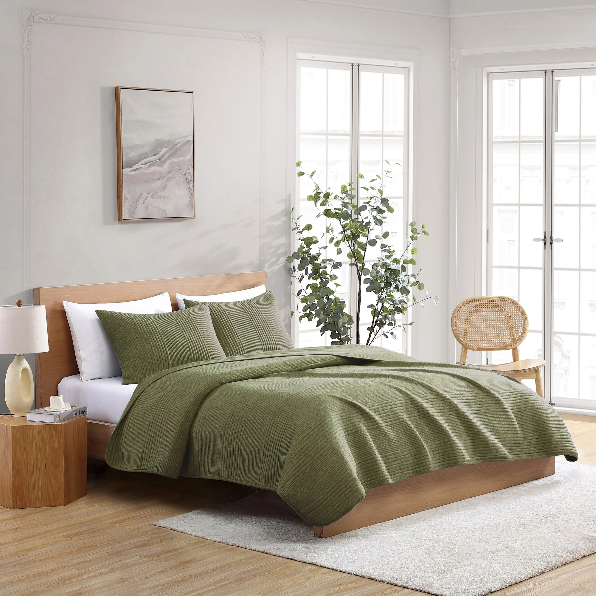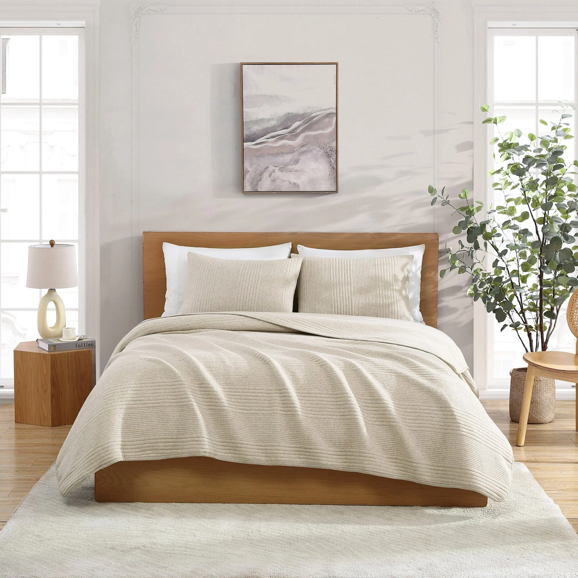 Coverlet Set: Sand, Sheet Set: White - Full - Queen