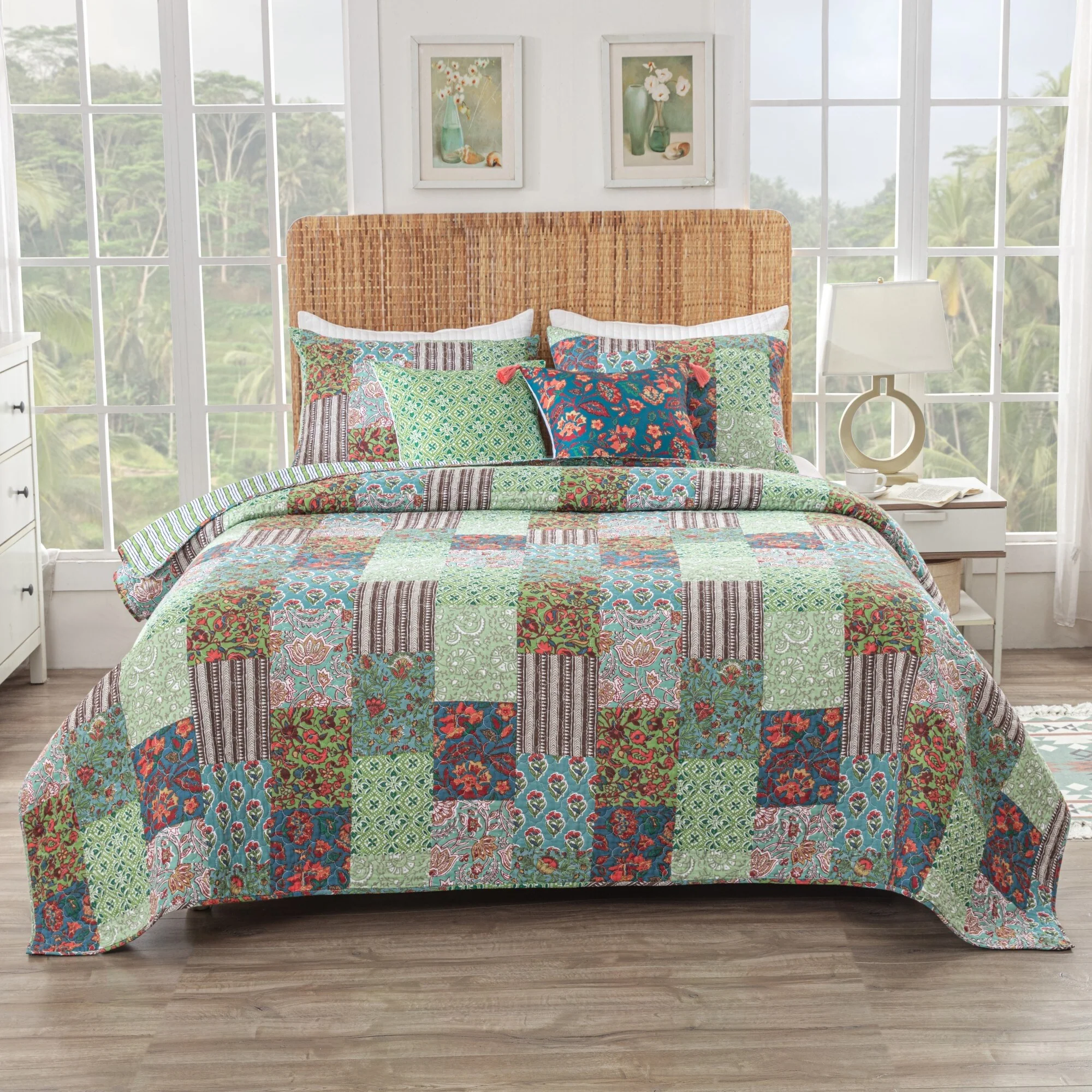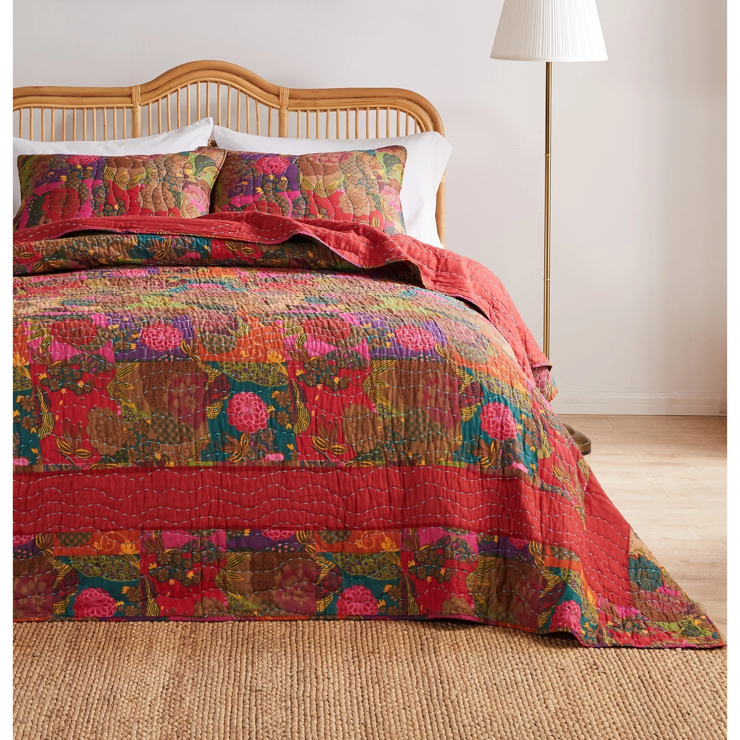 Coverlet Set: Red, Sheet Set: White - Queen