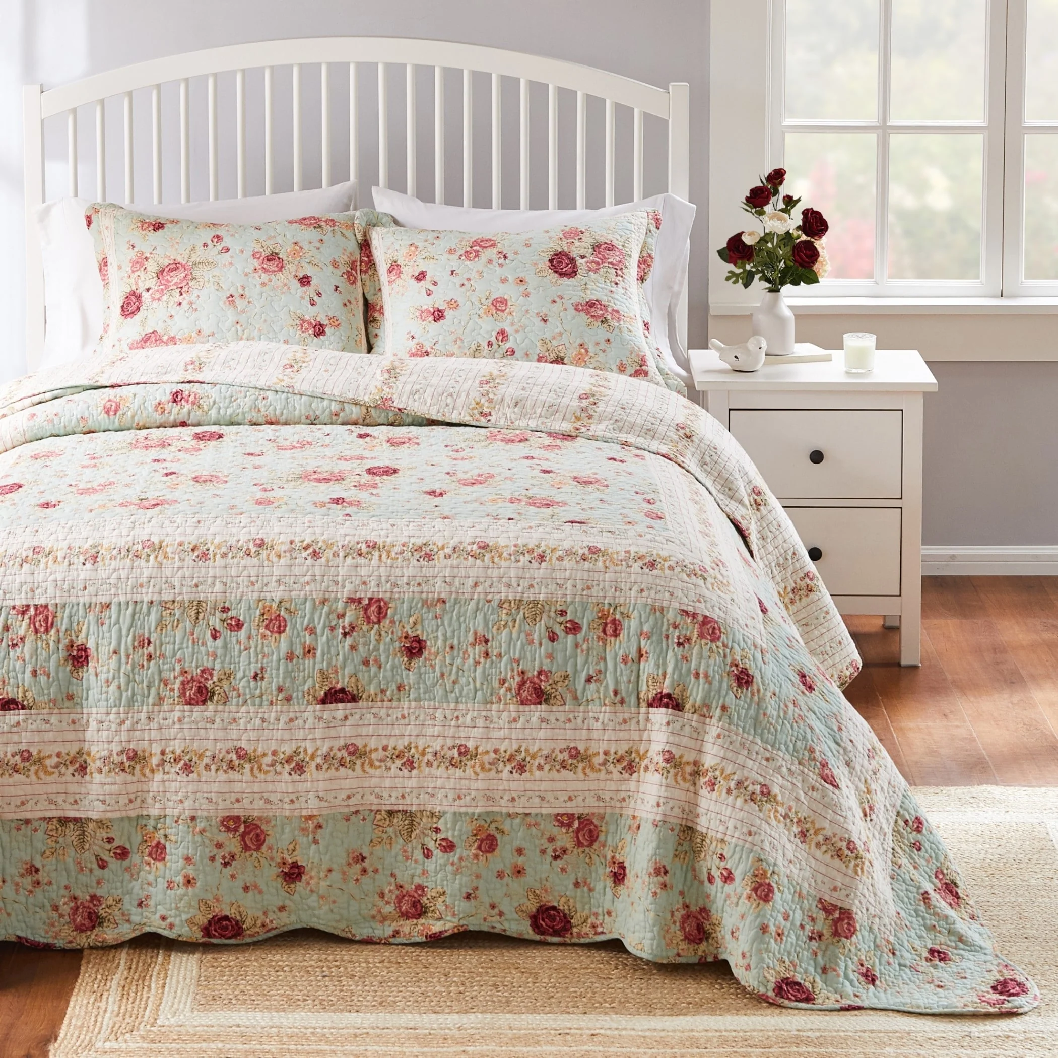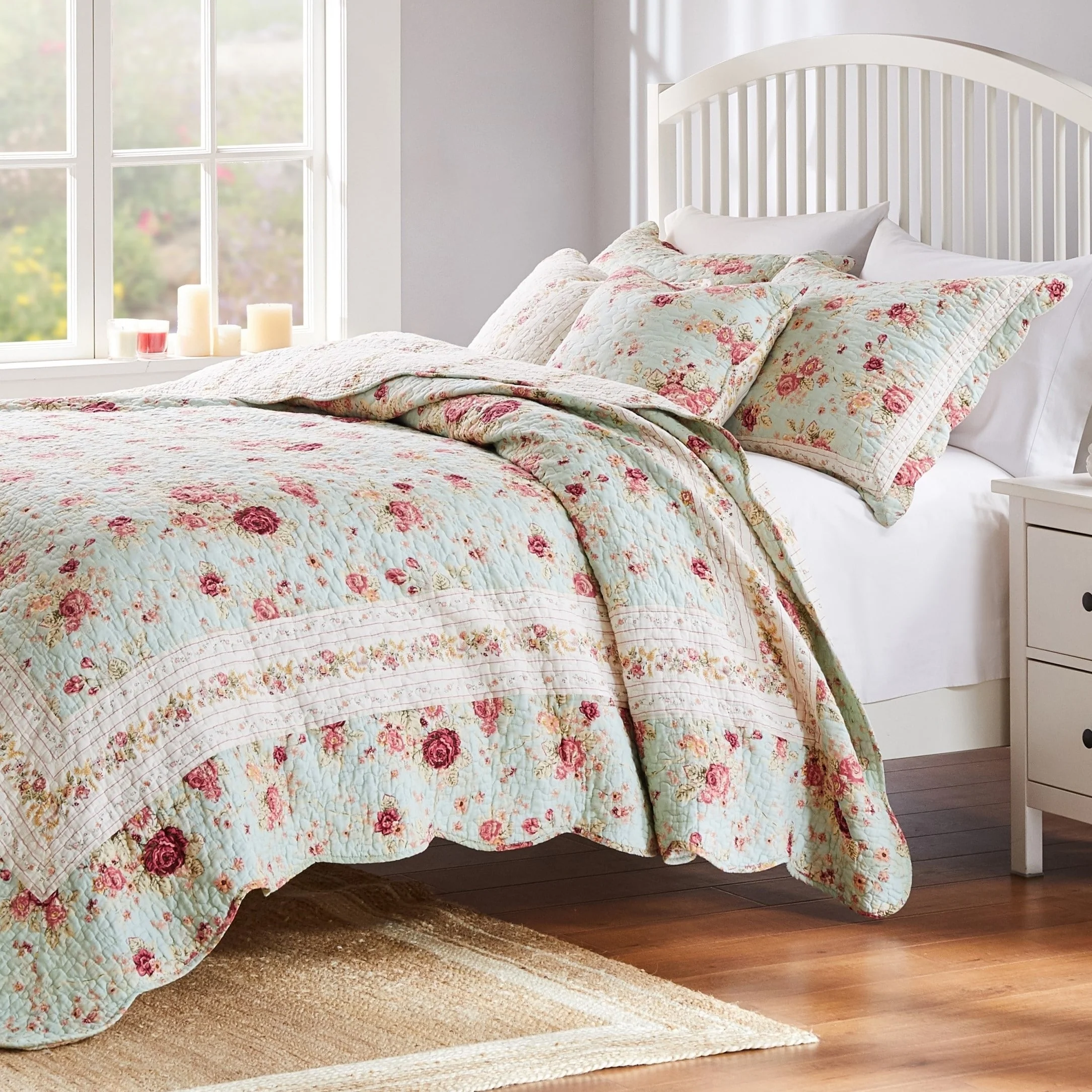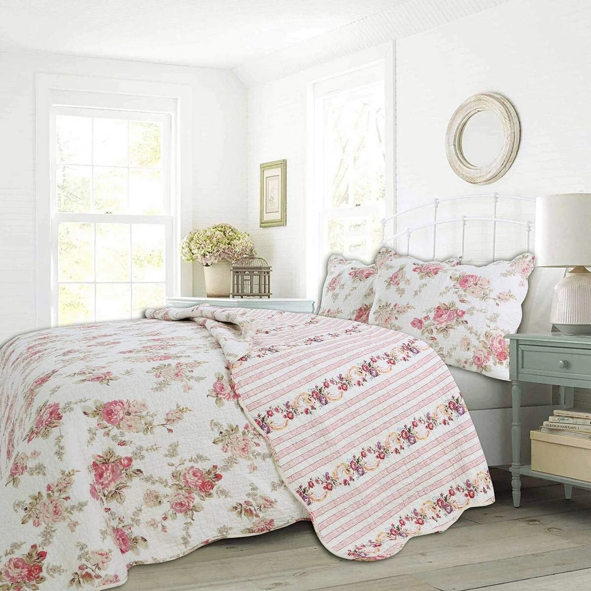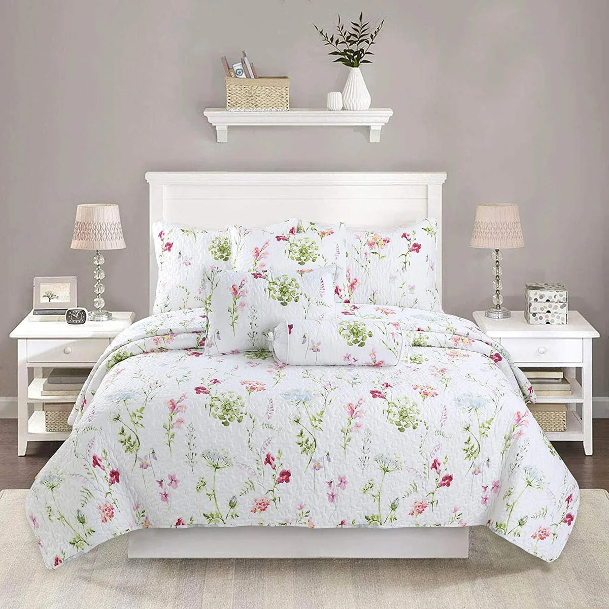 Coverlet Set: White, Sheet Set: Grey - Full