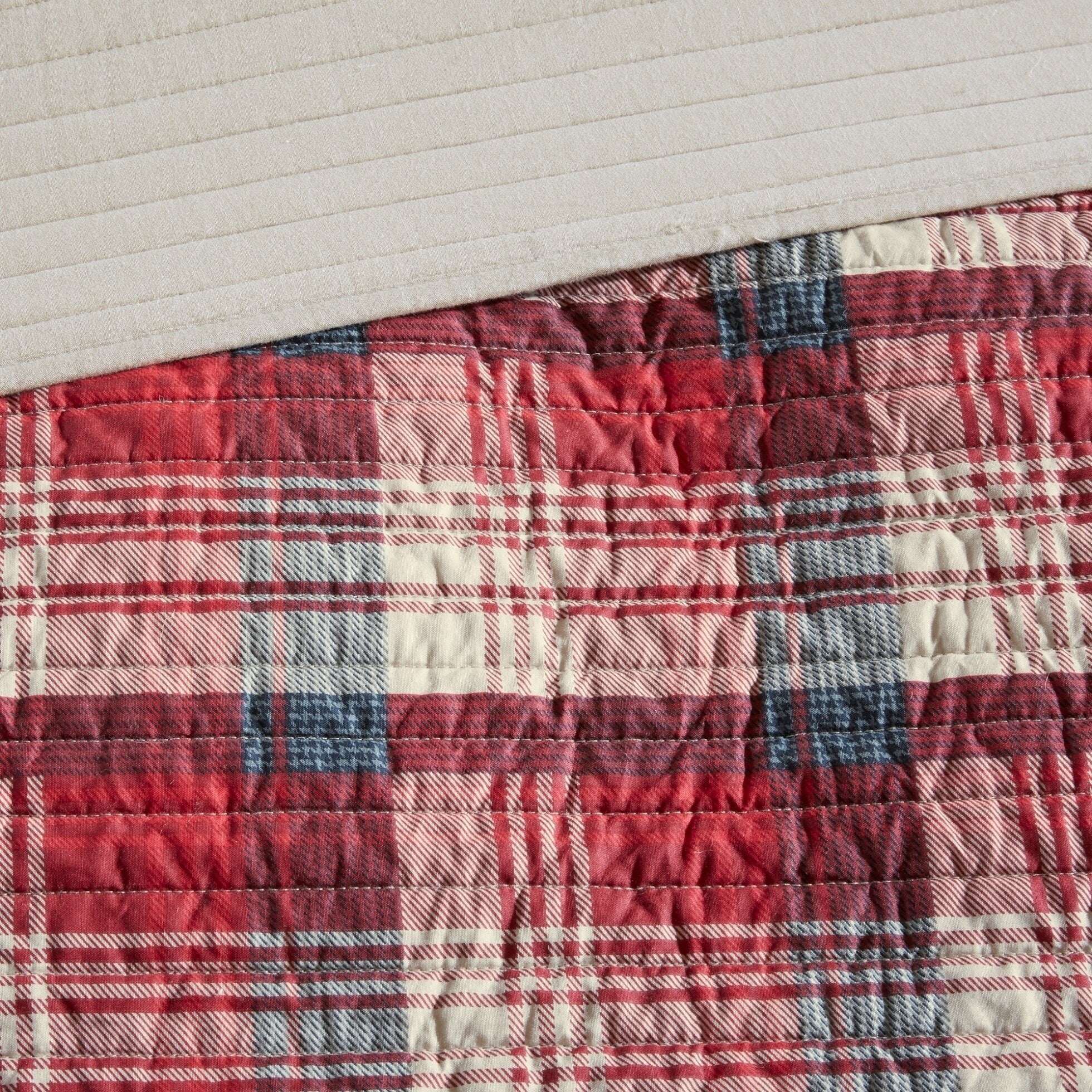 Coverlet Set: Red, Sheet Set: Light Grey - Full