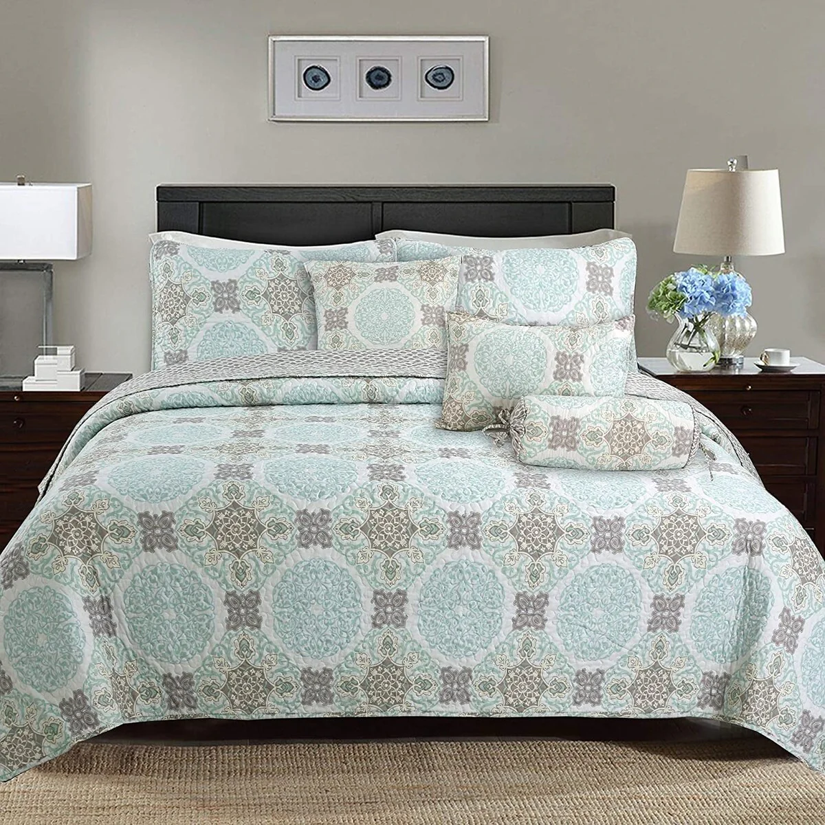 Coverlet Set: Light Grey, Sheet Set: Grey - Queen