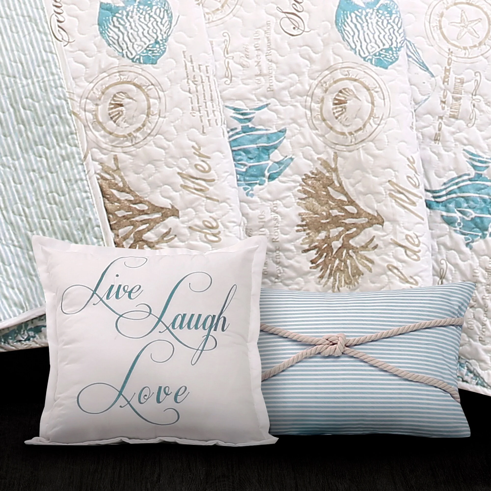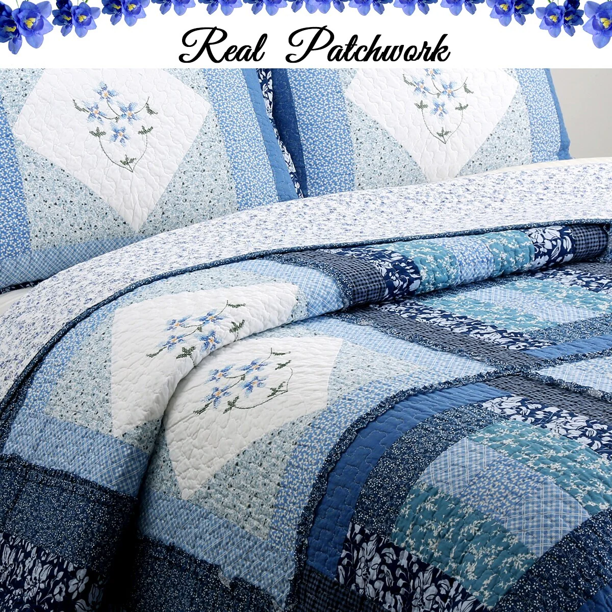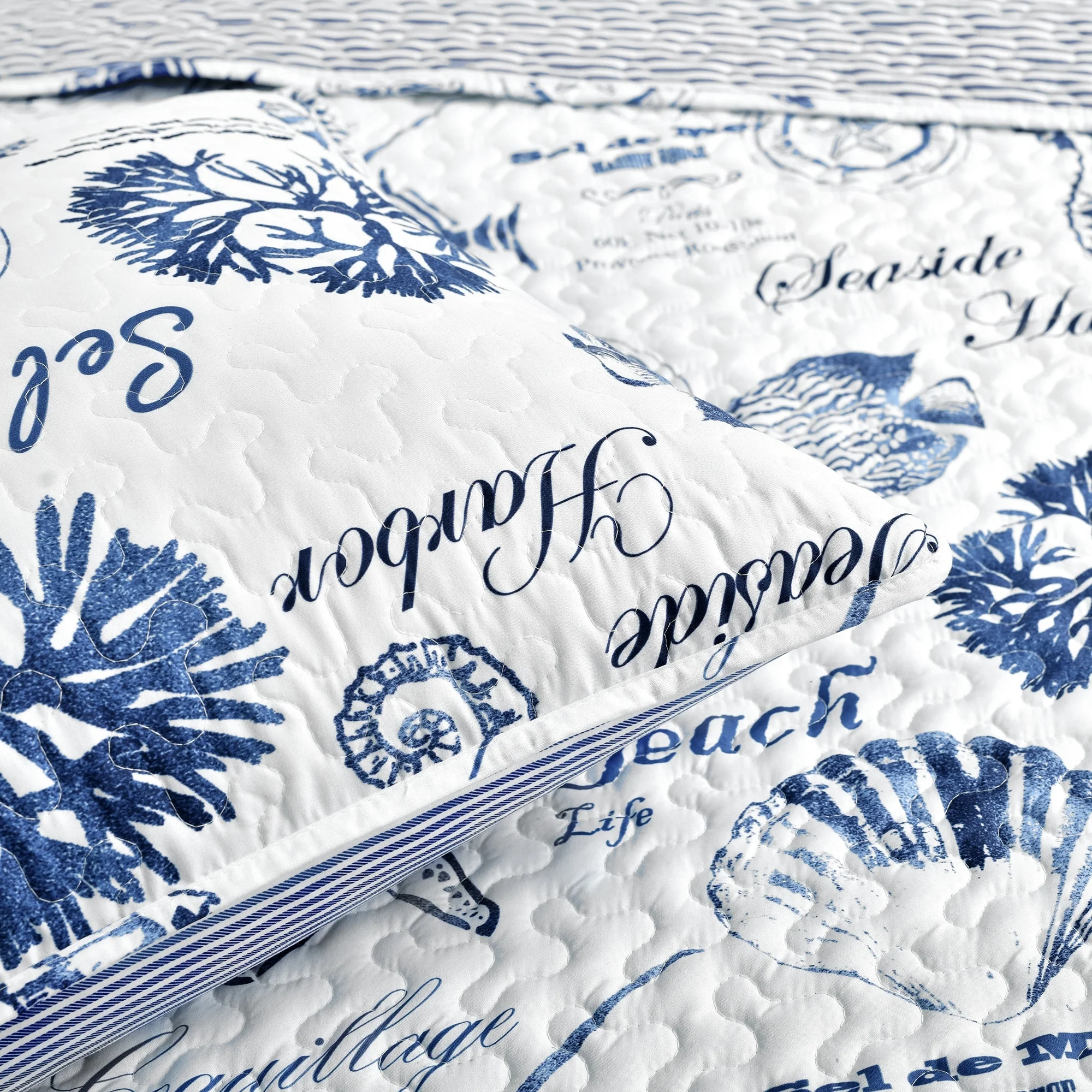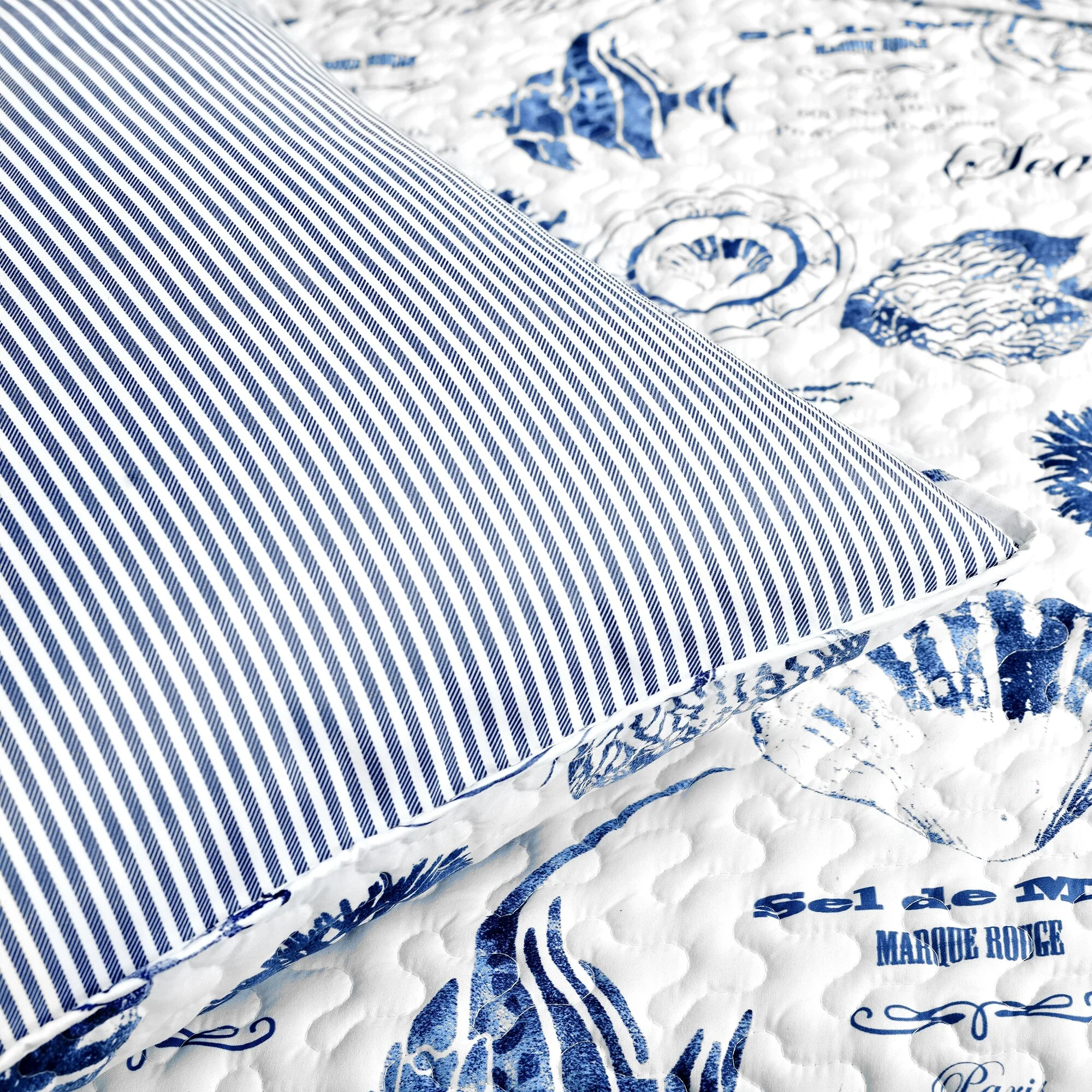 Coverlet Set: Dark Blue, Sheet Set: Light Blue - Full - Queen