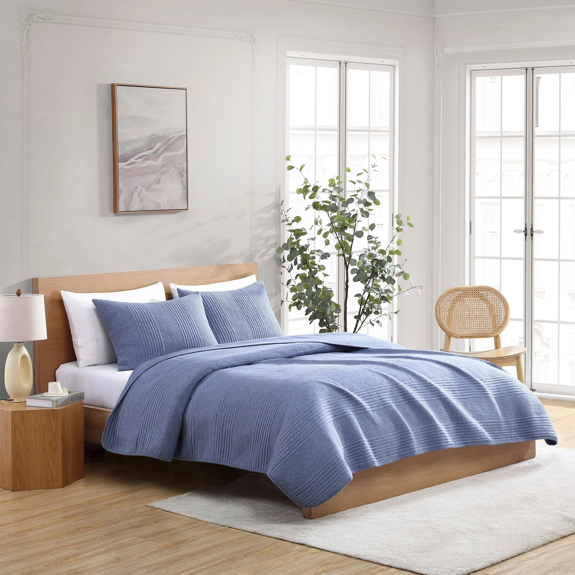 Coverlet Set: Coronet Blue, Sheet Set: Light Grey - Full - Queen