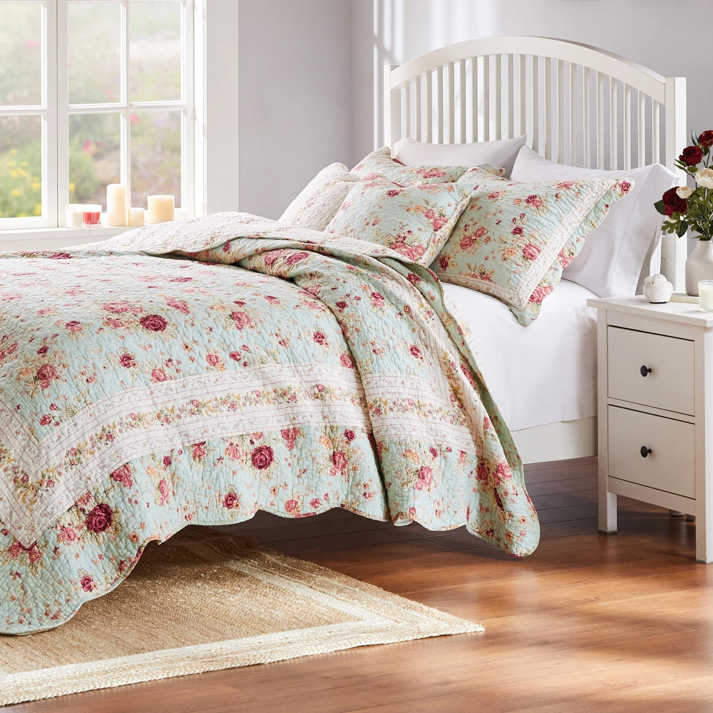 Coverlet Set: White, Sheet Set: Light Grey - Full