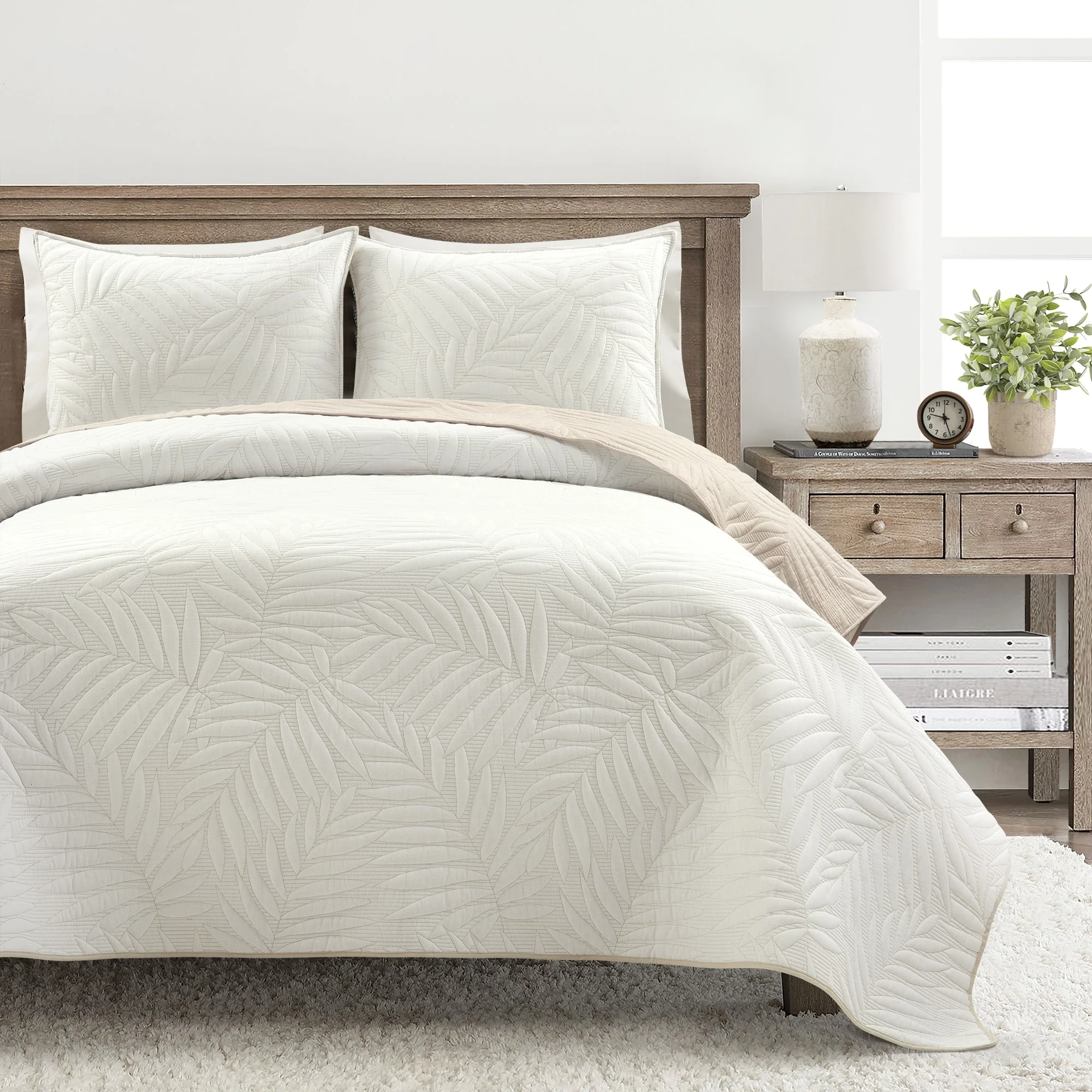 Coverlet Set: Sand, Sheet Set: White - King