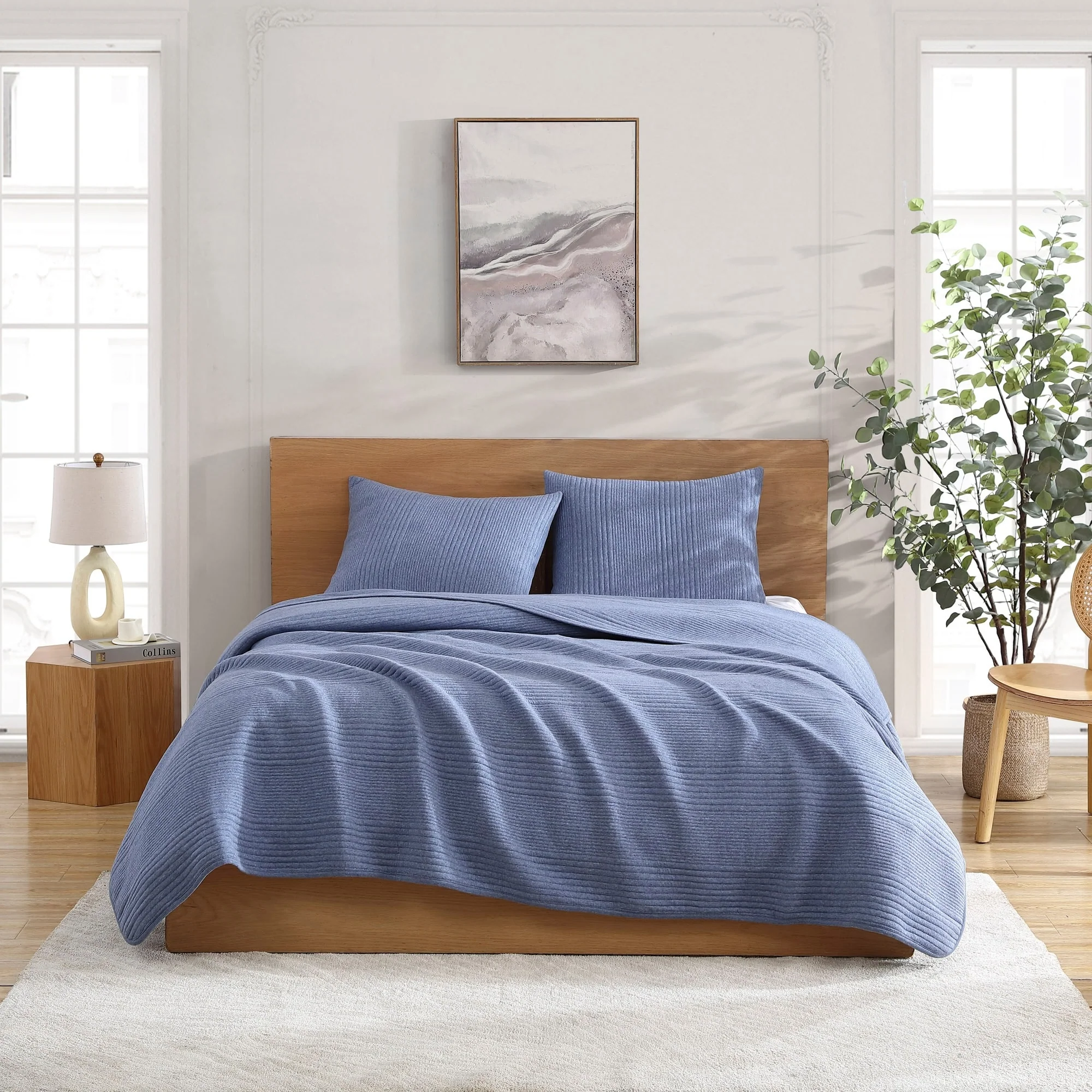 Coverlet Set: Coronet Blue, Sheet Set: White - Twin XL