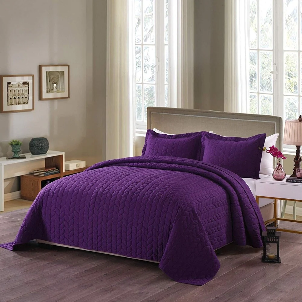 Coverlet Set: Plum, Sheet Set: Light Grey - Queen