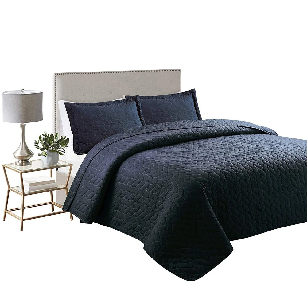 Coverlet Set: Dark Blue, Sheet Set: Light Grey - Queen