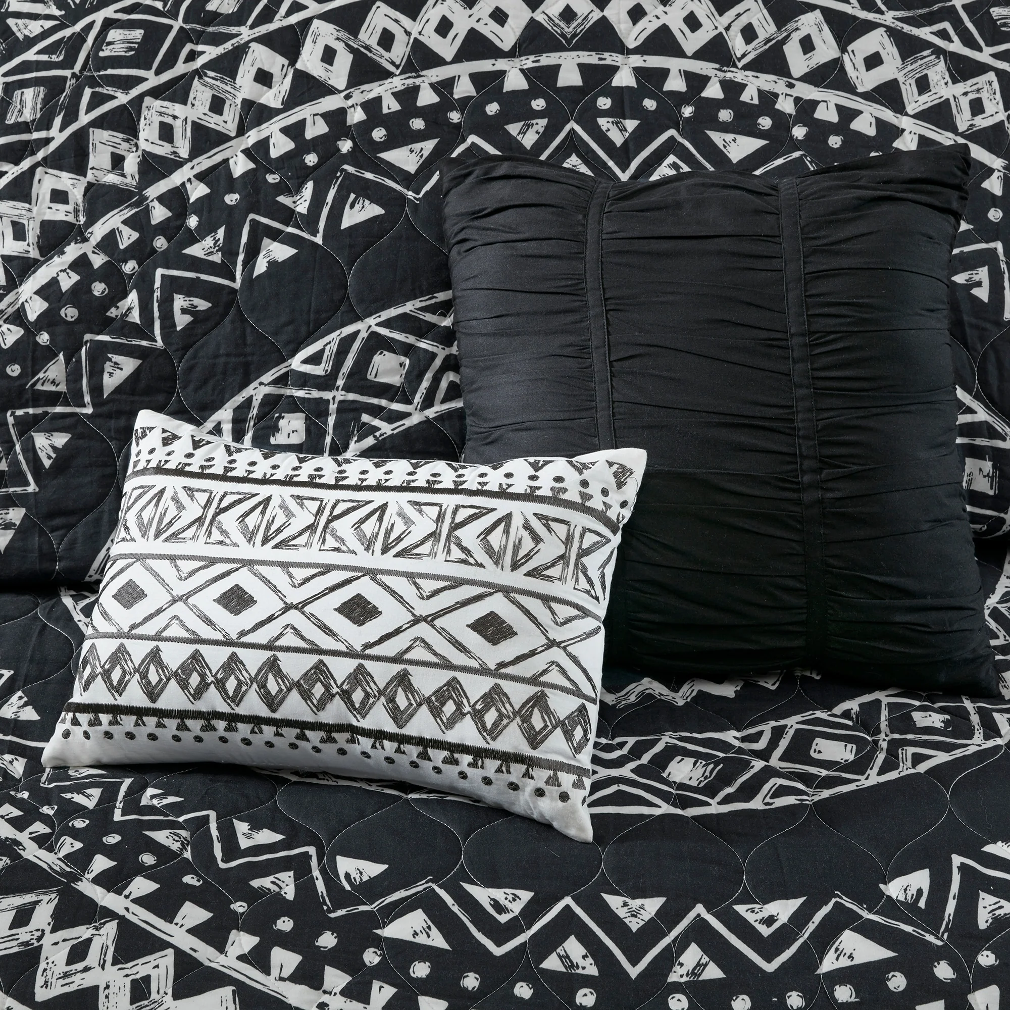 Coverlet Set: Black, Sheet Set: Black - Queen
