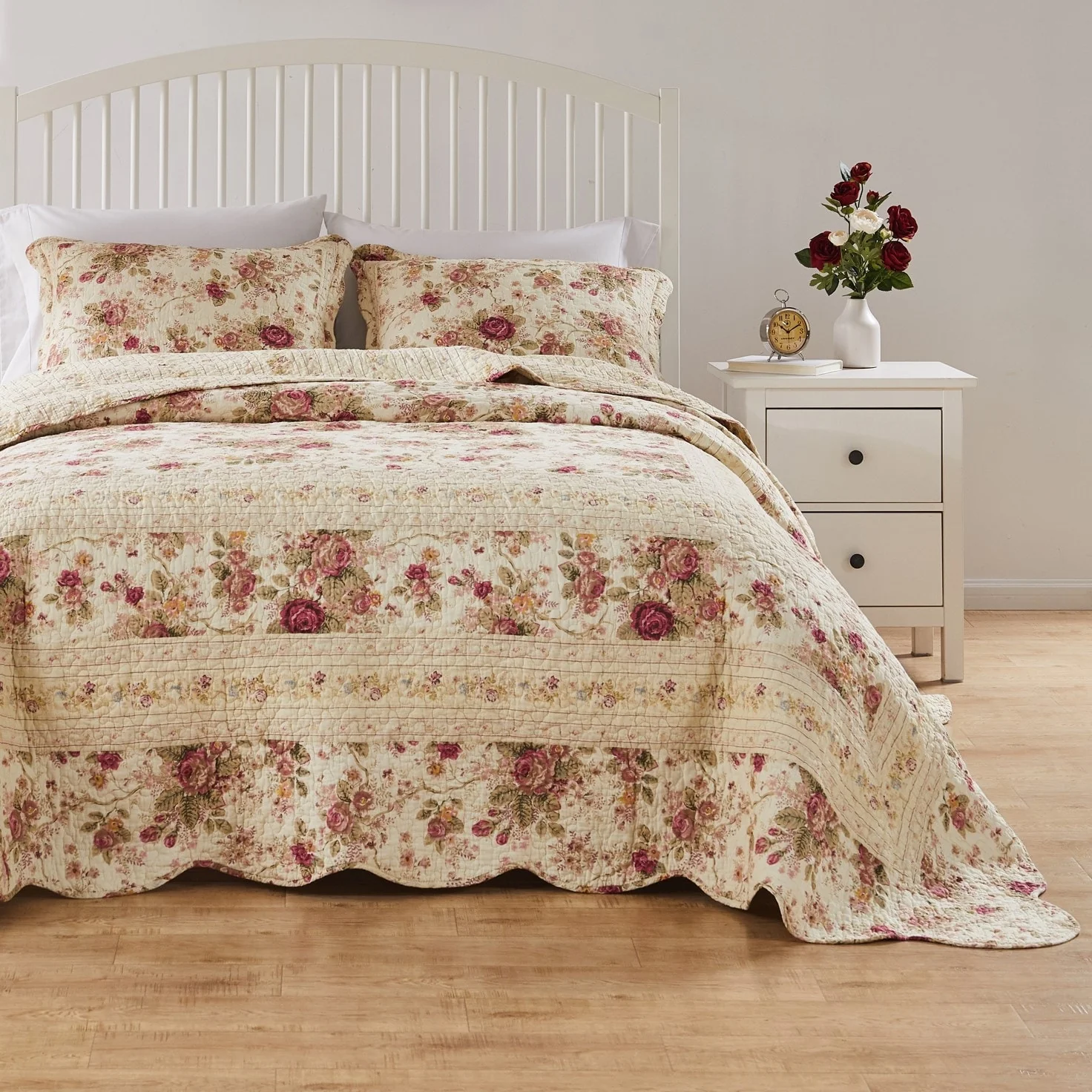 Coverlet Set: White, Sheet Set: Light Grey - Queen