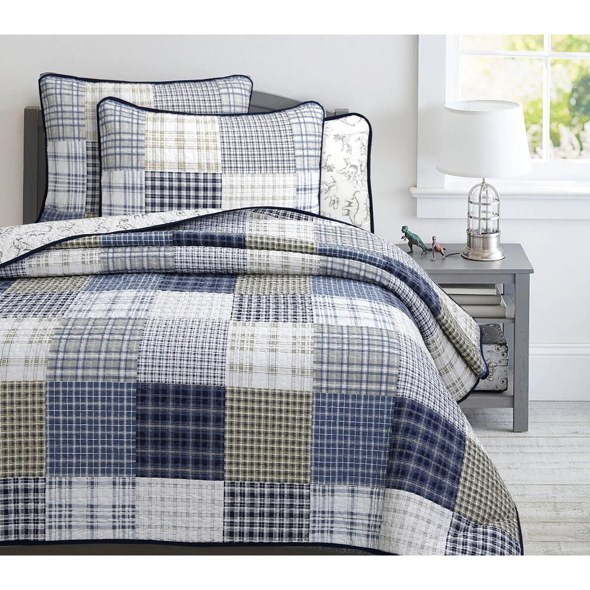 Coverlet Set: Dark Blue, Sheet Set: Grey - Twin