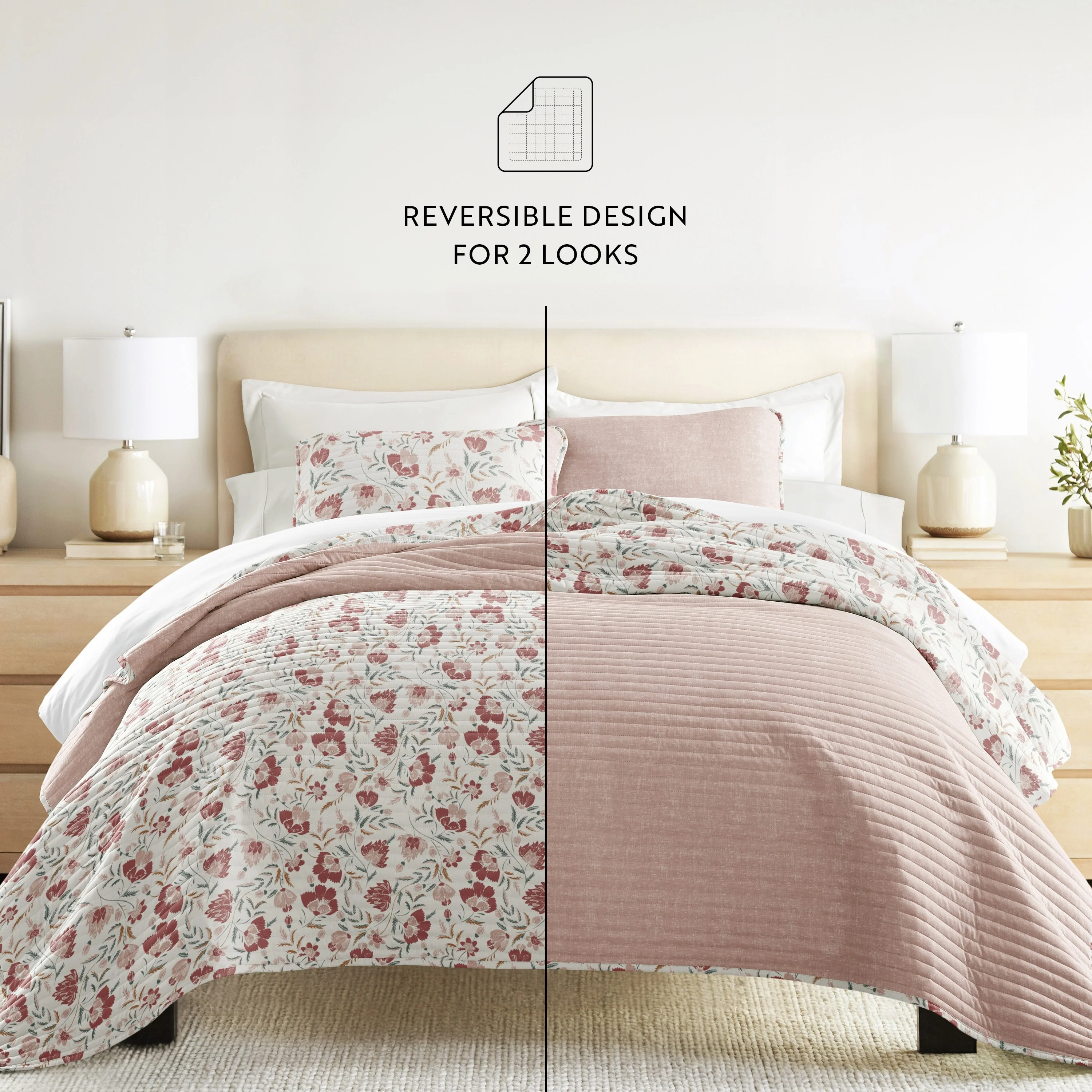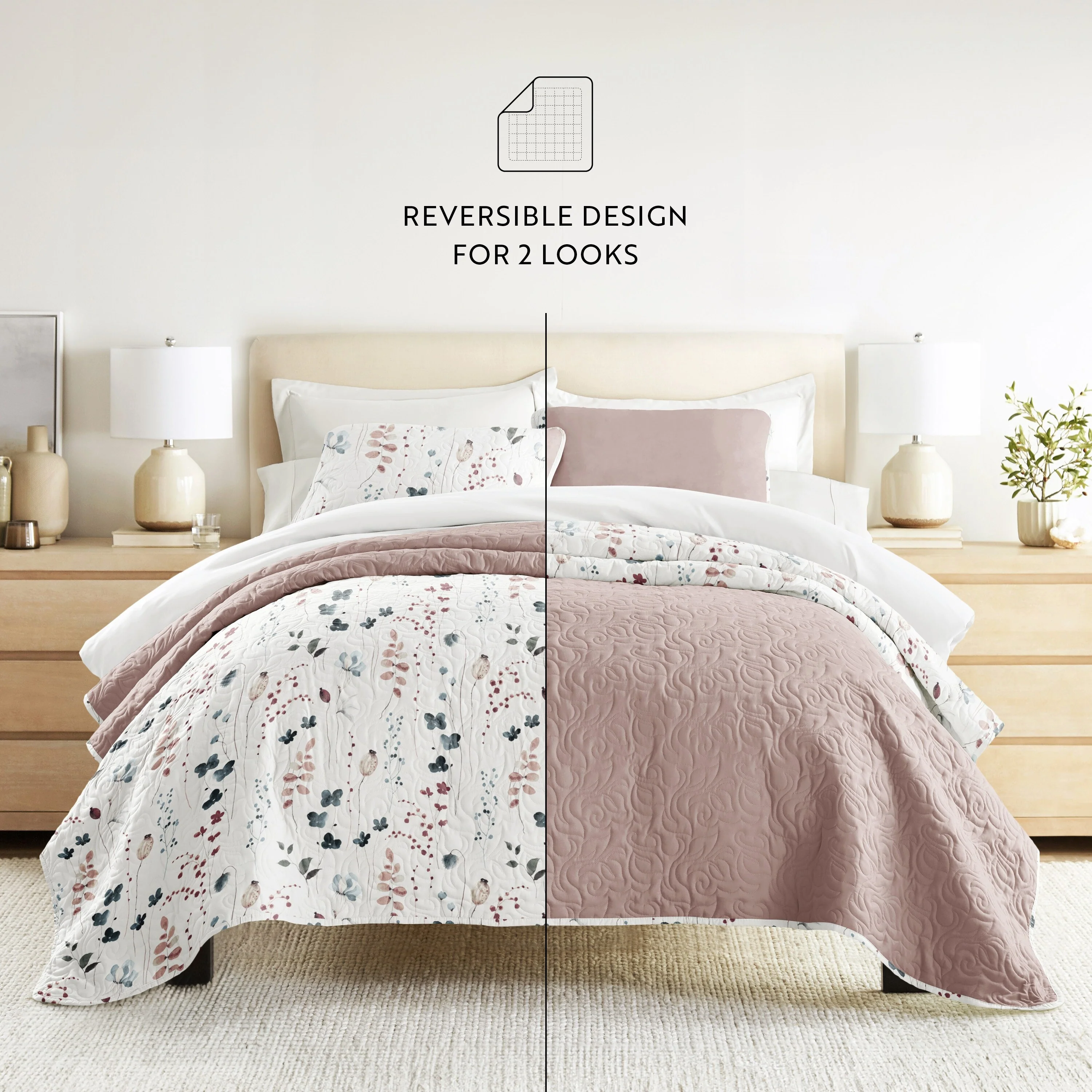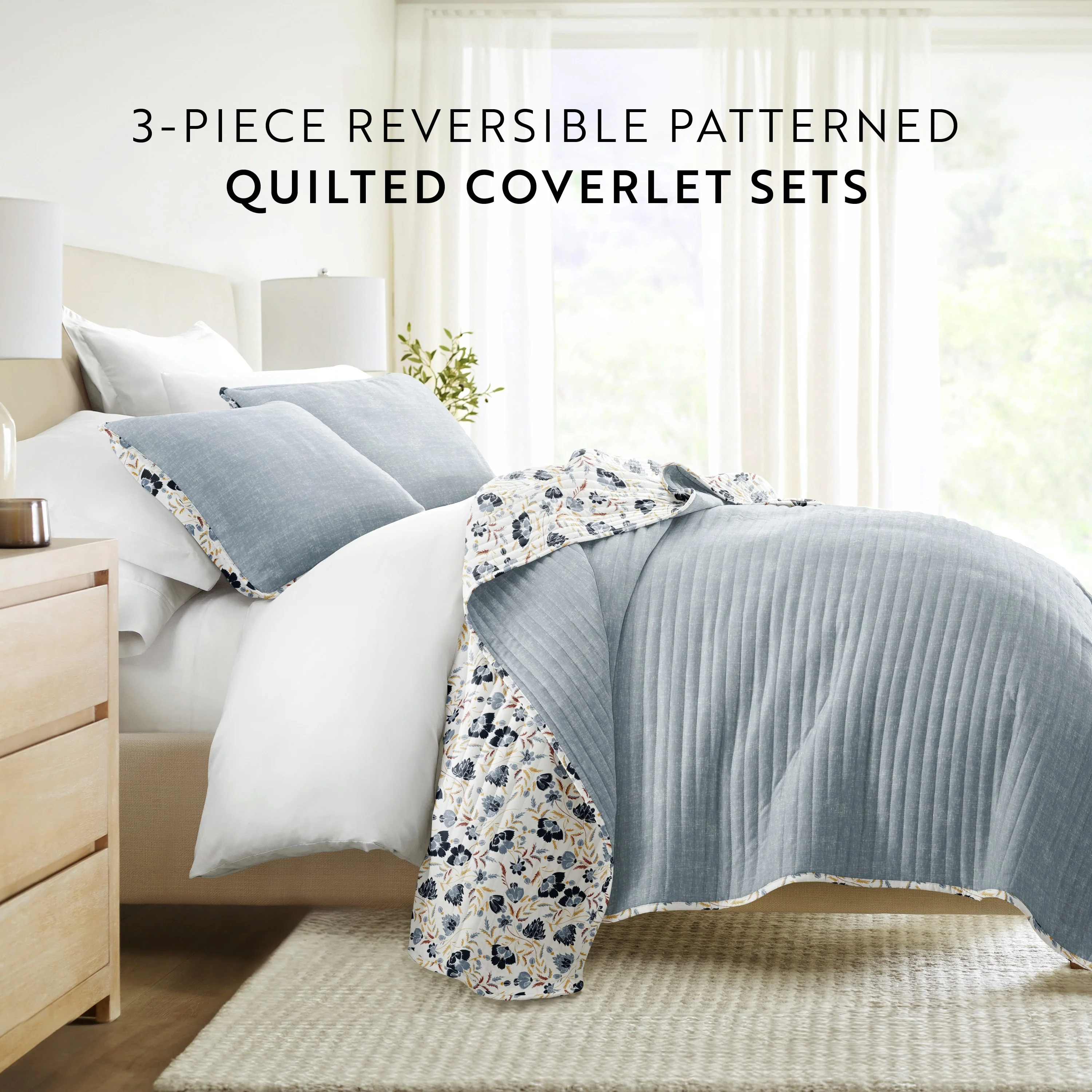 Becky Cameron All Season 3 Piece Floral Reversible Quilt Set