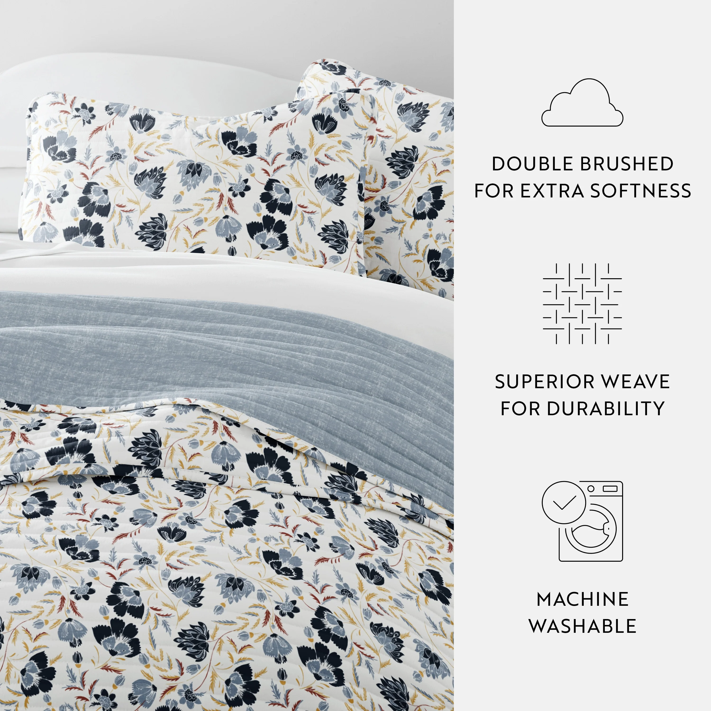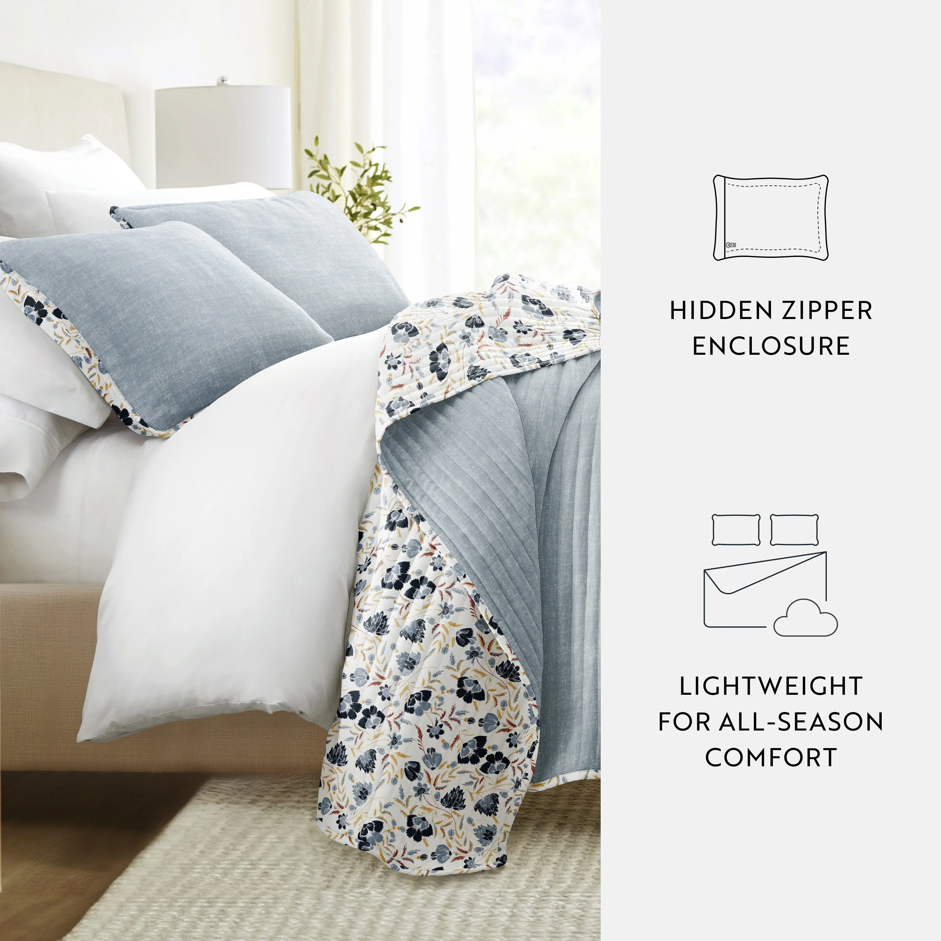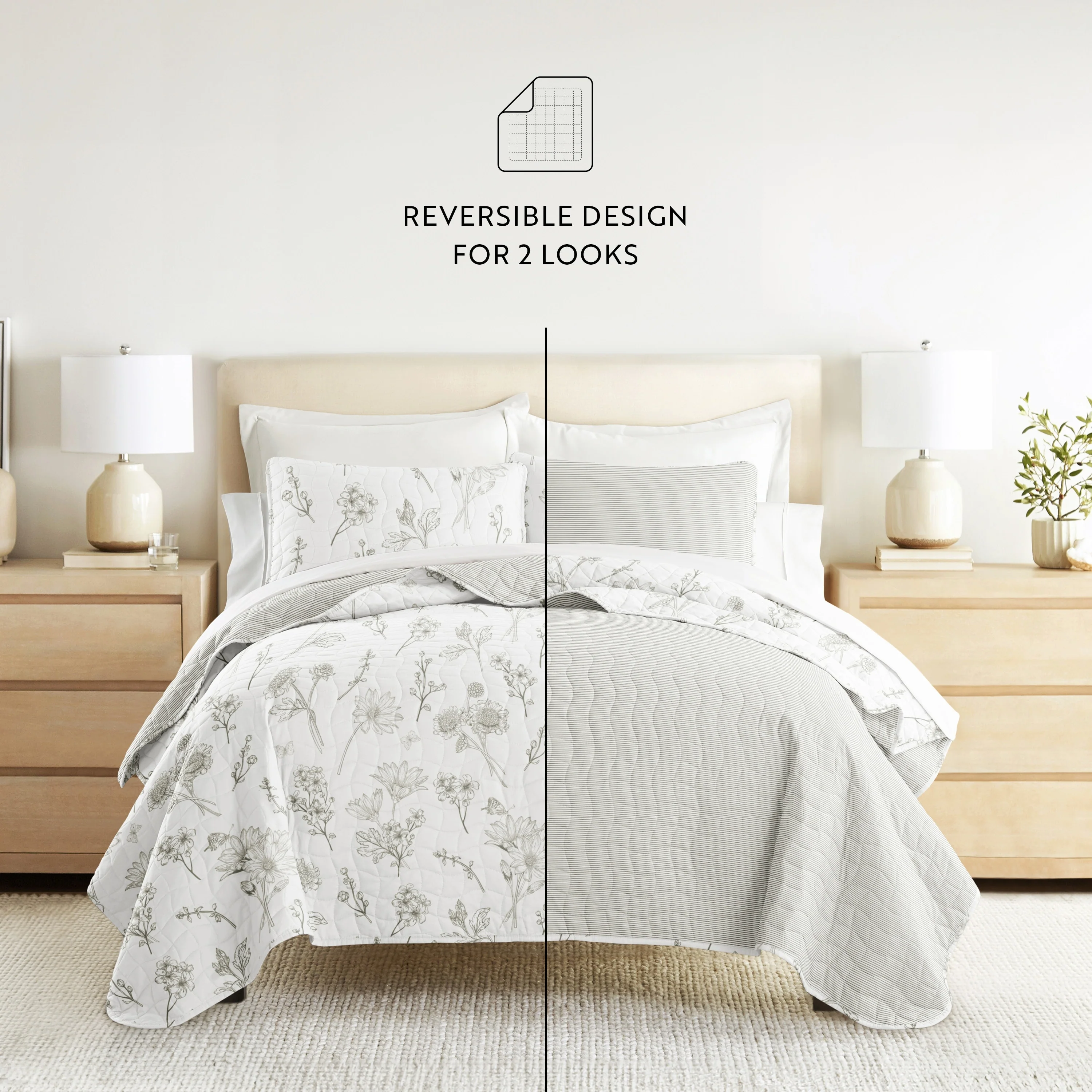 Becky Cameron All Season 3 Piece Floral Reversible Quilt Set