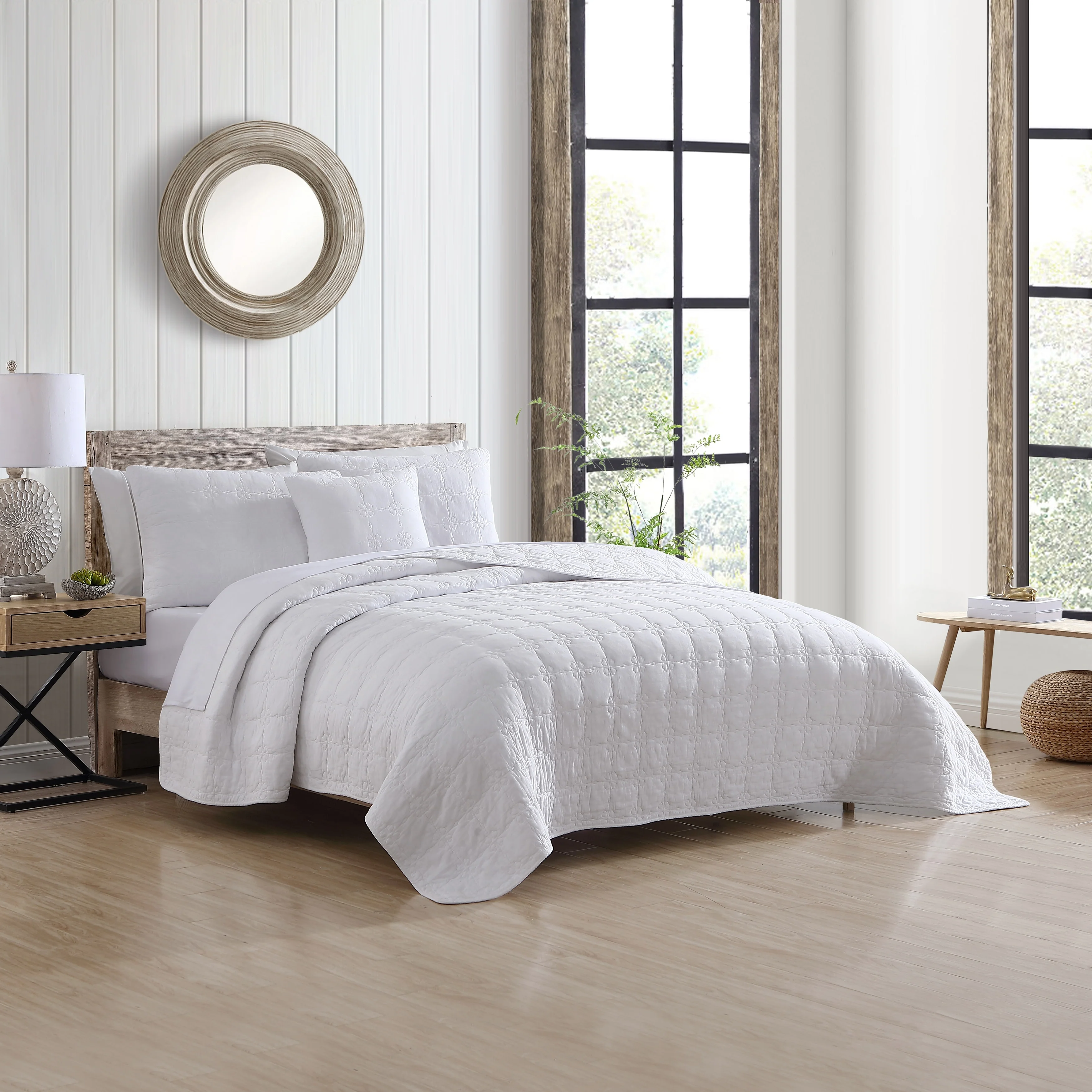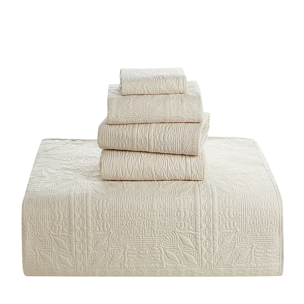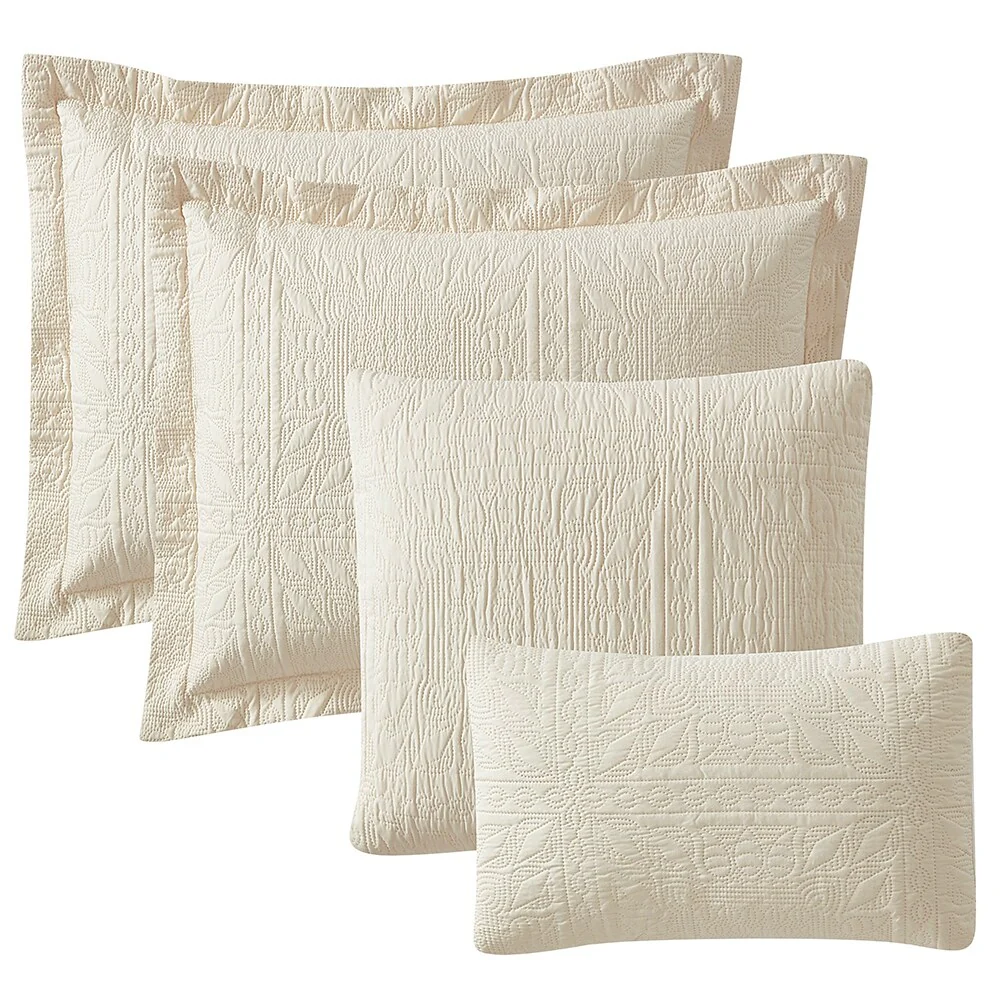 Stone Cottage Floral Trellis Cotton White 4 Piece Quilt Bonus Set