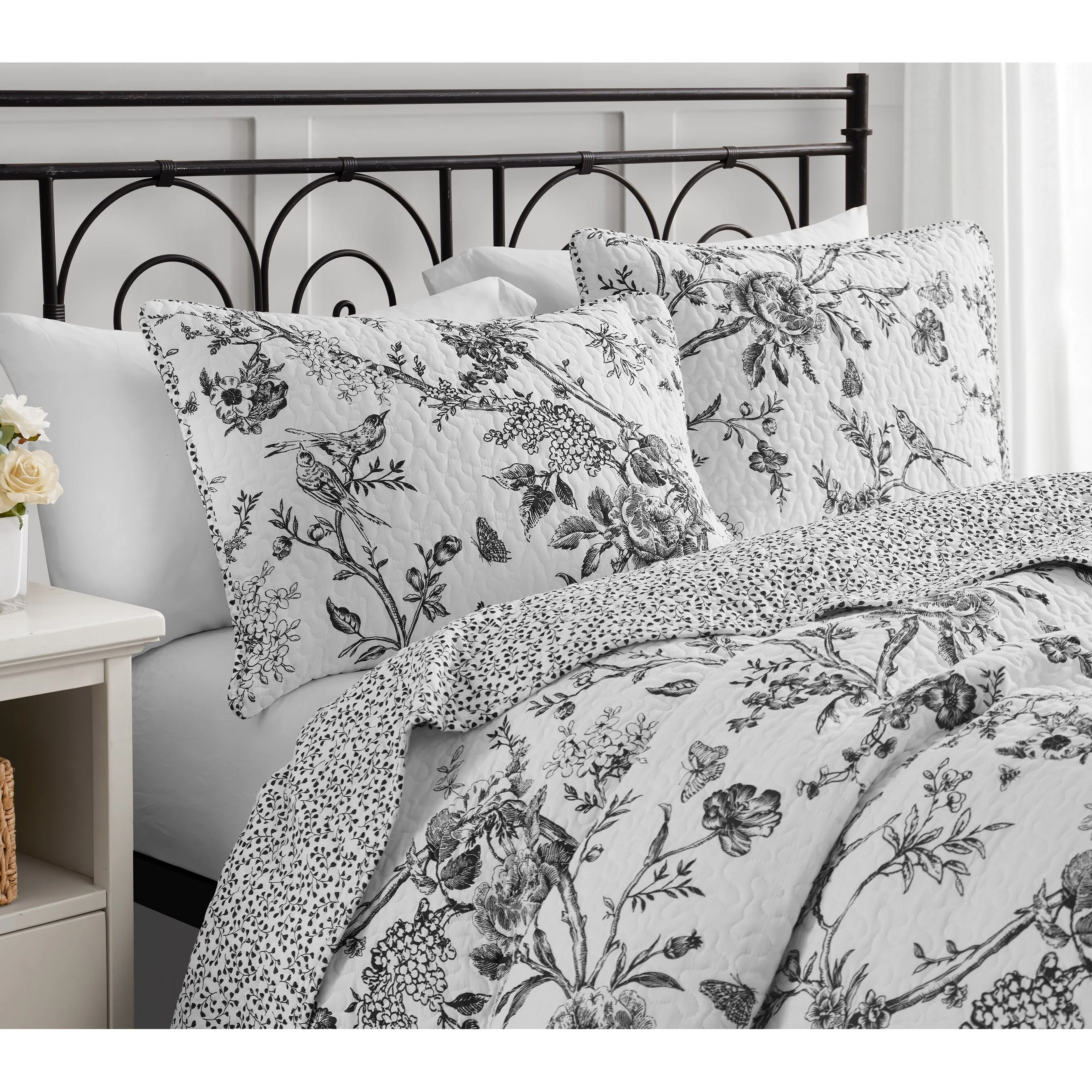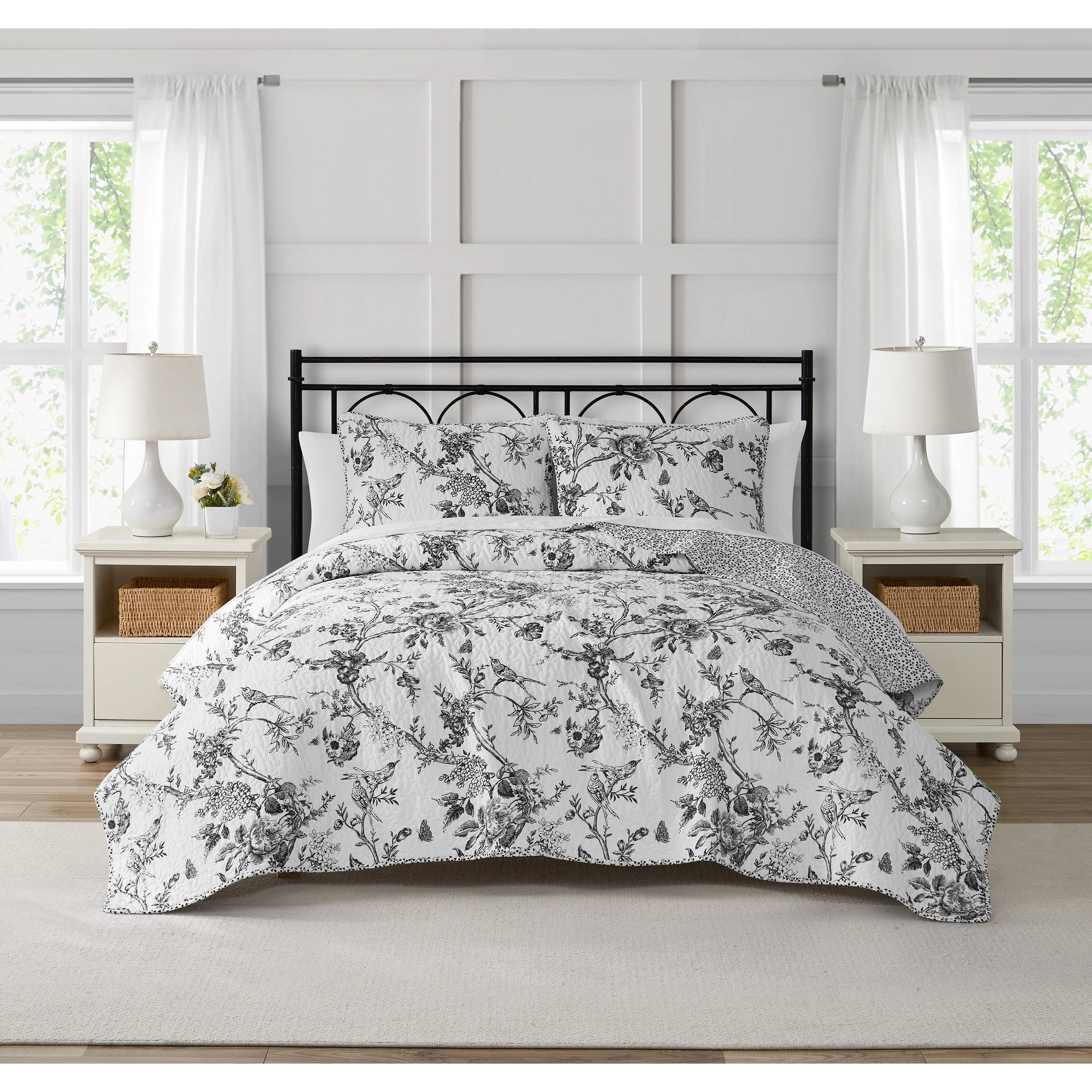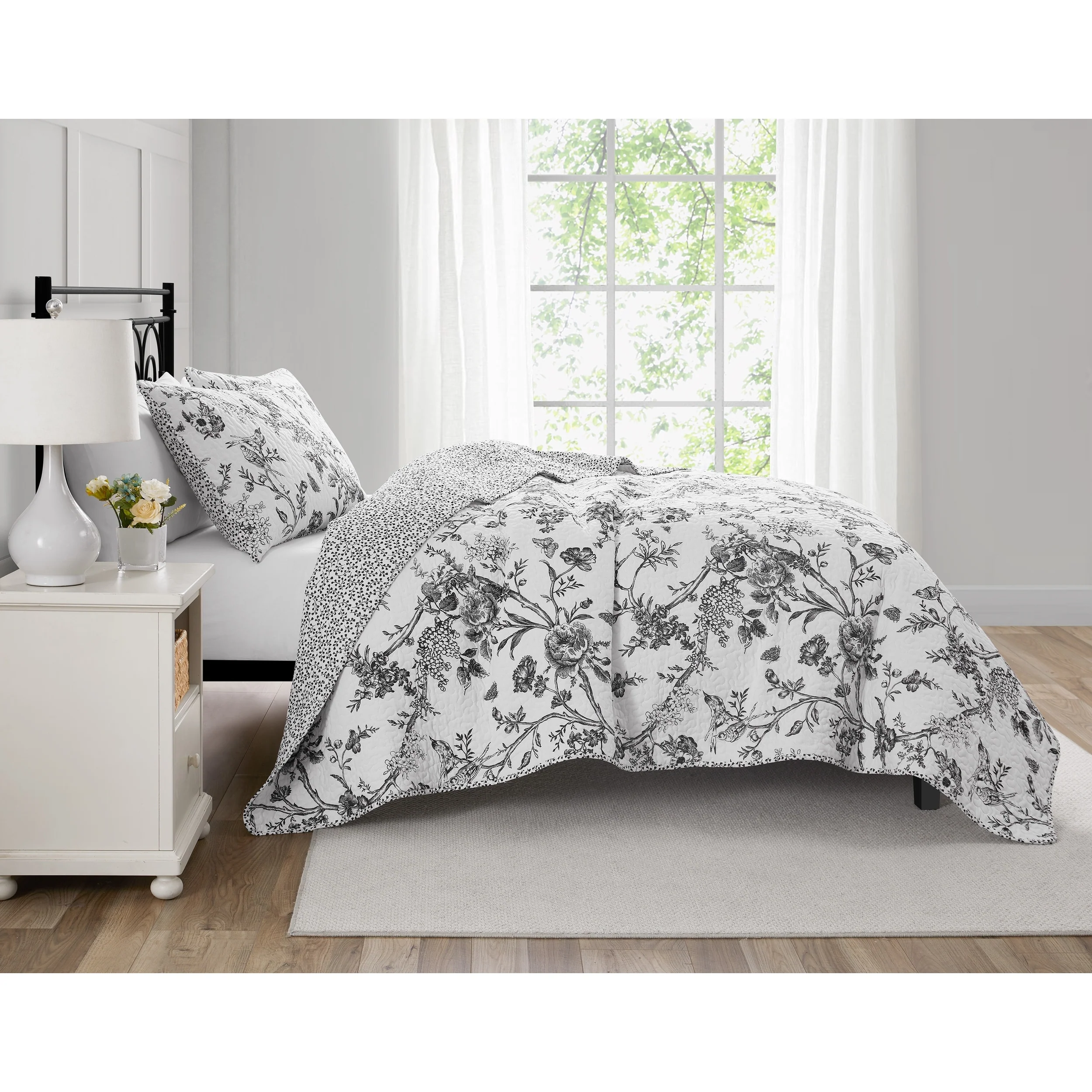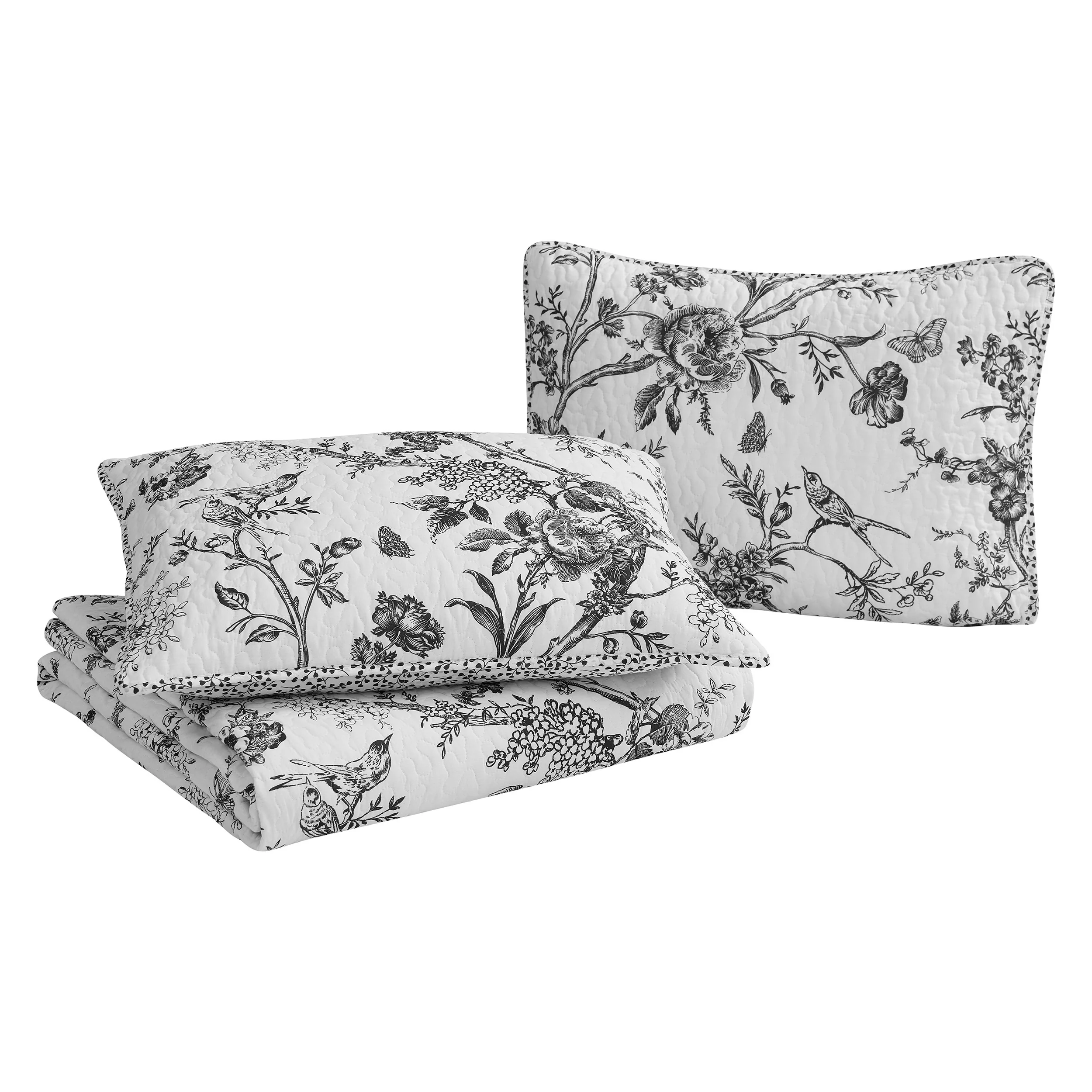 CEDAR COURT Chantilly Toile Floral All-Season Reversible Cotton Quilt Set