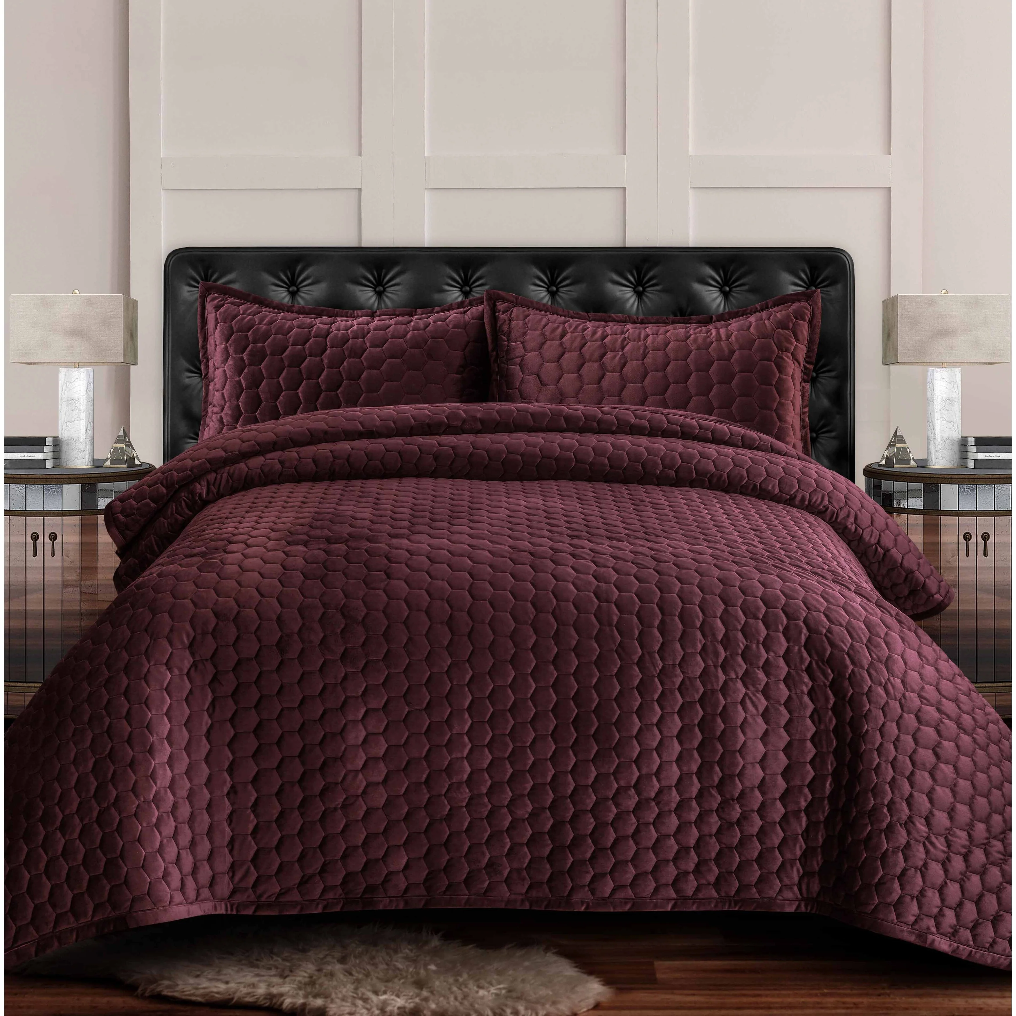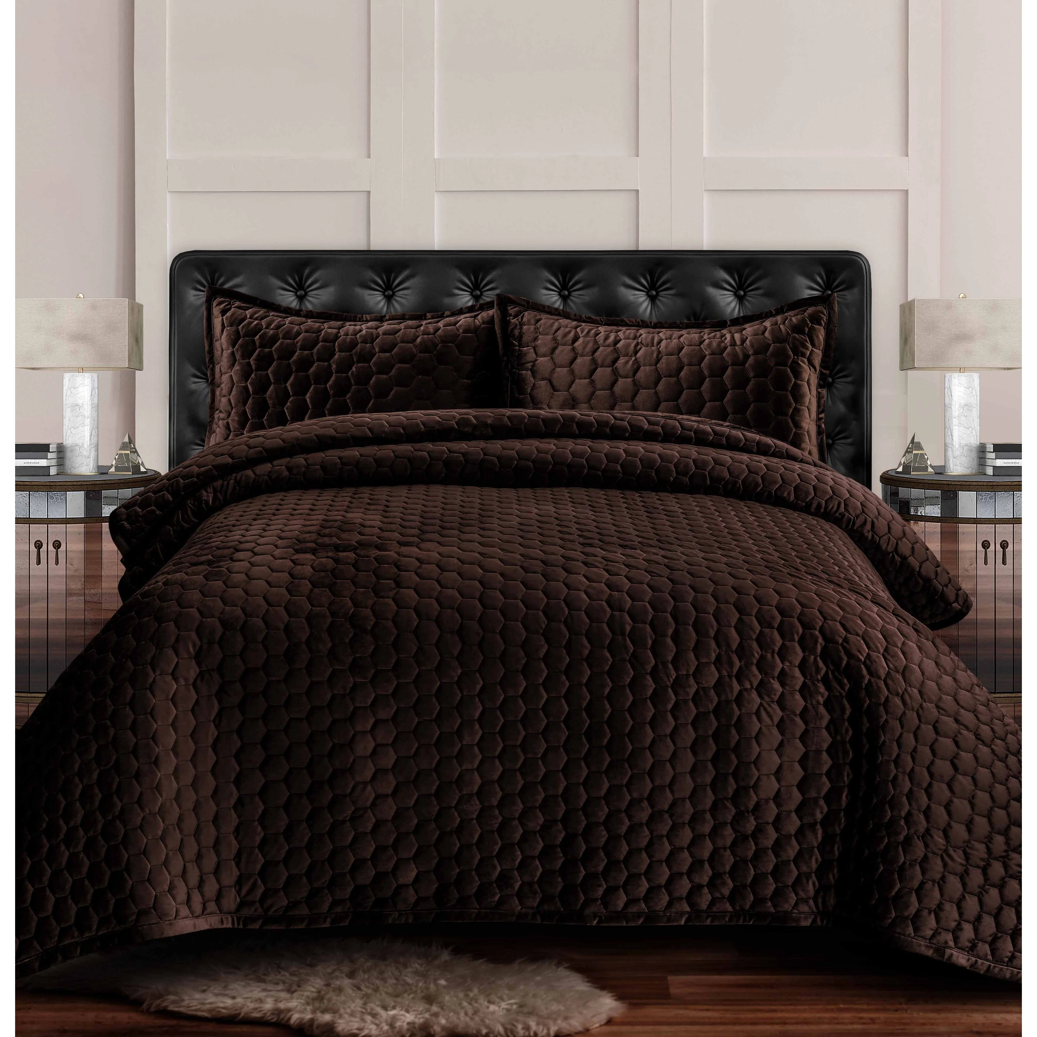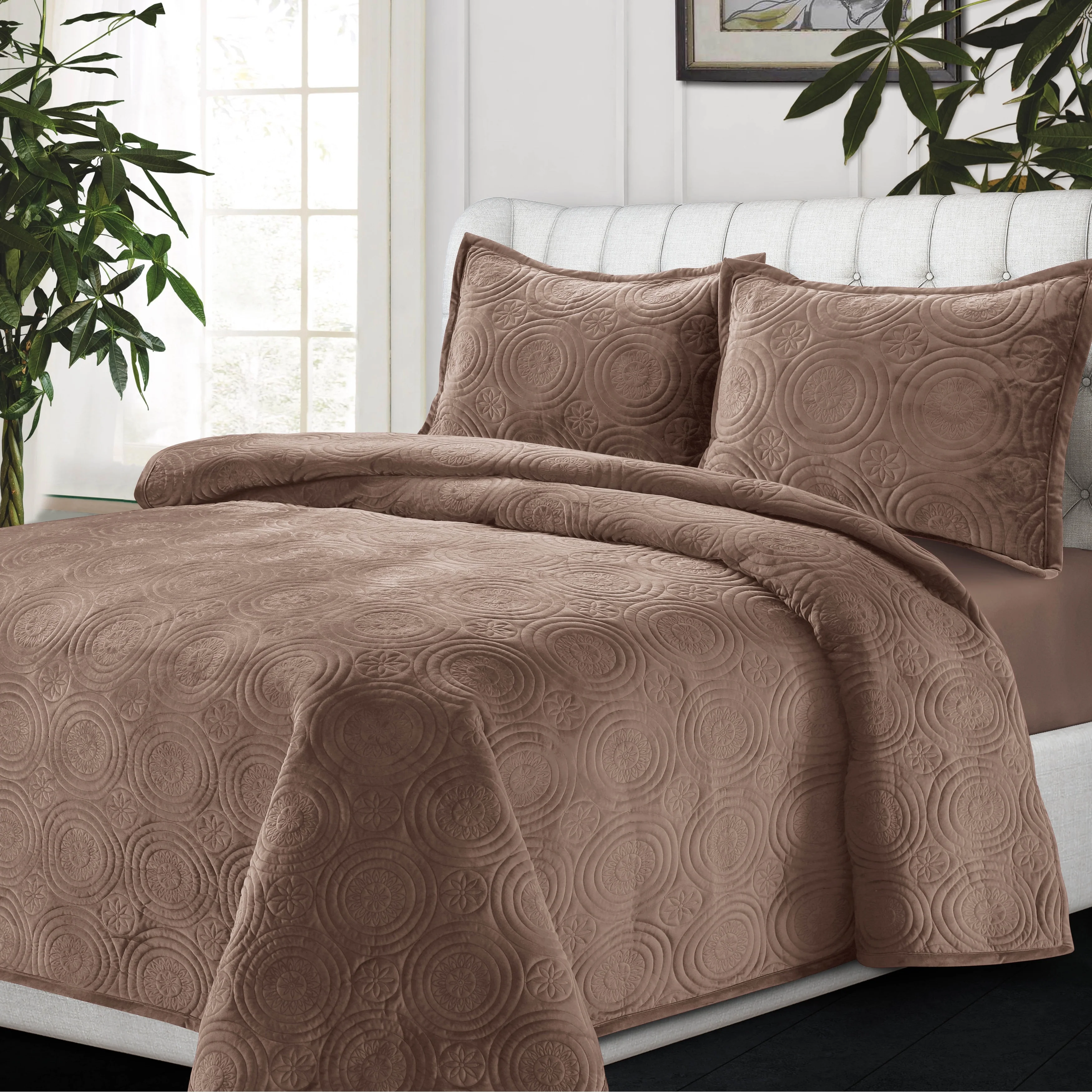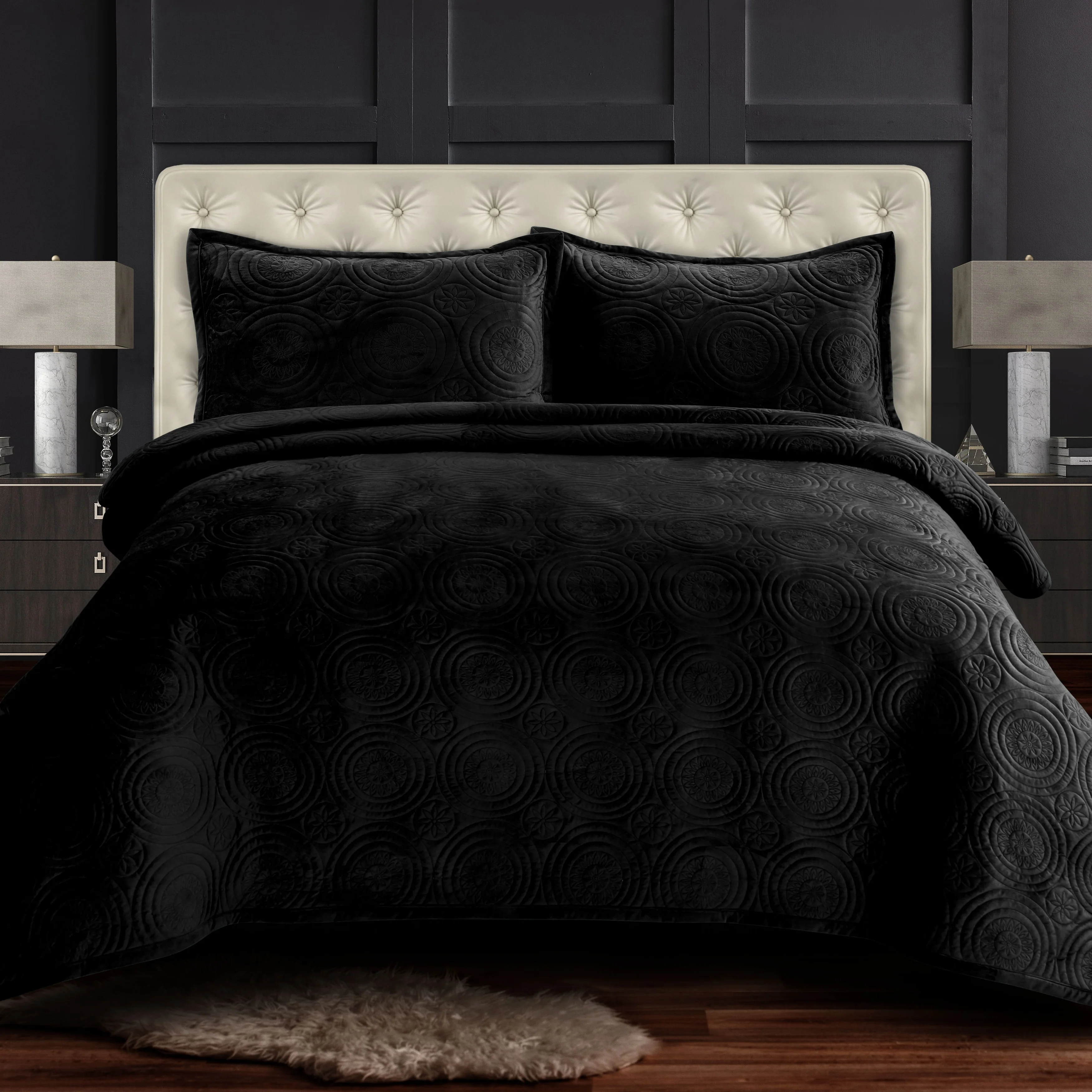 Capri Medallion Velvet Oversized Solid Quilt Set