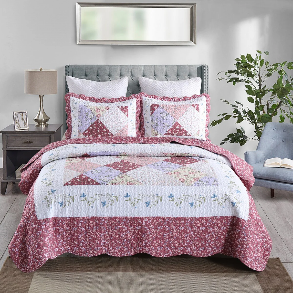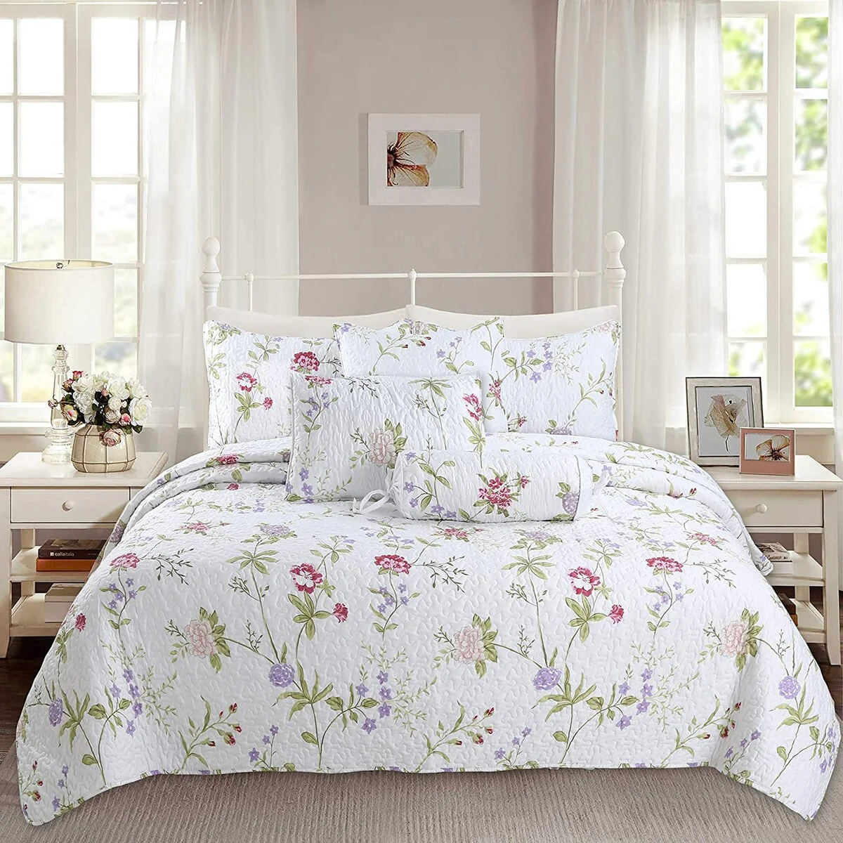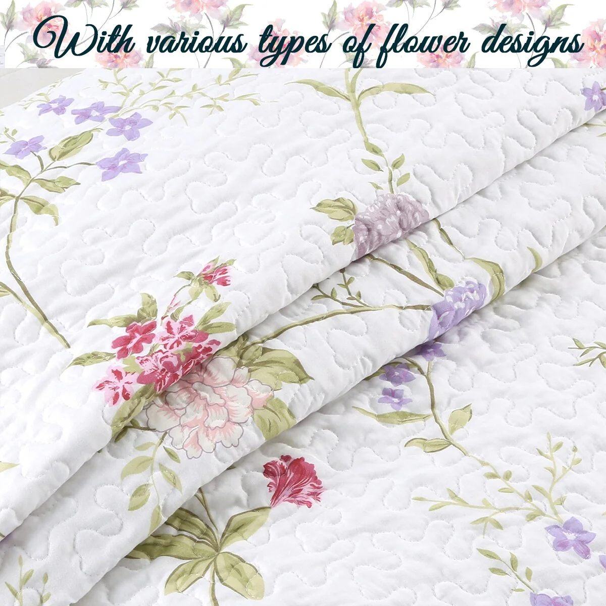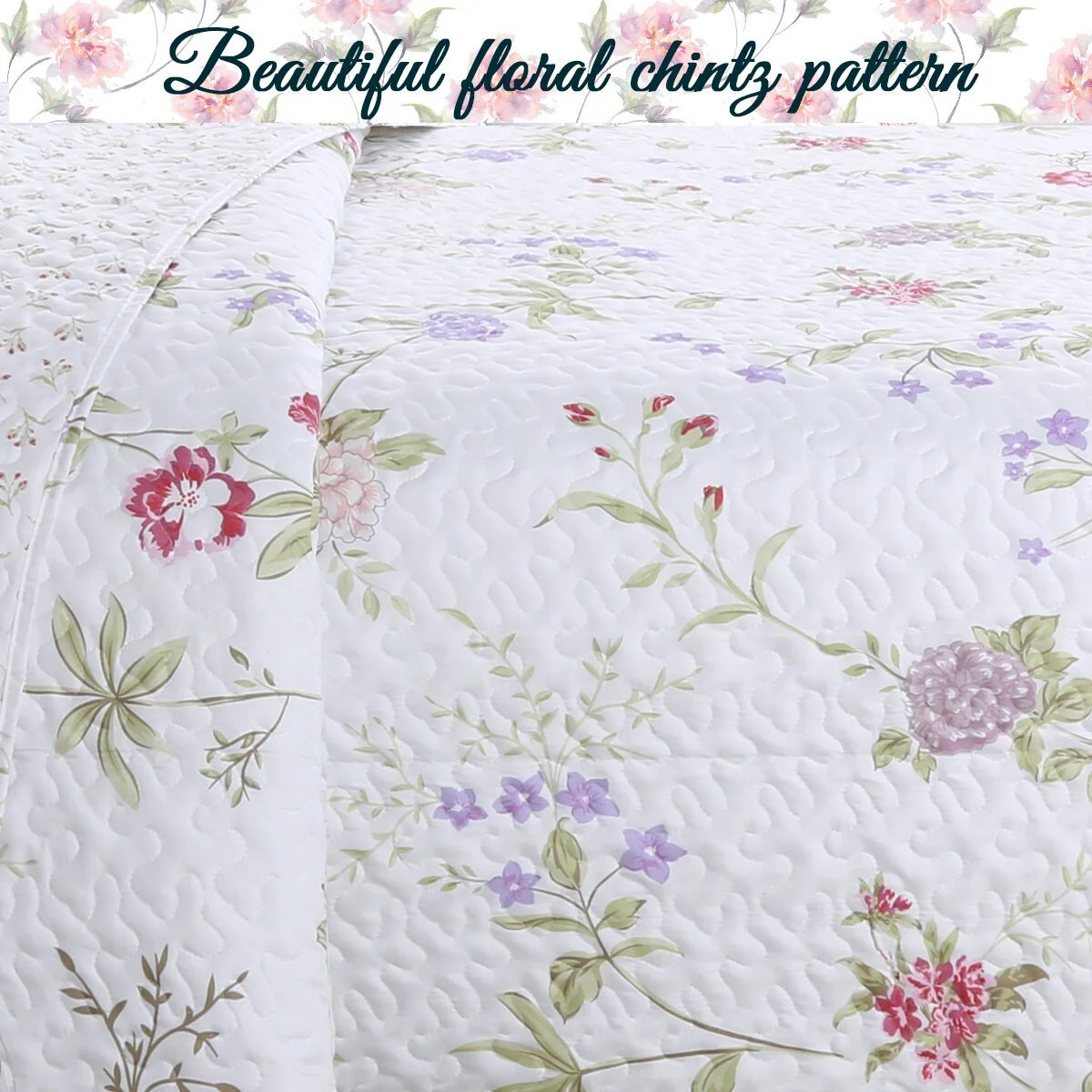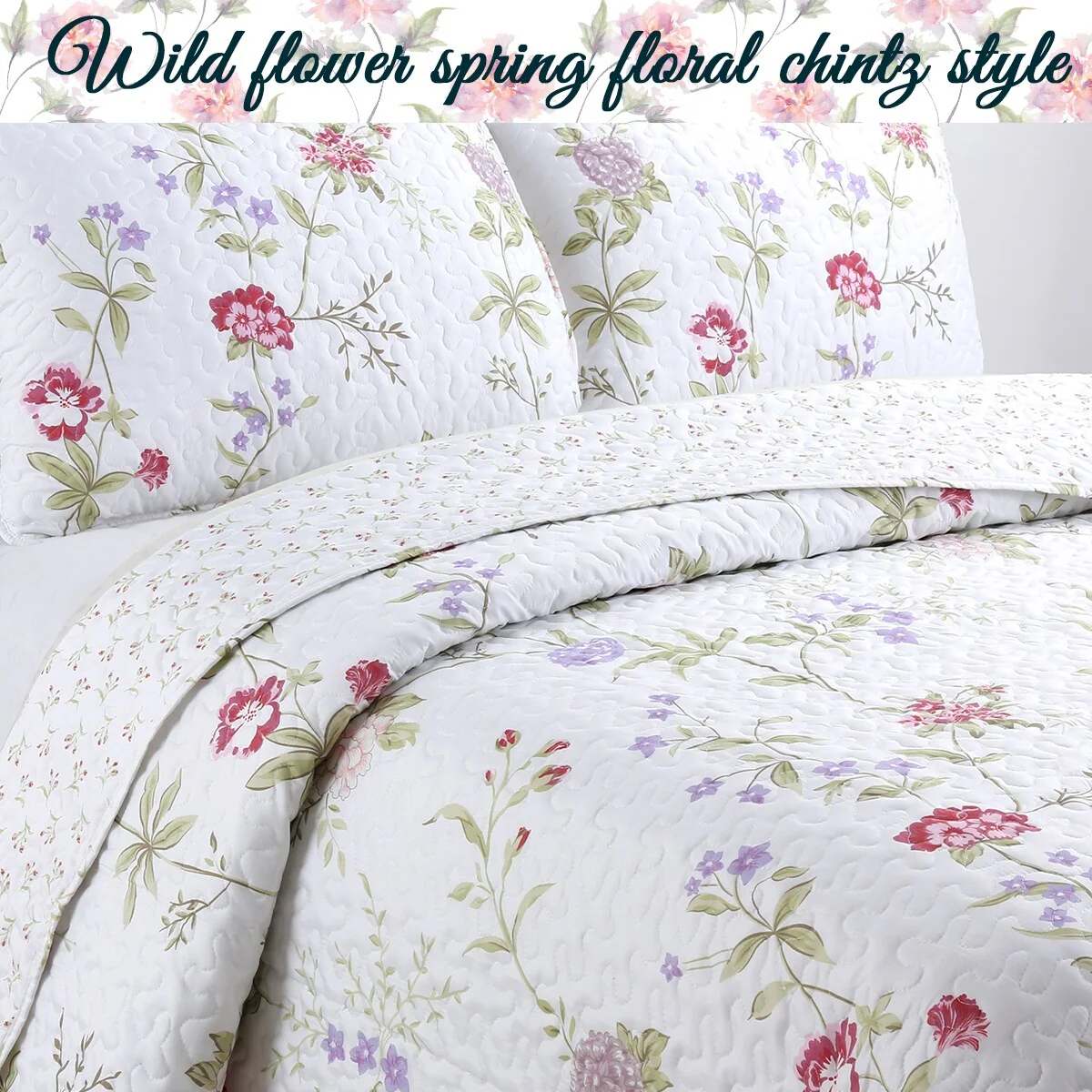MarCielo 3 Piece Printed Quilt Set Lightweight Bedspread Set Lily