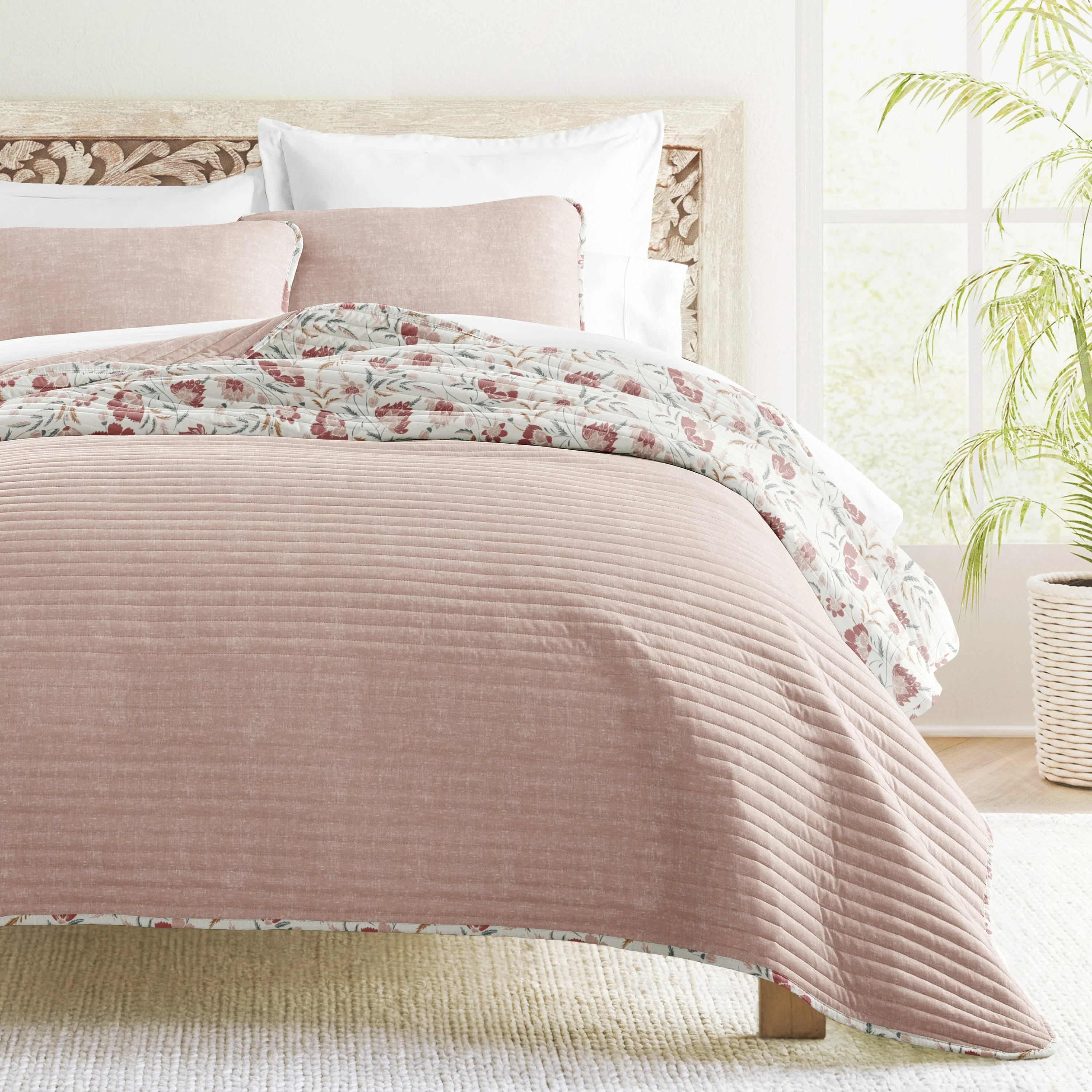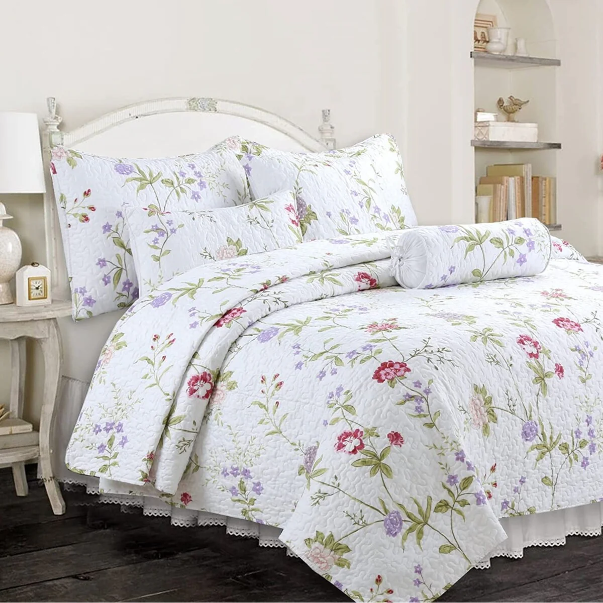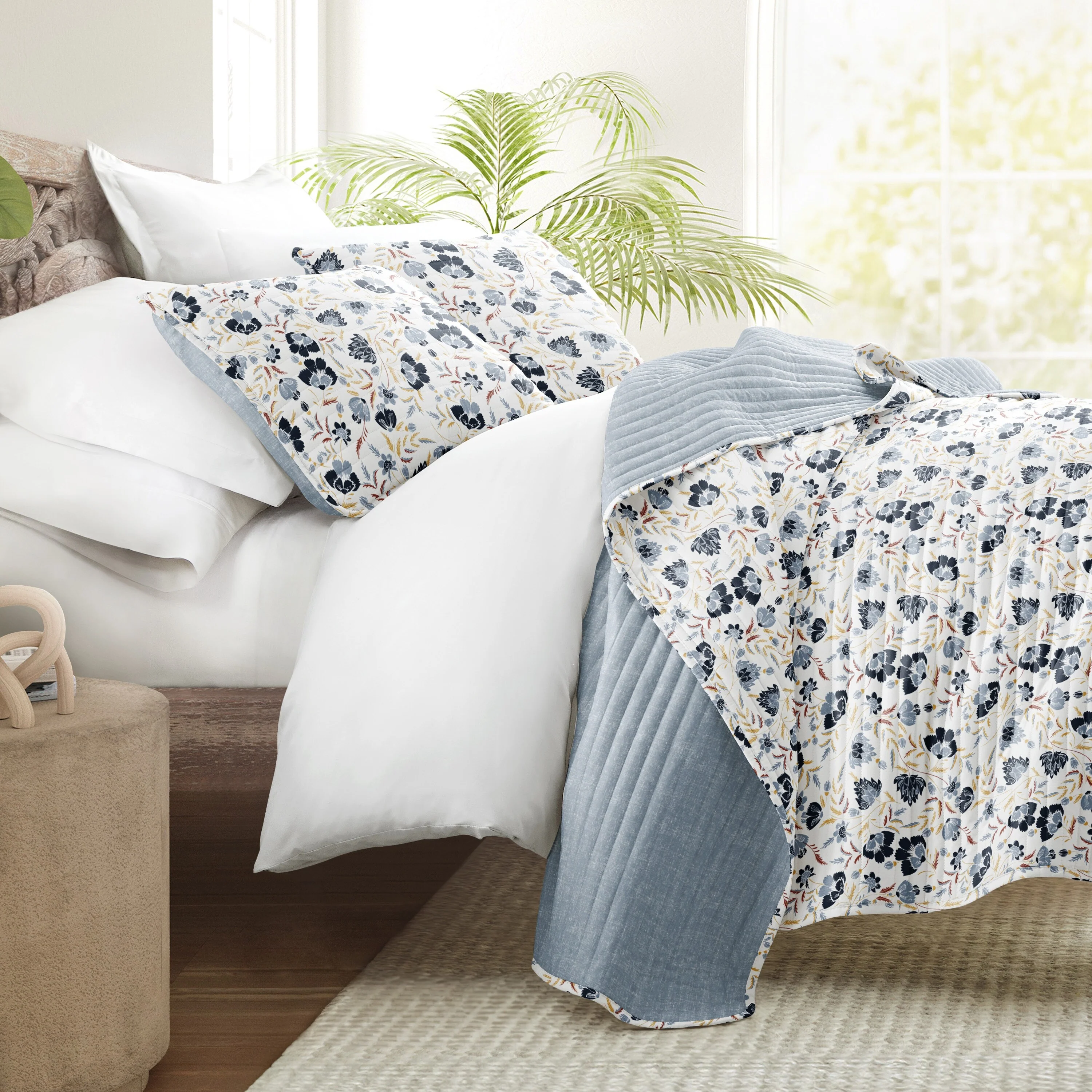 Patina Vie Maison Vintage-Inspired Floral Reversible Quilt Set with Shams