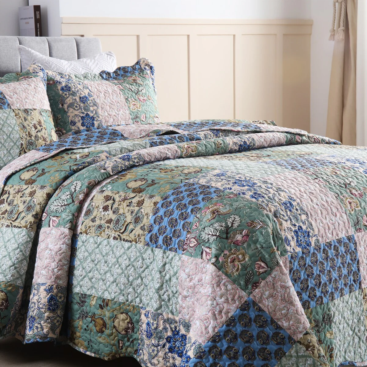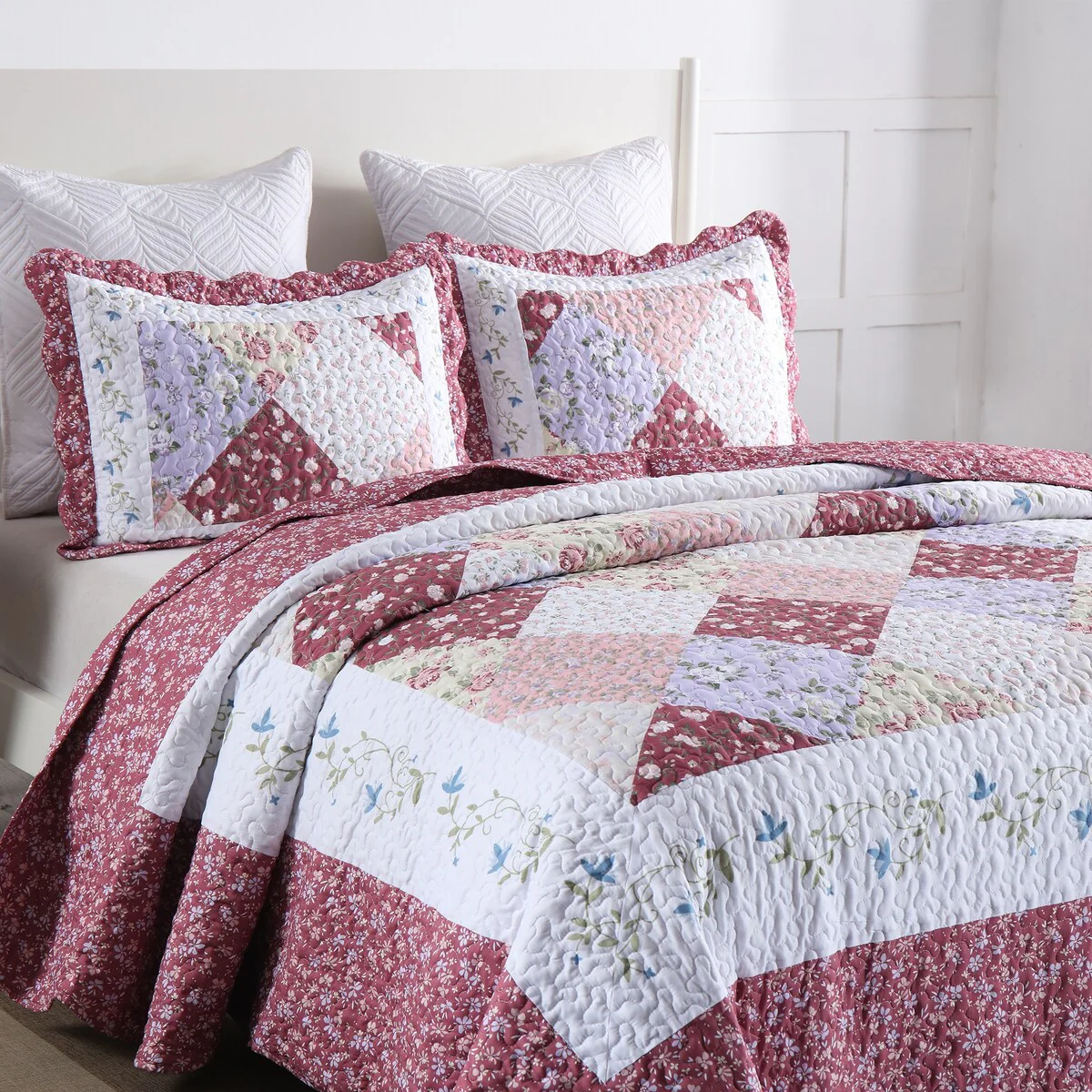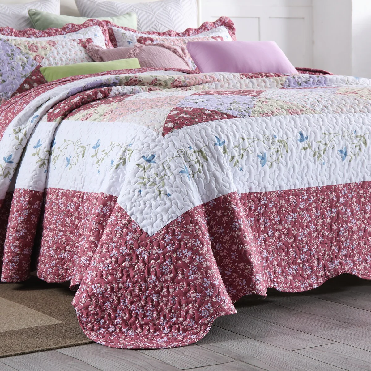 Patina Vie Maison Vintage-Inspired Floral Reversible Quilt Set with Shams
