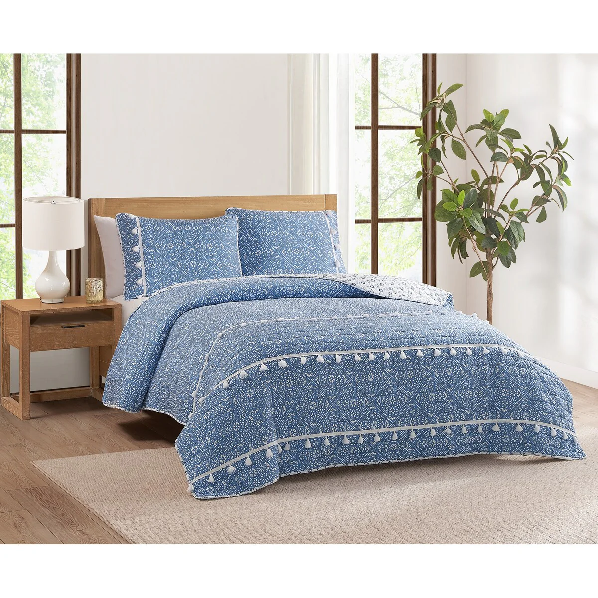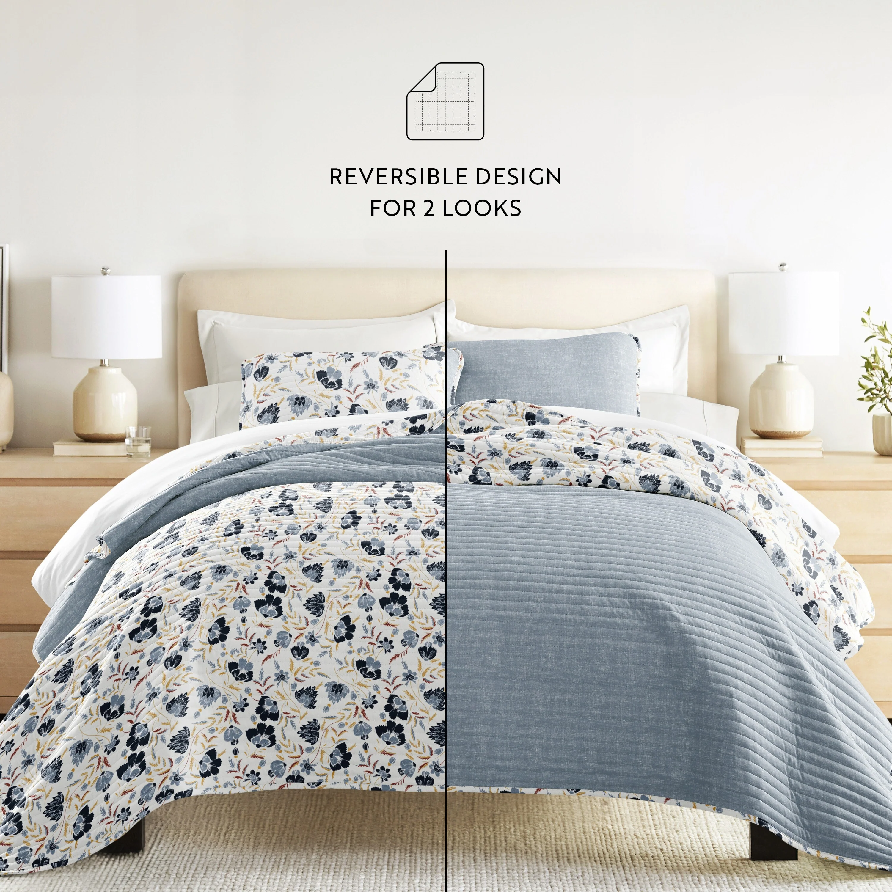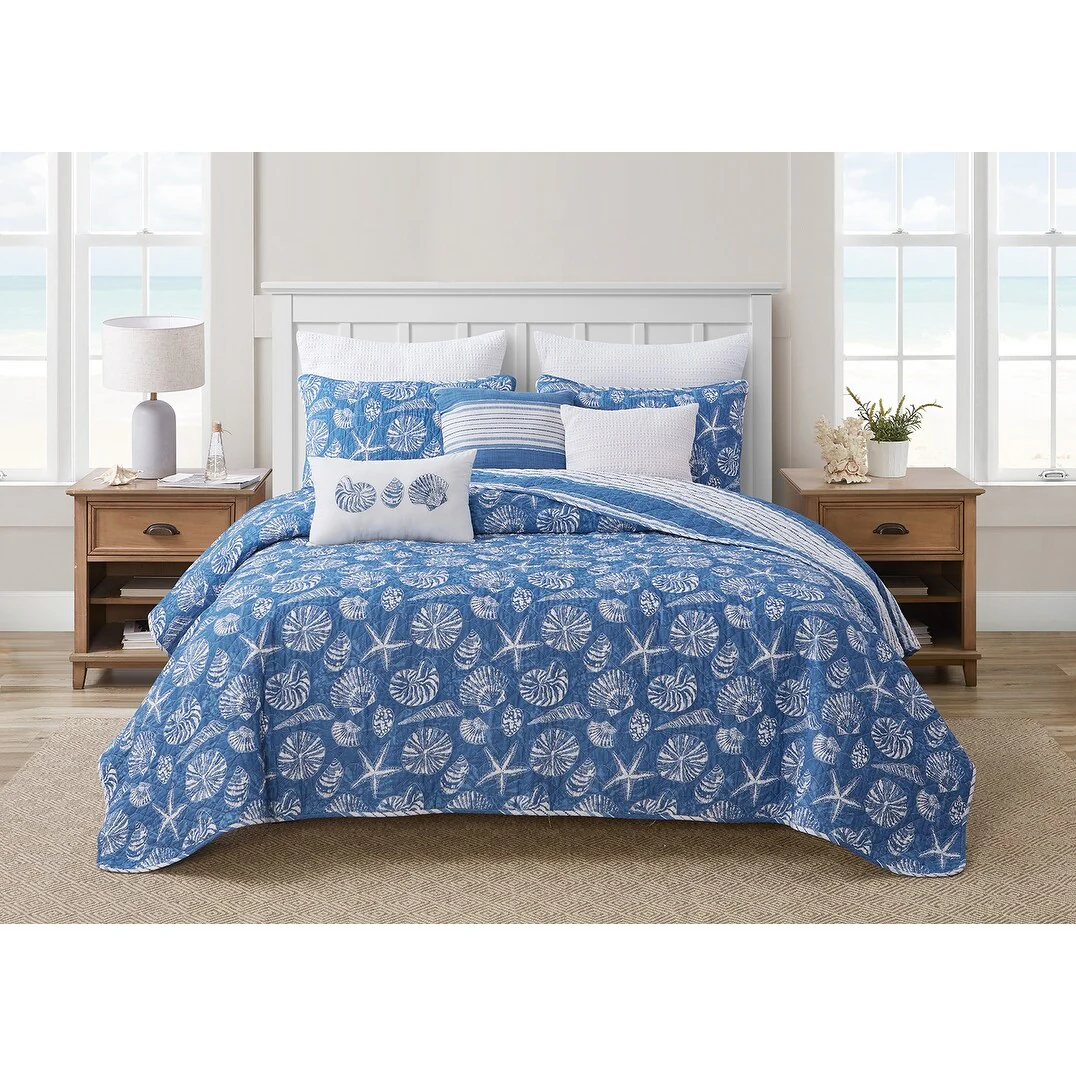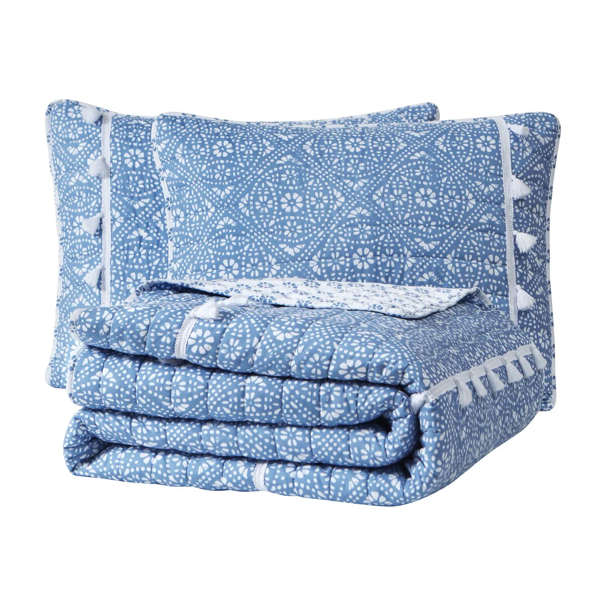 DESIGN STUDIO Mare Blue Soft Cotton Reversible Quilt Set