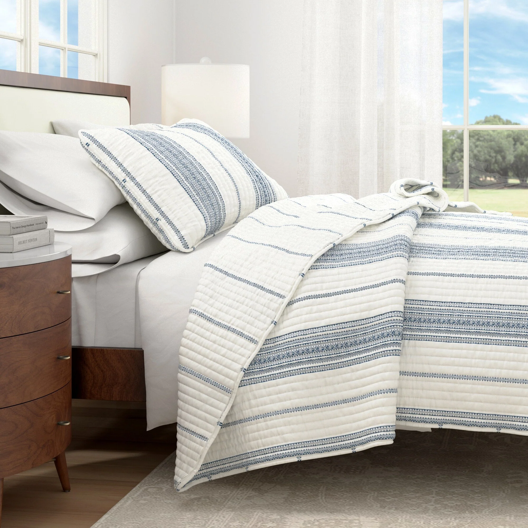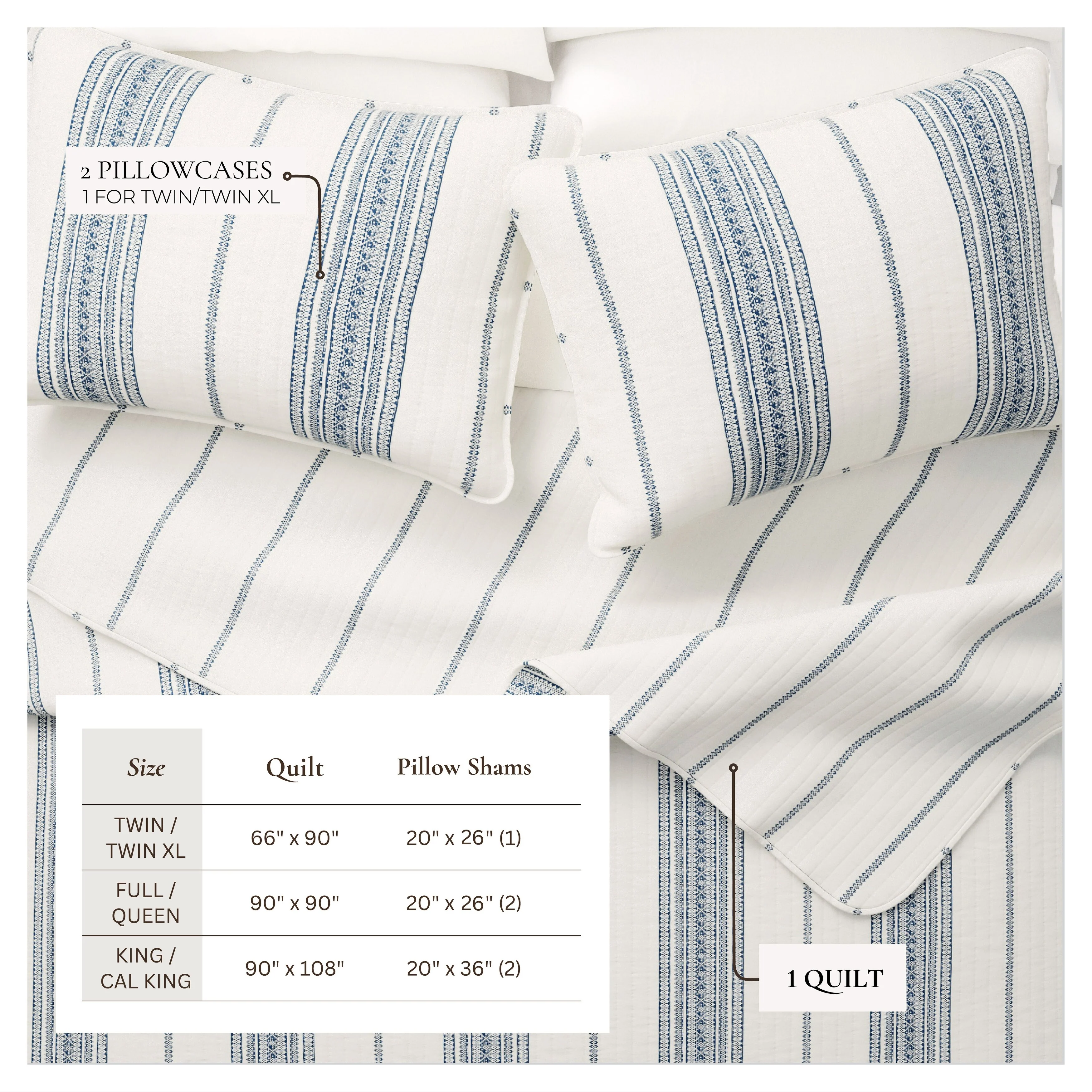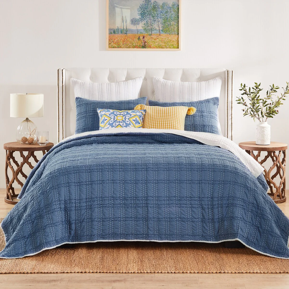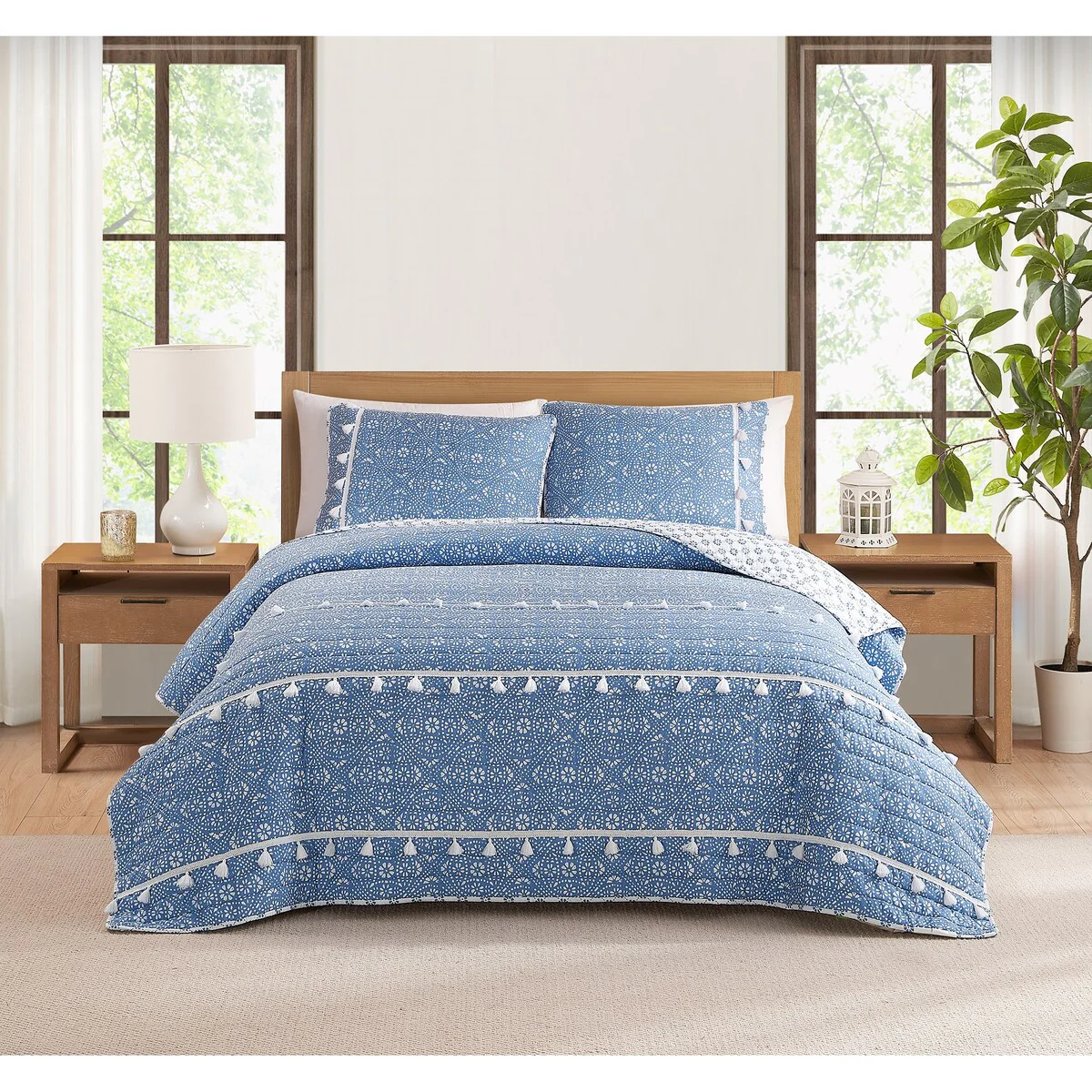 DESIGN STUDIO Mare Blue Soft Cotton Reversible Quilt Set
