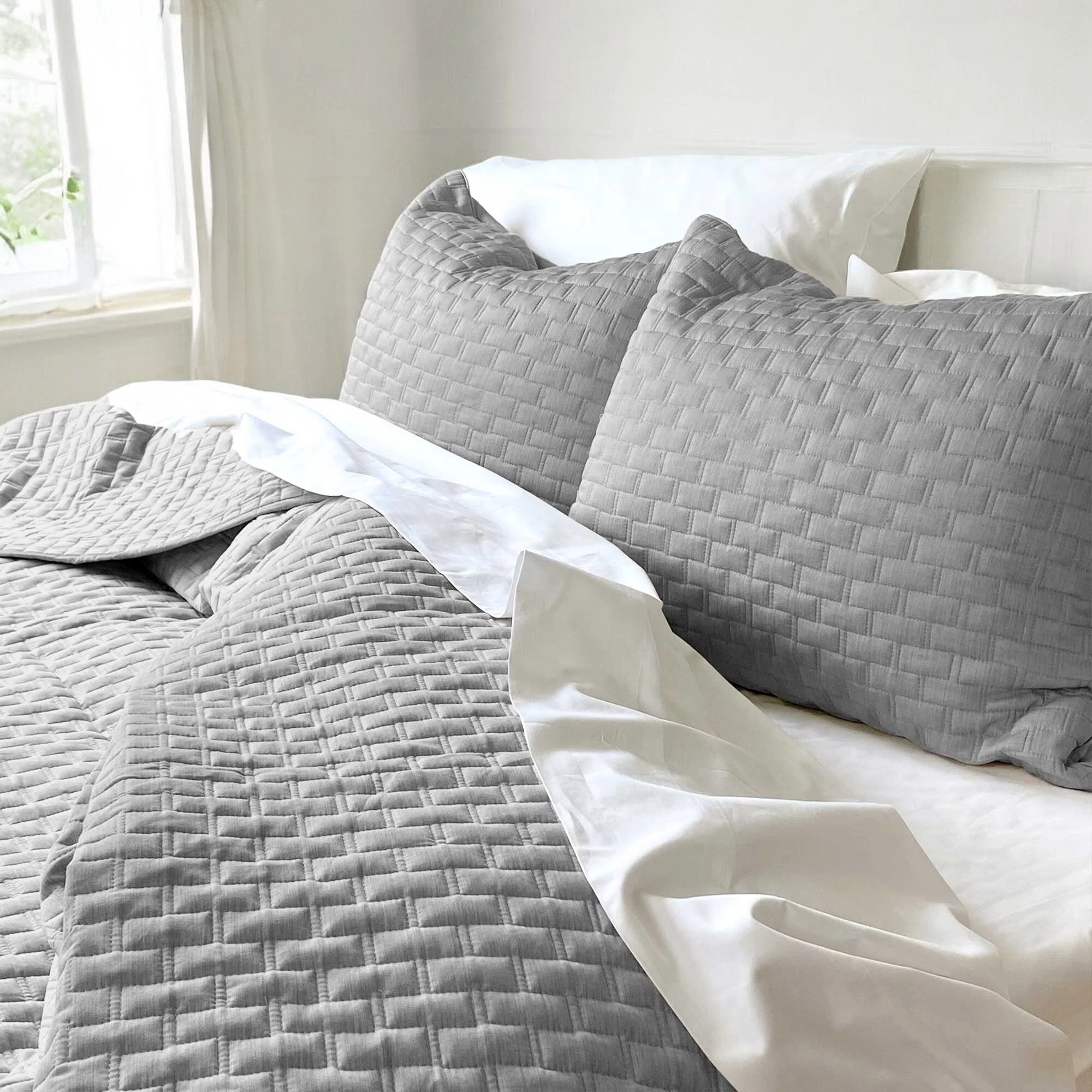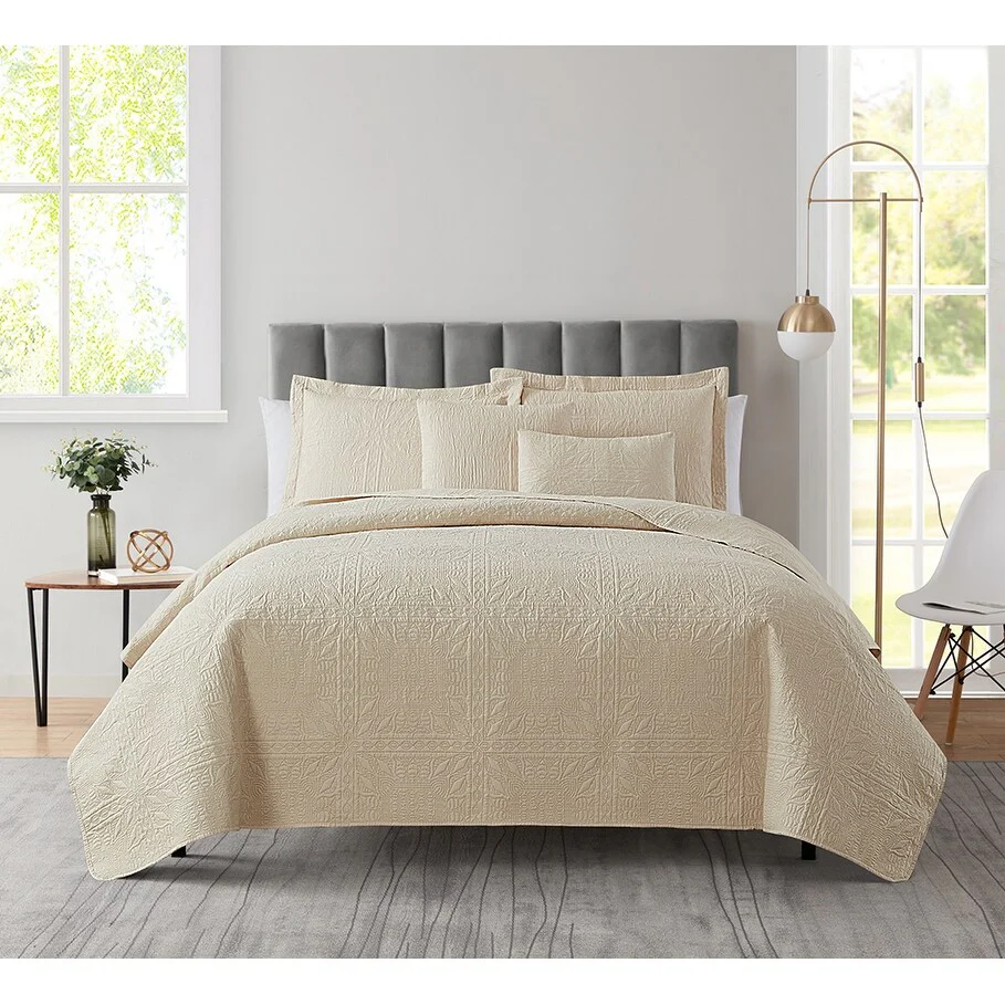 Clara Clark Bedspread Quilt Set - Grid Weave Pinsonic Lightweight Coverlet Set