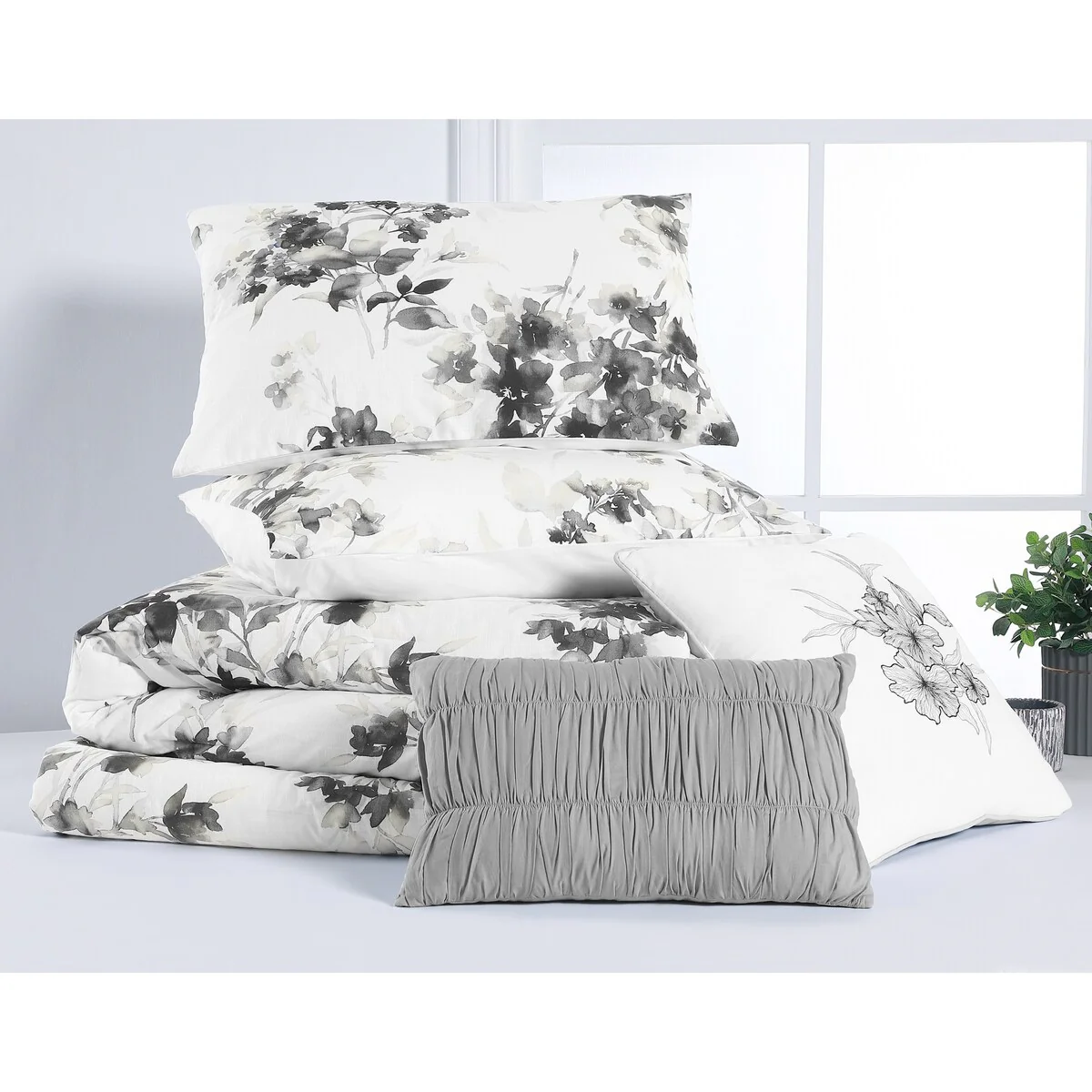 22026 White & Grey/5 Piece - Queen