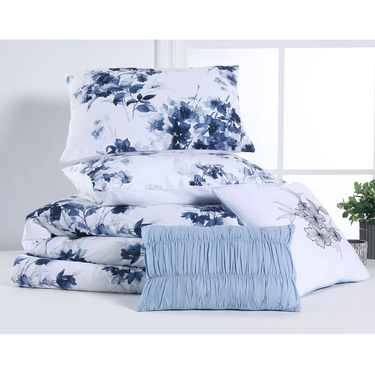 21054 Blue & White/7 Piece - Queen