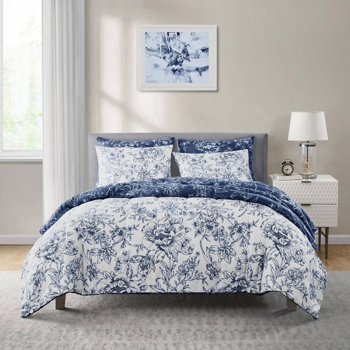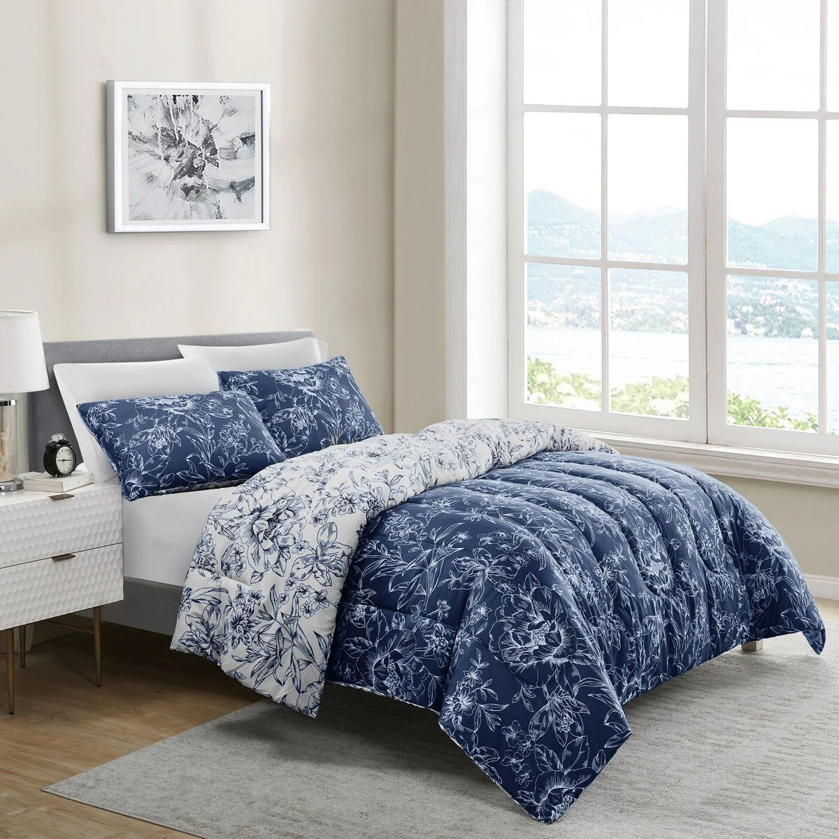 22026 White & Navy/5 Piece - Queen