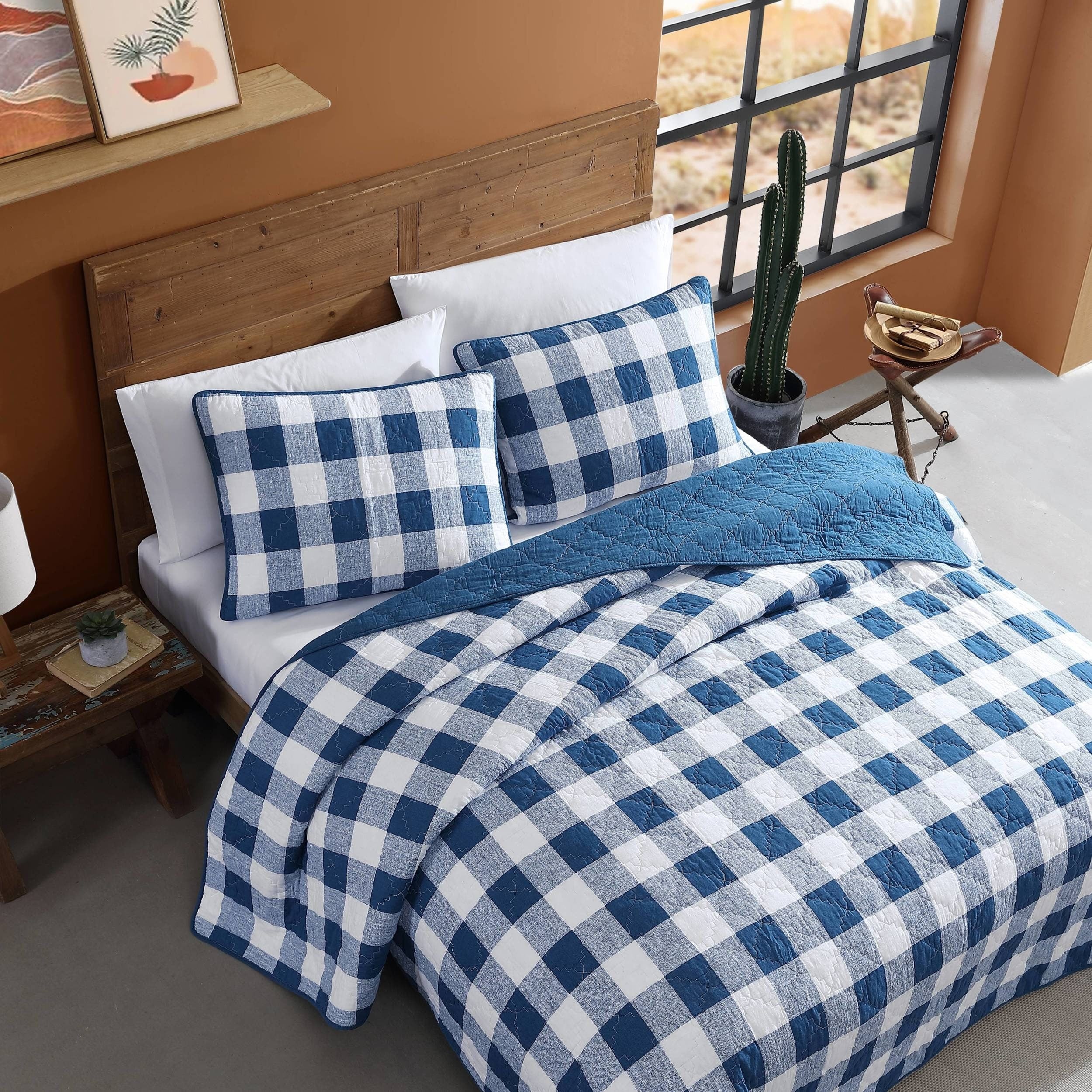 Wrangler Flagstaff Check Blue Cotton Quilt Set