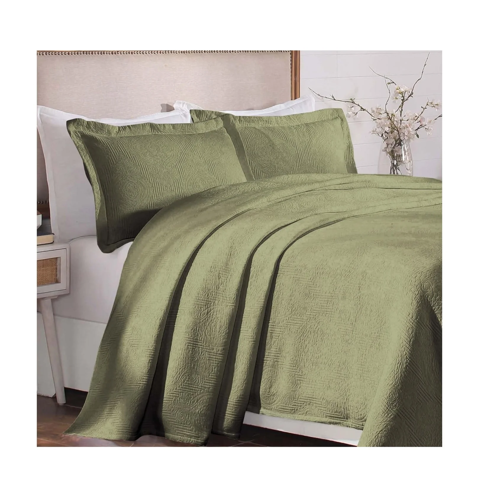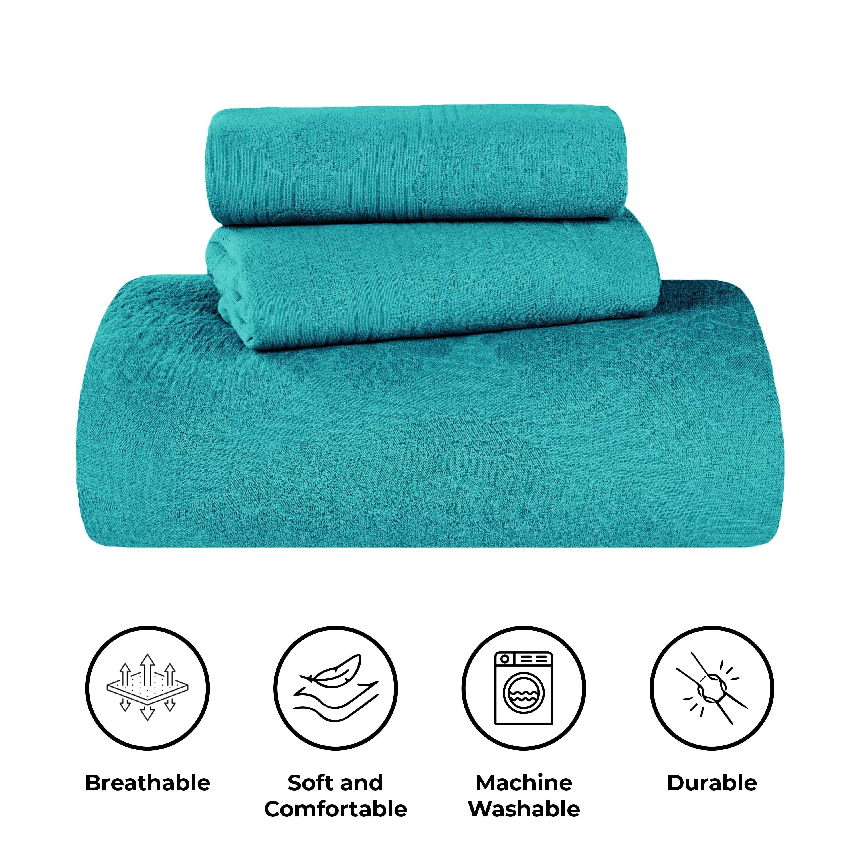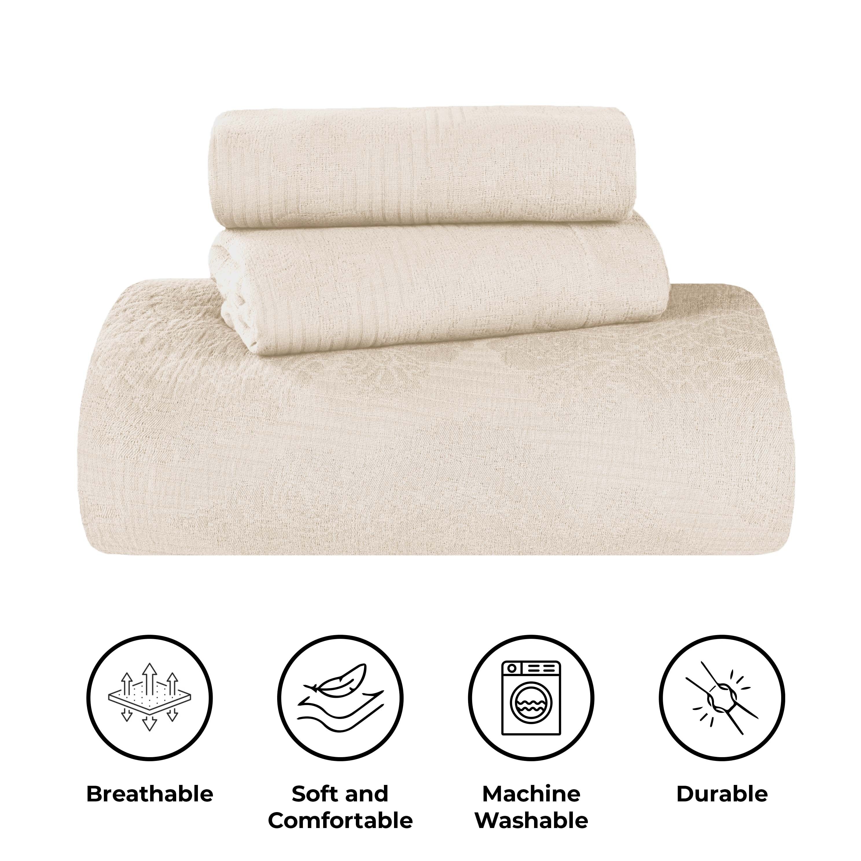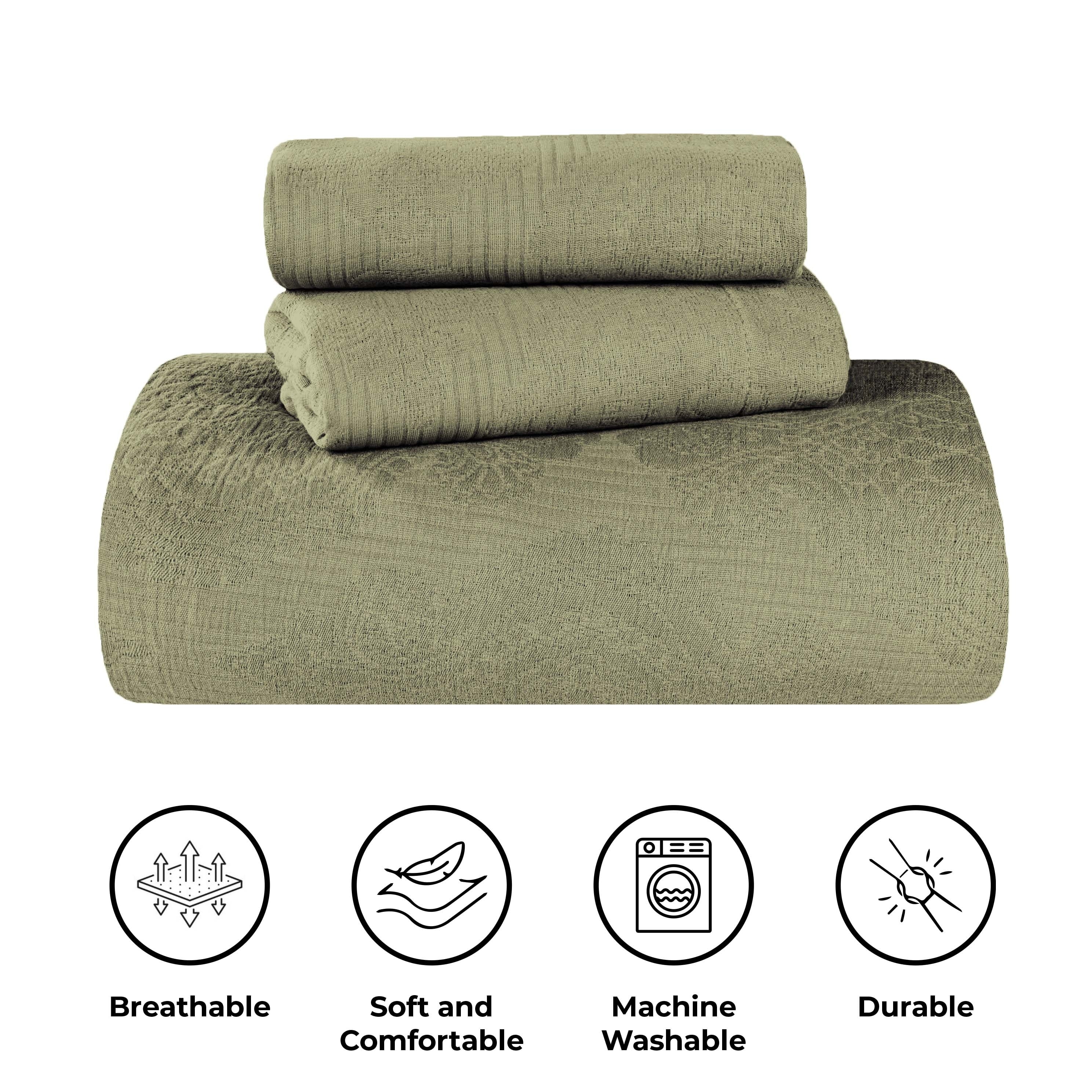 Superior Victory Cotton Matelasse Jacquard Medallion Scroll Bedspread Set