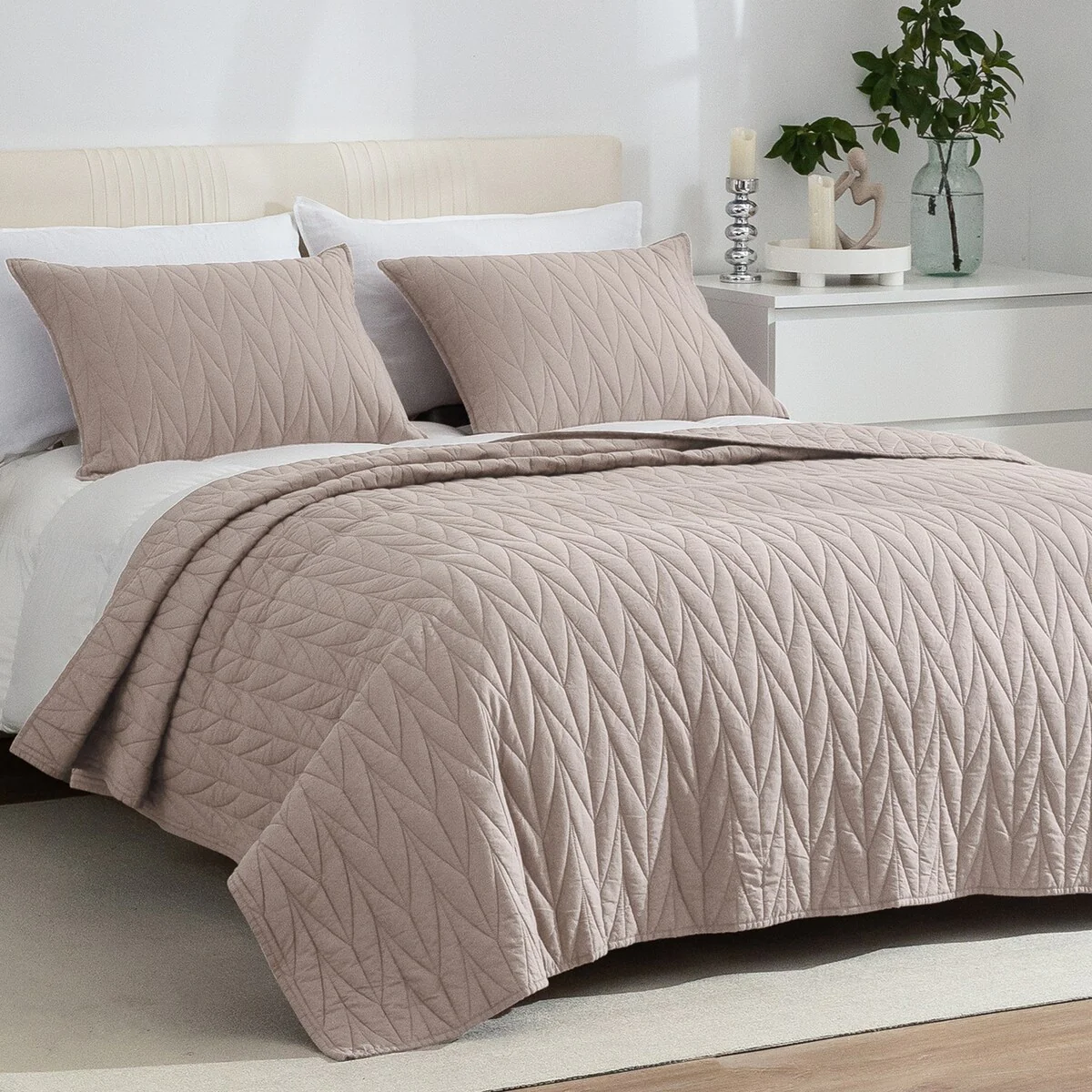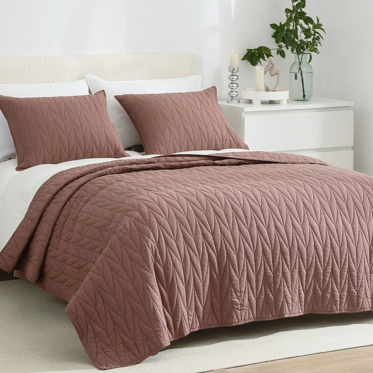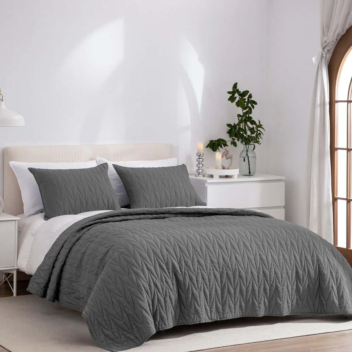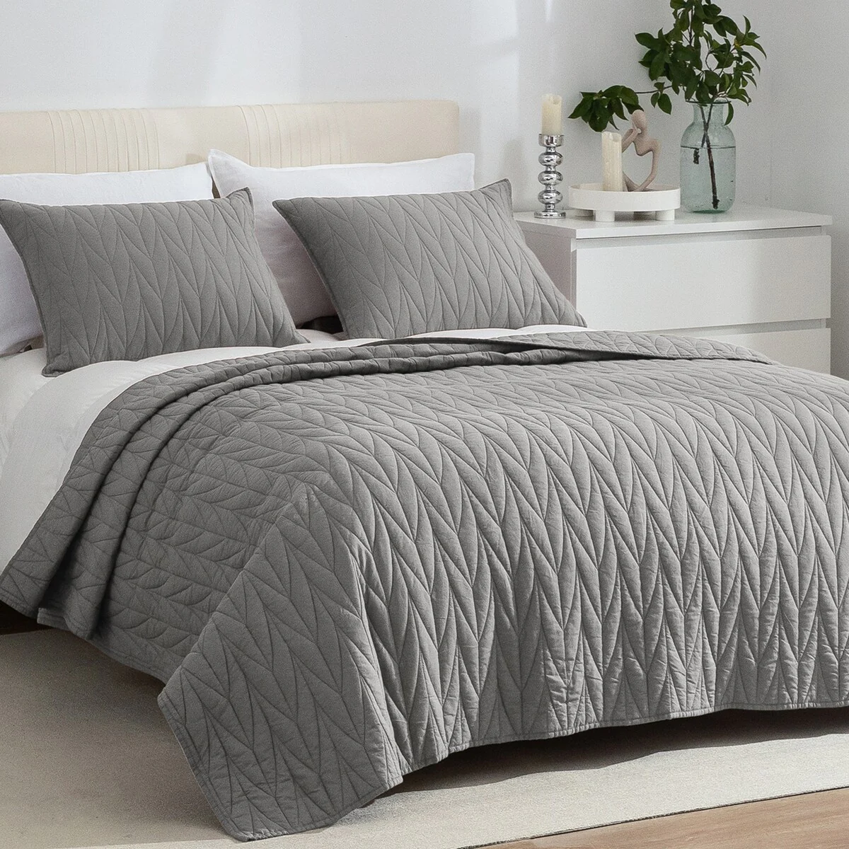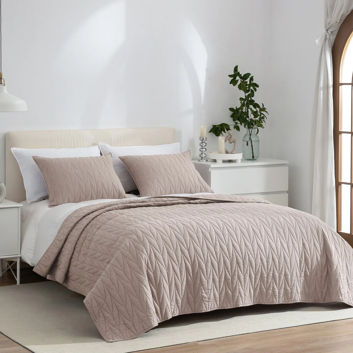 Modern Threads Leaf Solid Reversible Quilted 3-Piece Coverlet Set