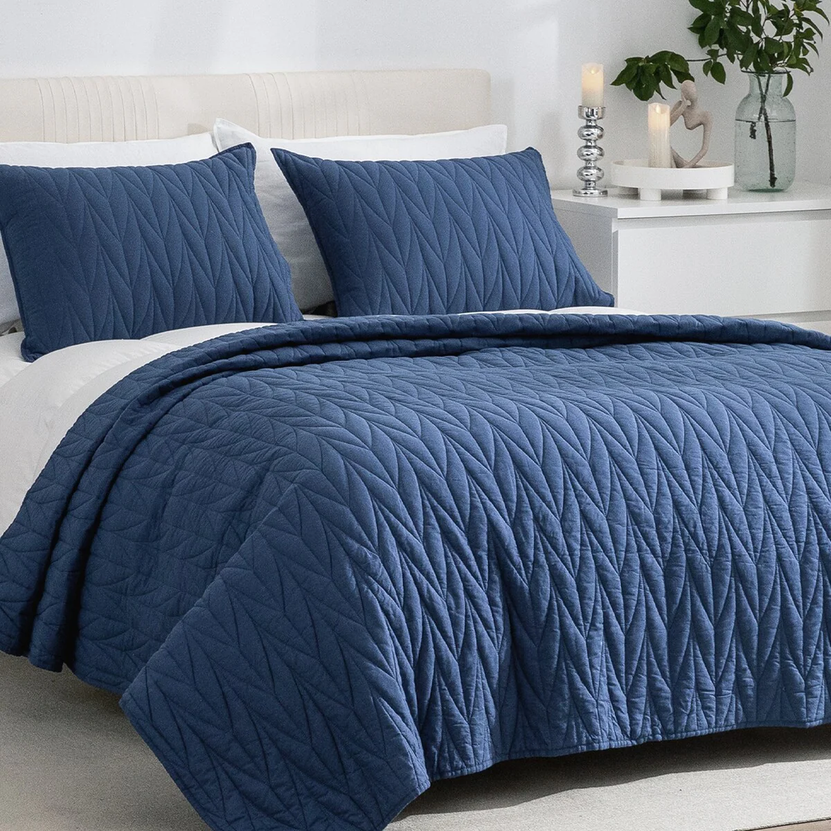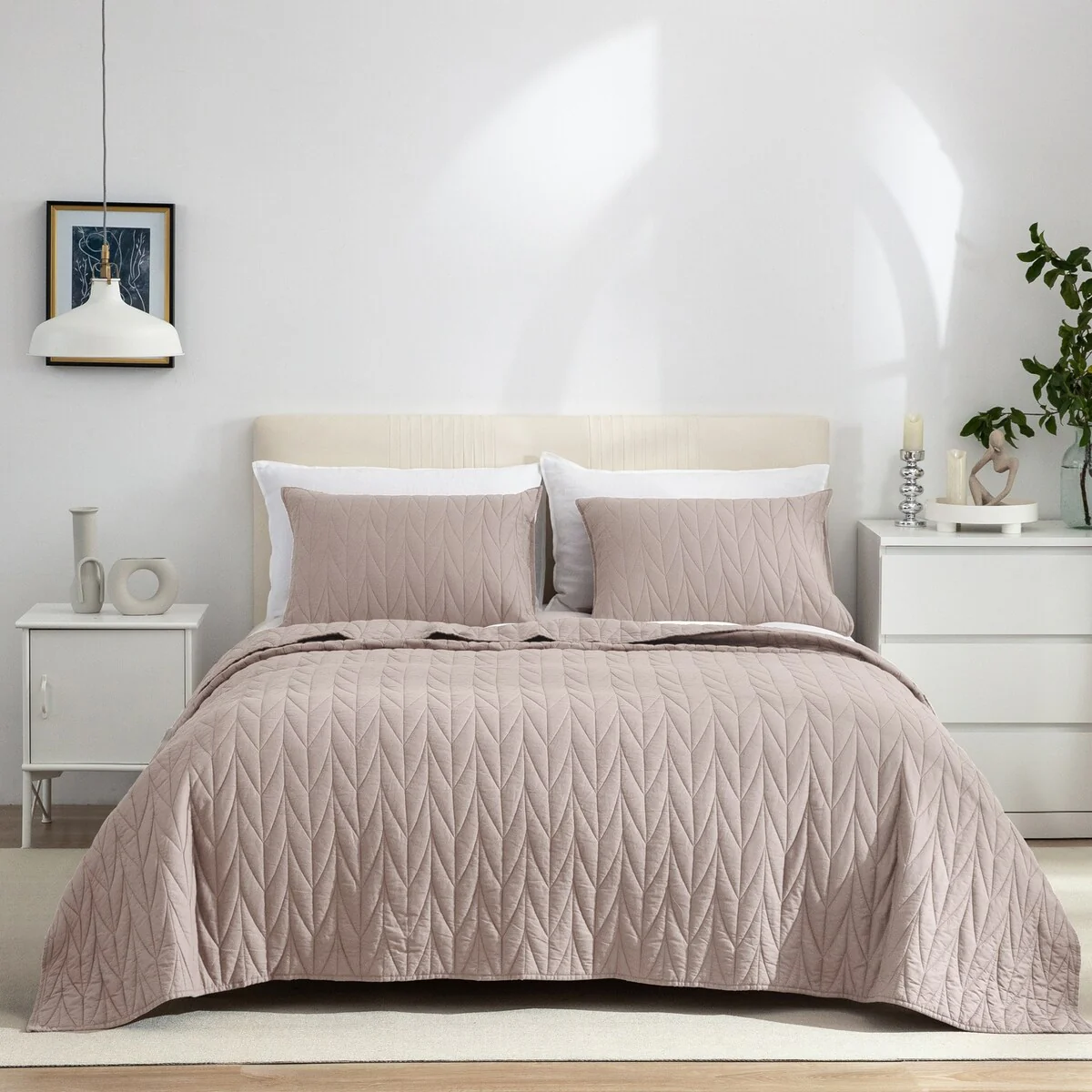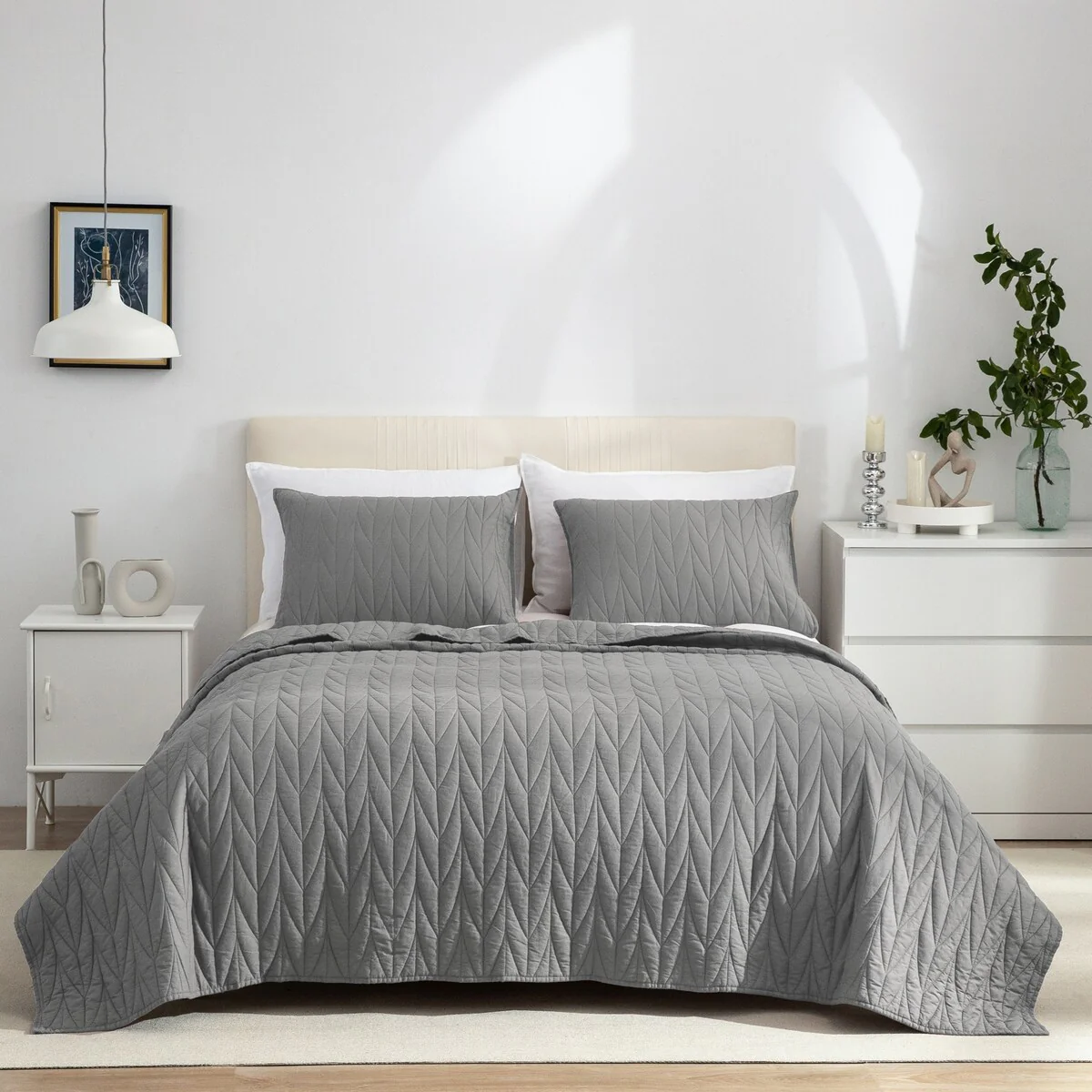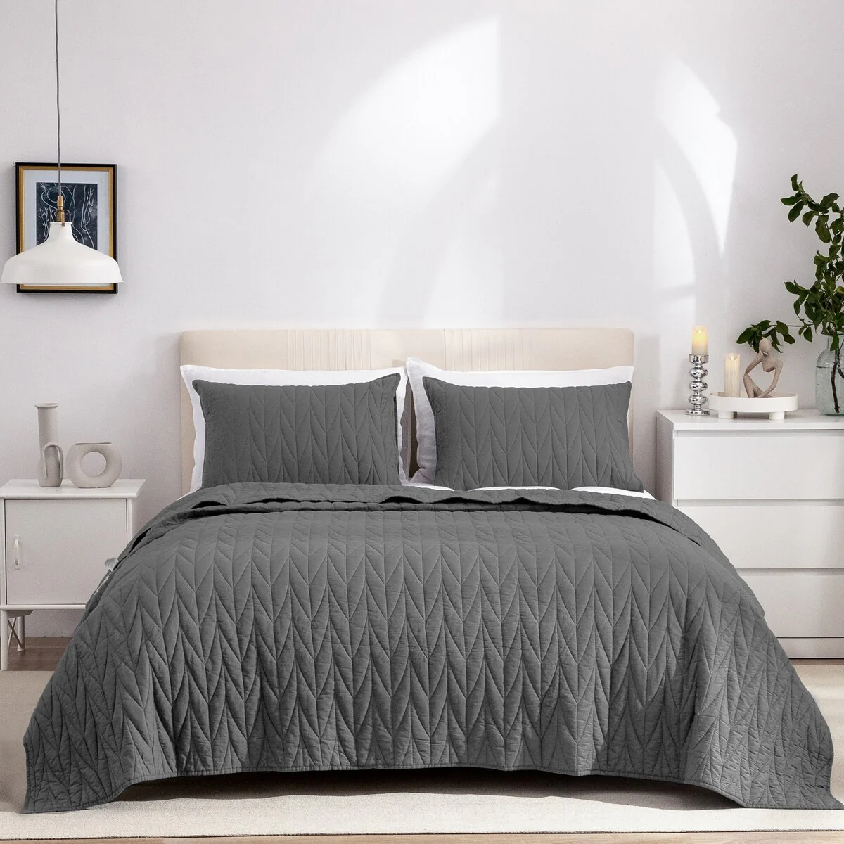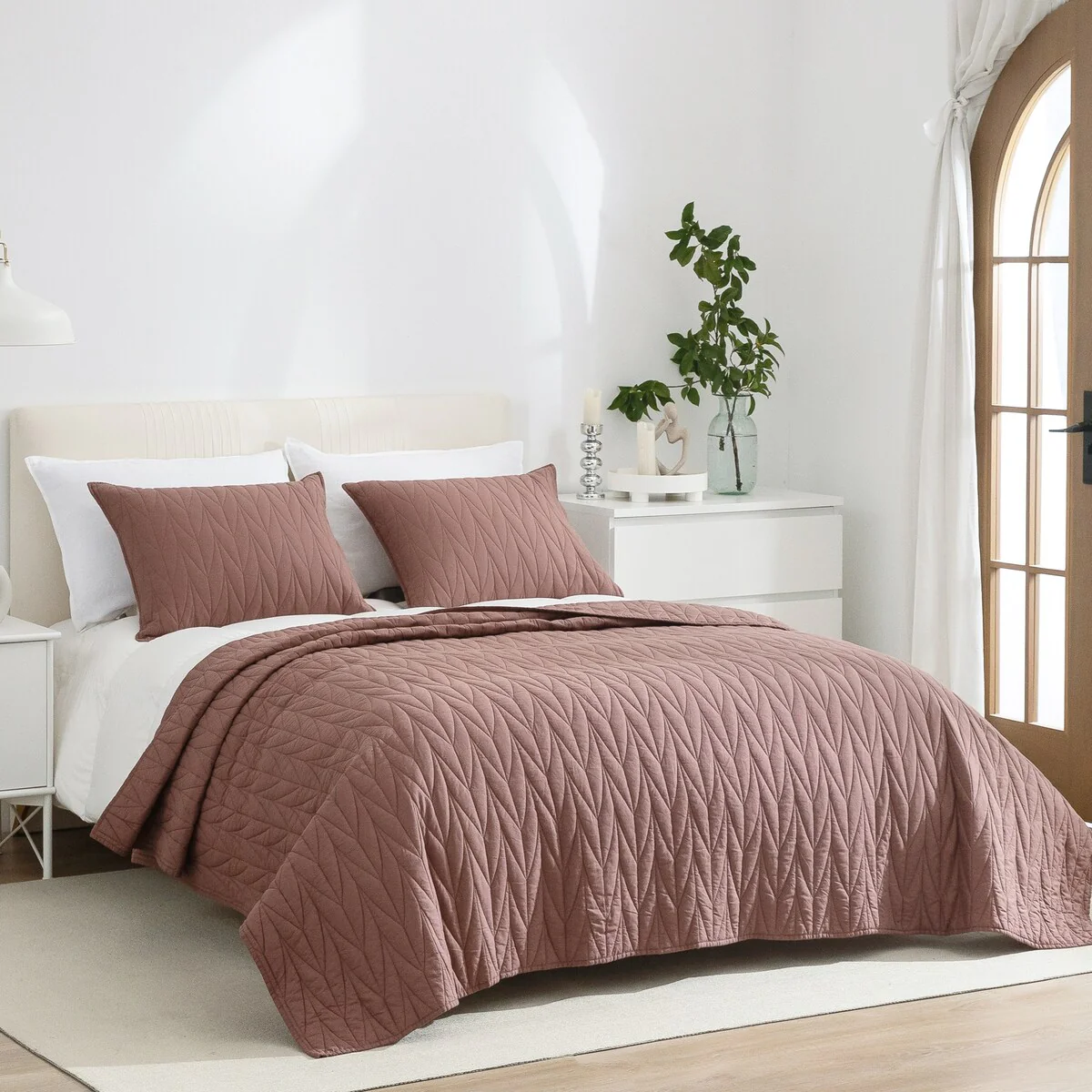 Modern Threads Leaf Solid Reversible Quilted 3-Piece Coverlet Set