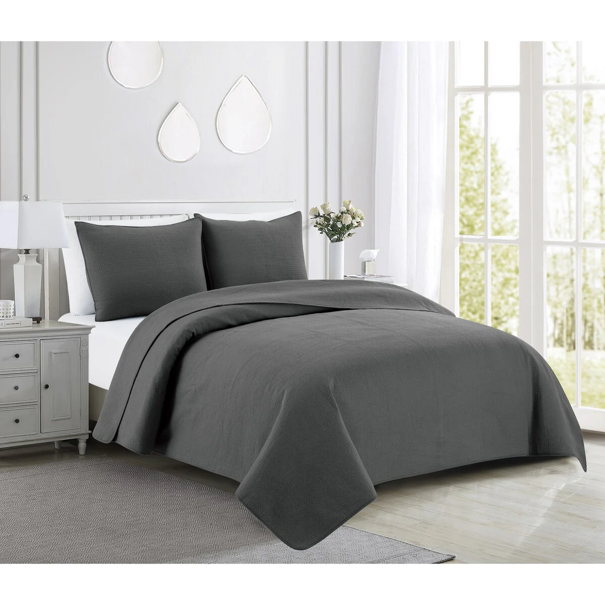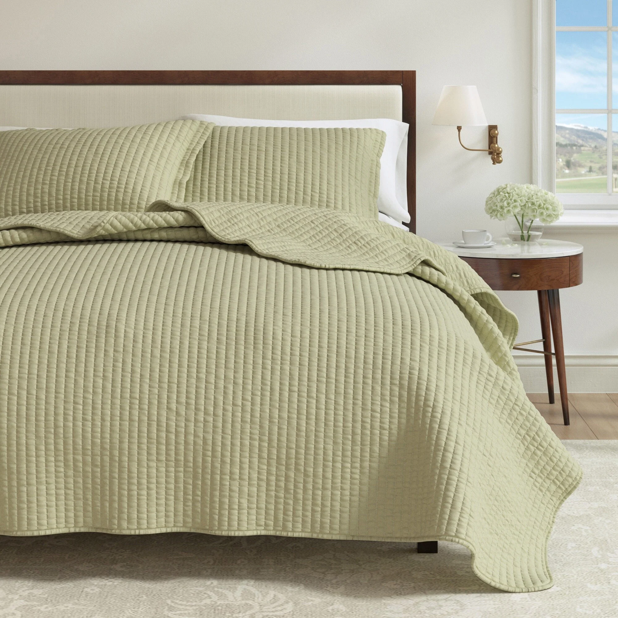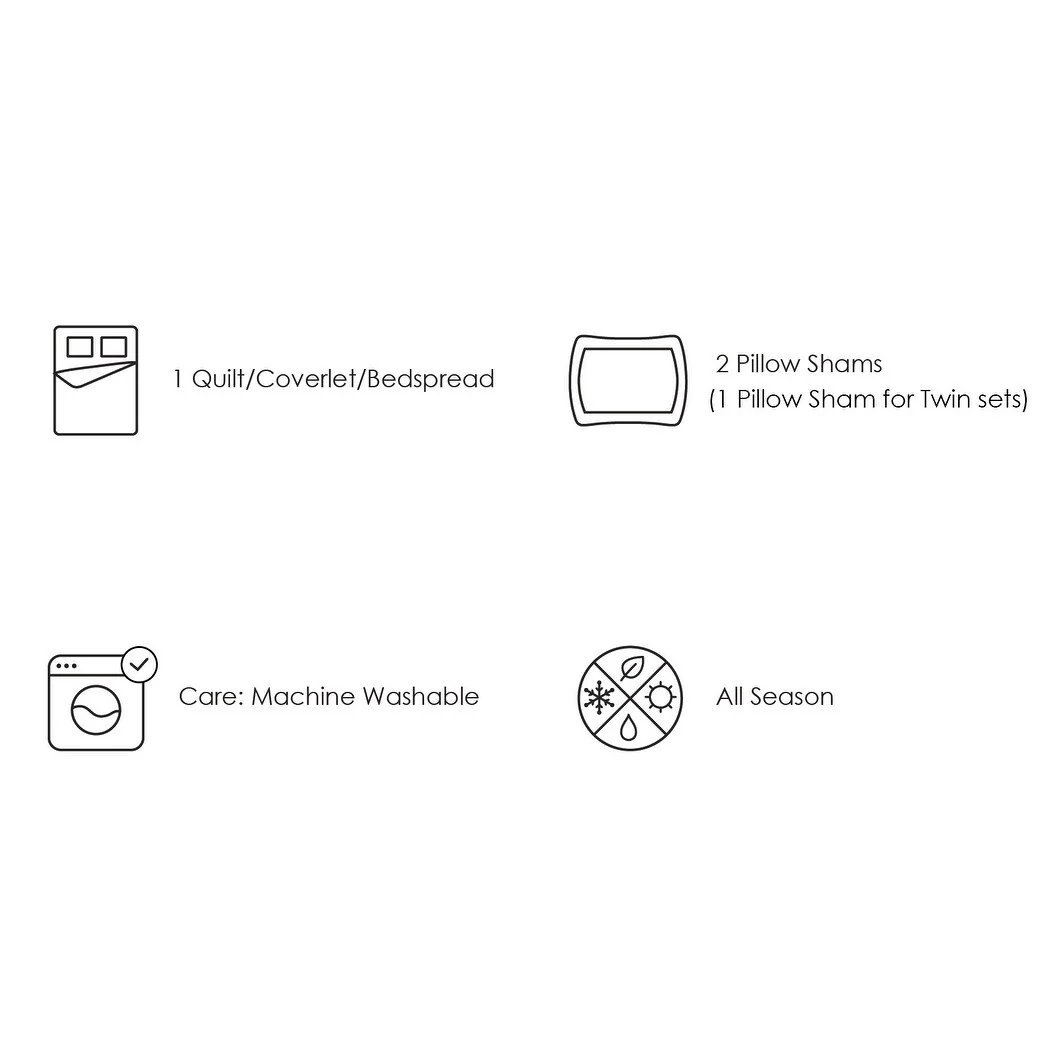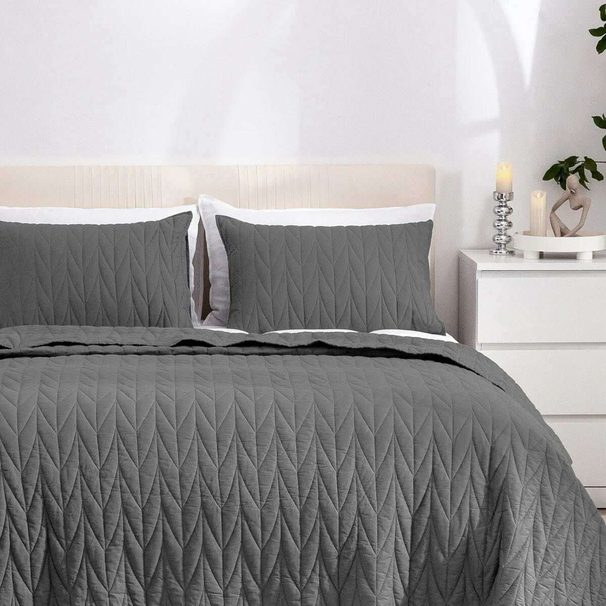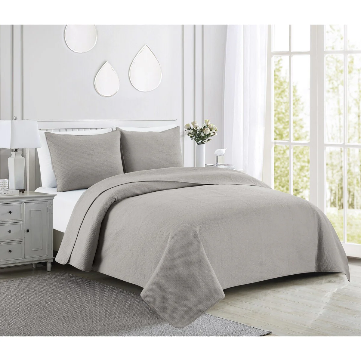 Modern Threads Leaf Solid Reversible Quilted 3-Piece Coverlet Set