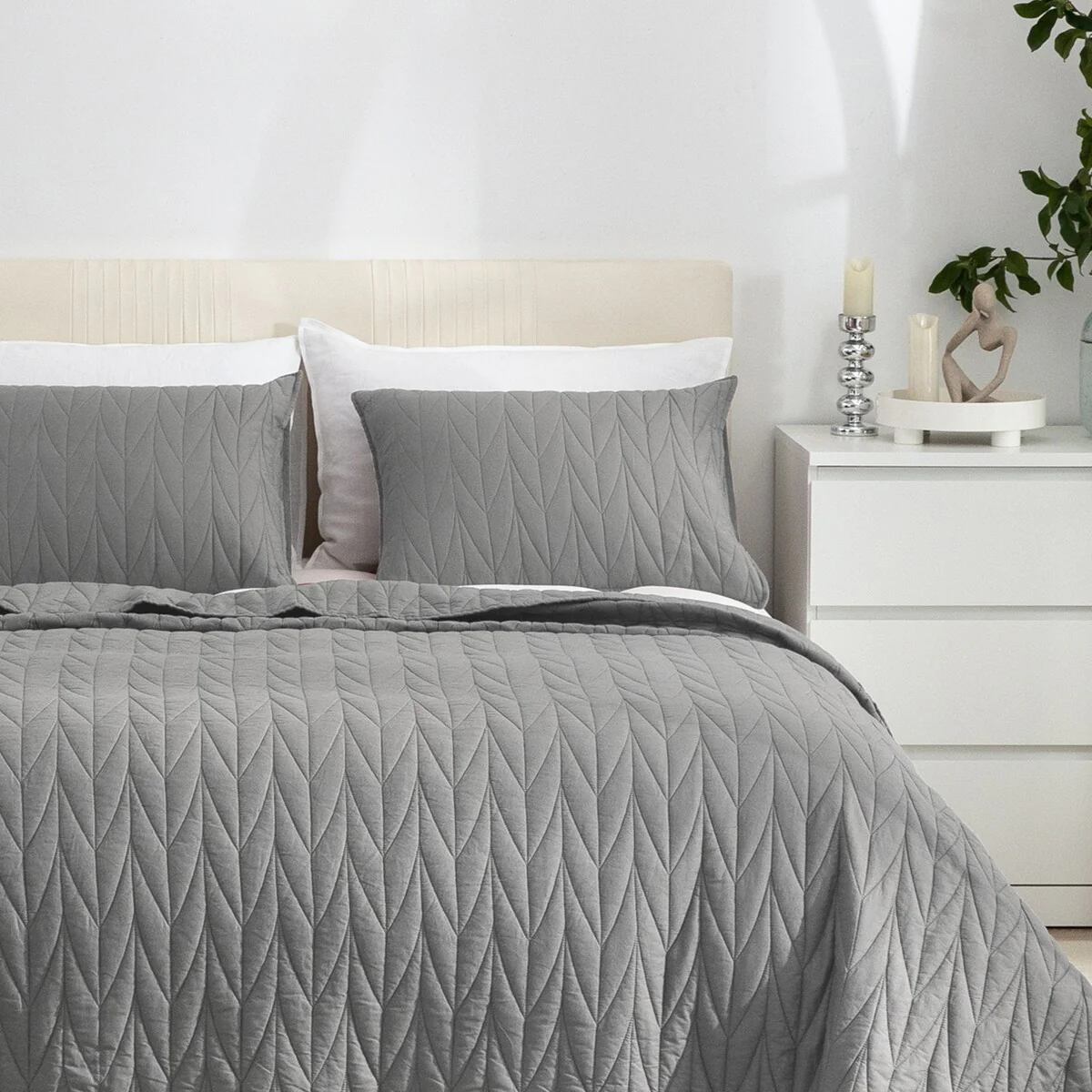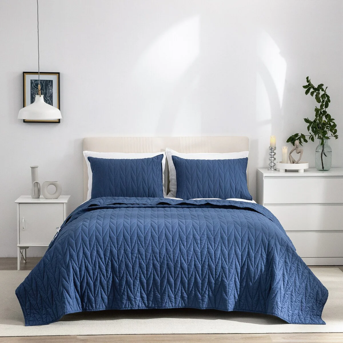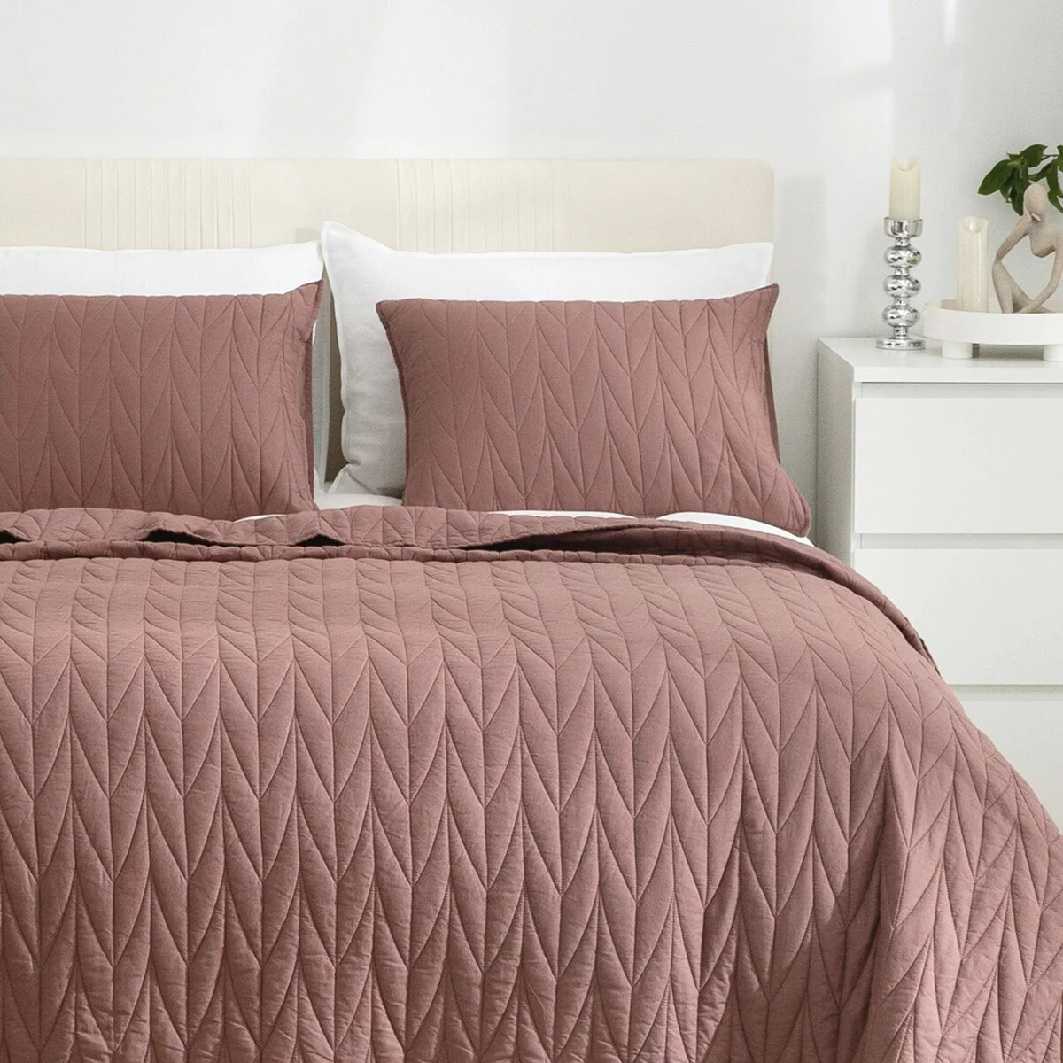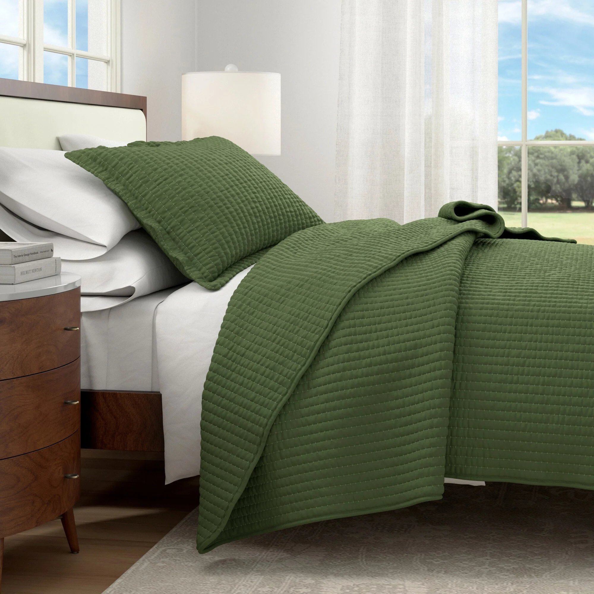 Modern Threads Leaf Solid Reversible Quilted 3-Piece Coverlet Set