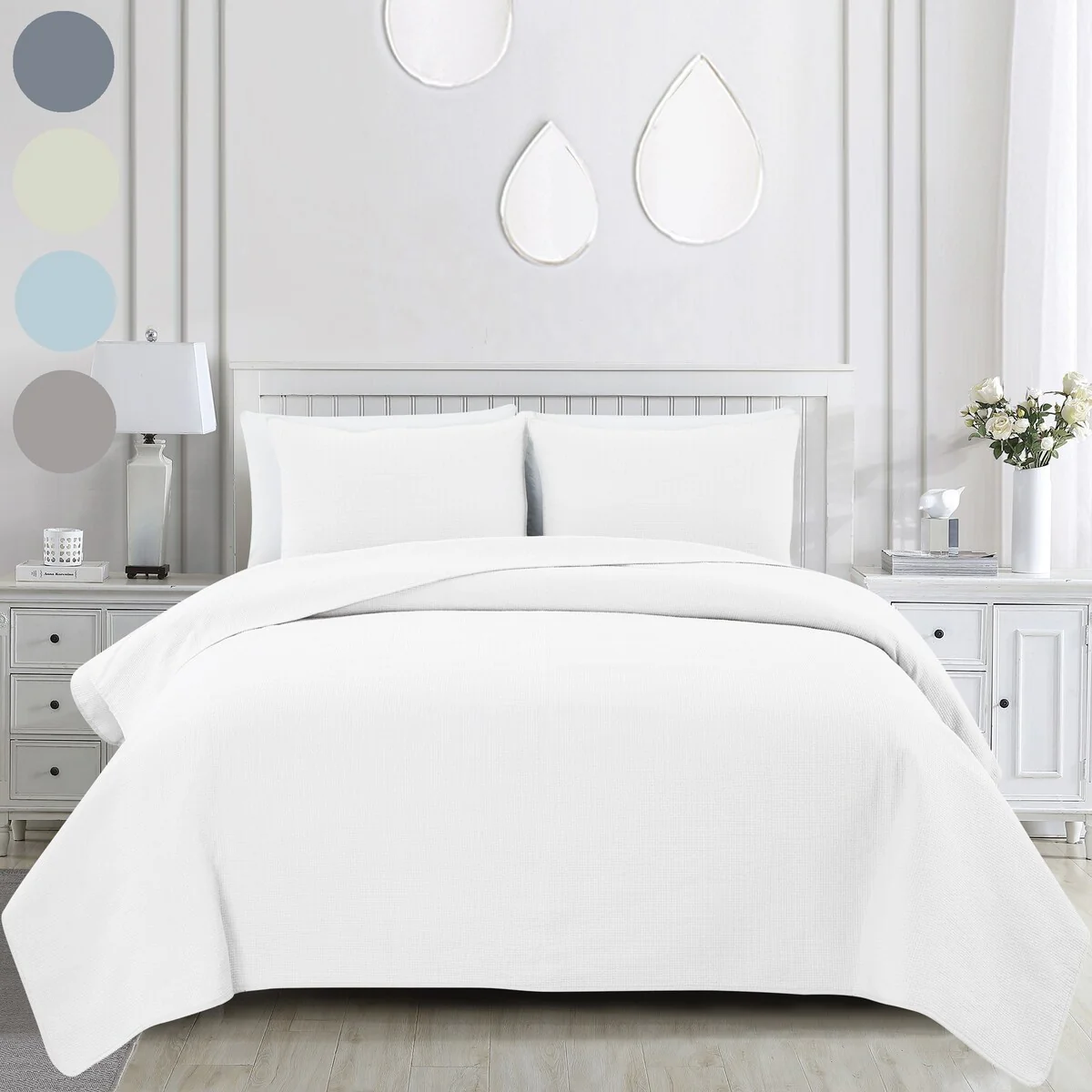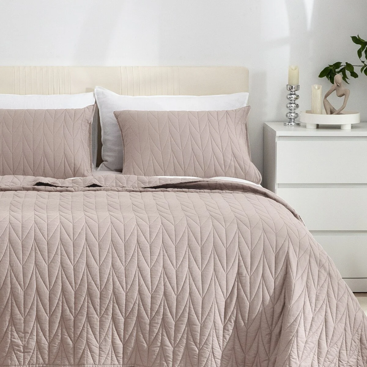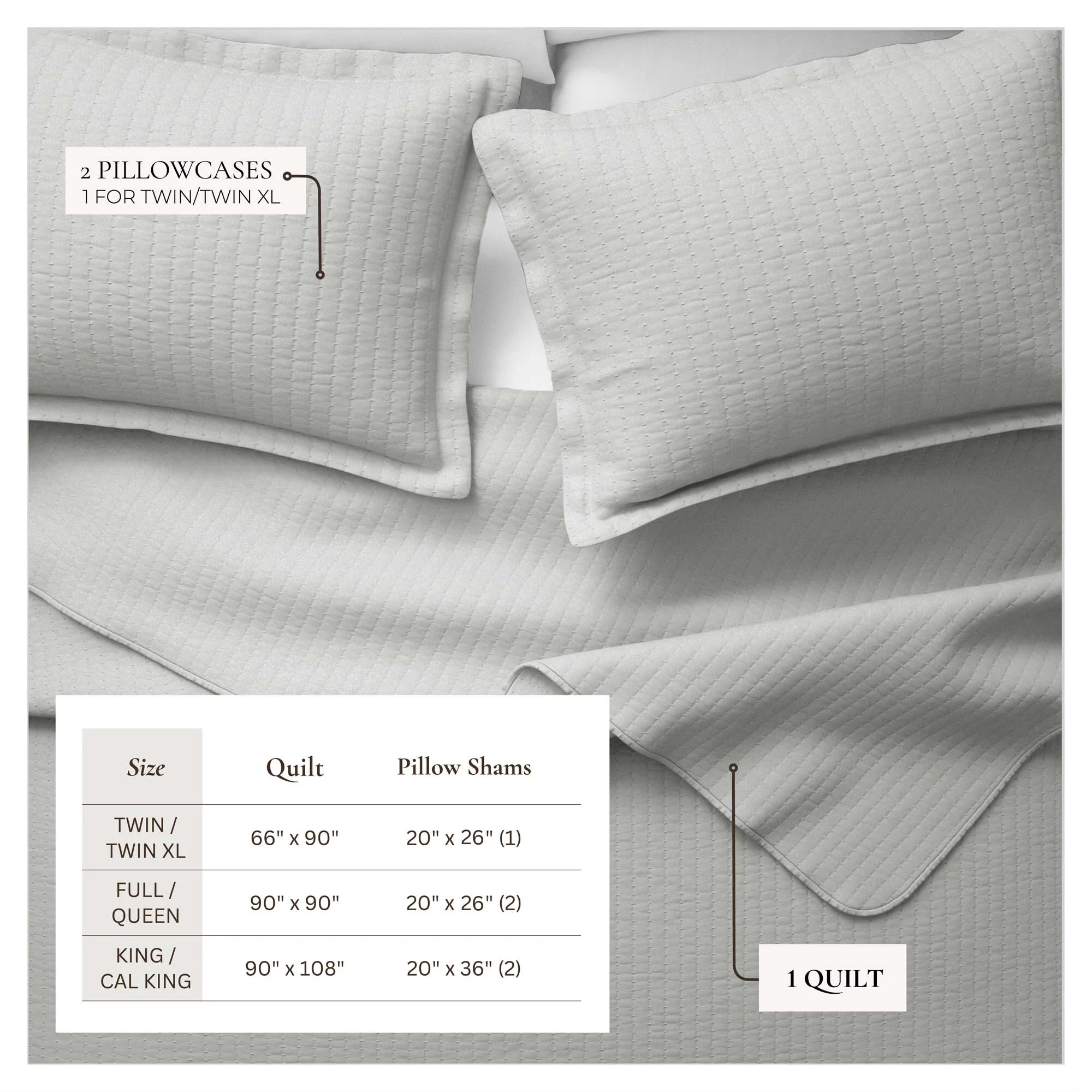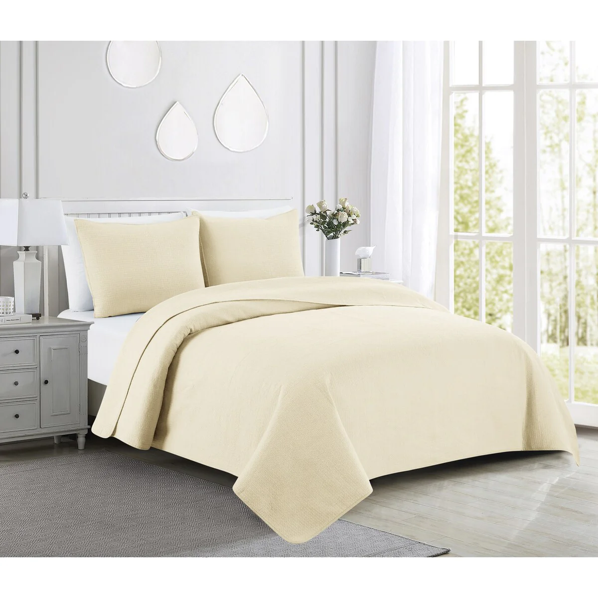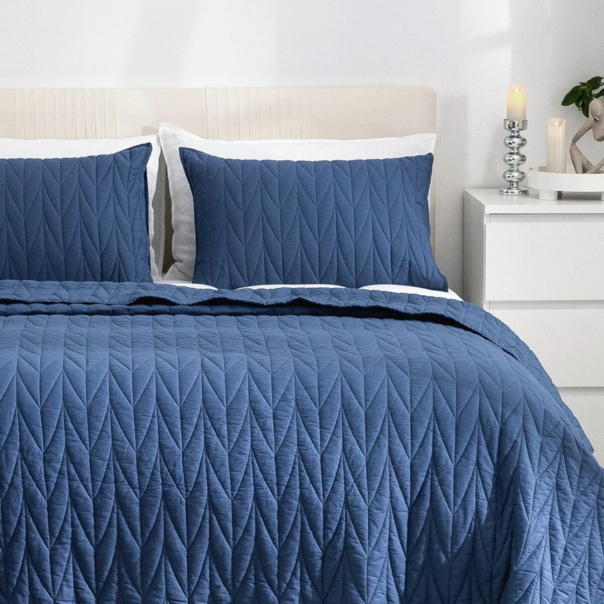 Modern Threads Leaf Solid Reversible Quilted 3-Piece Coverlet Set