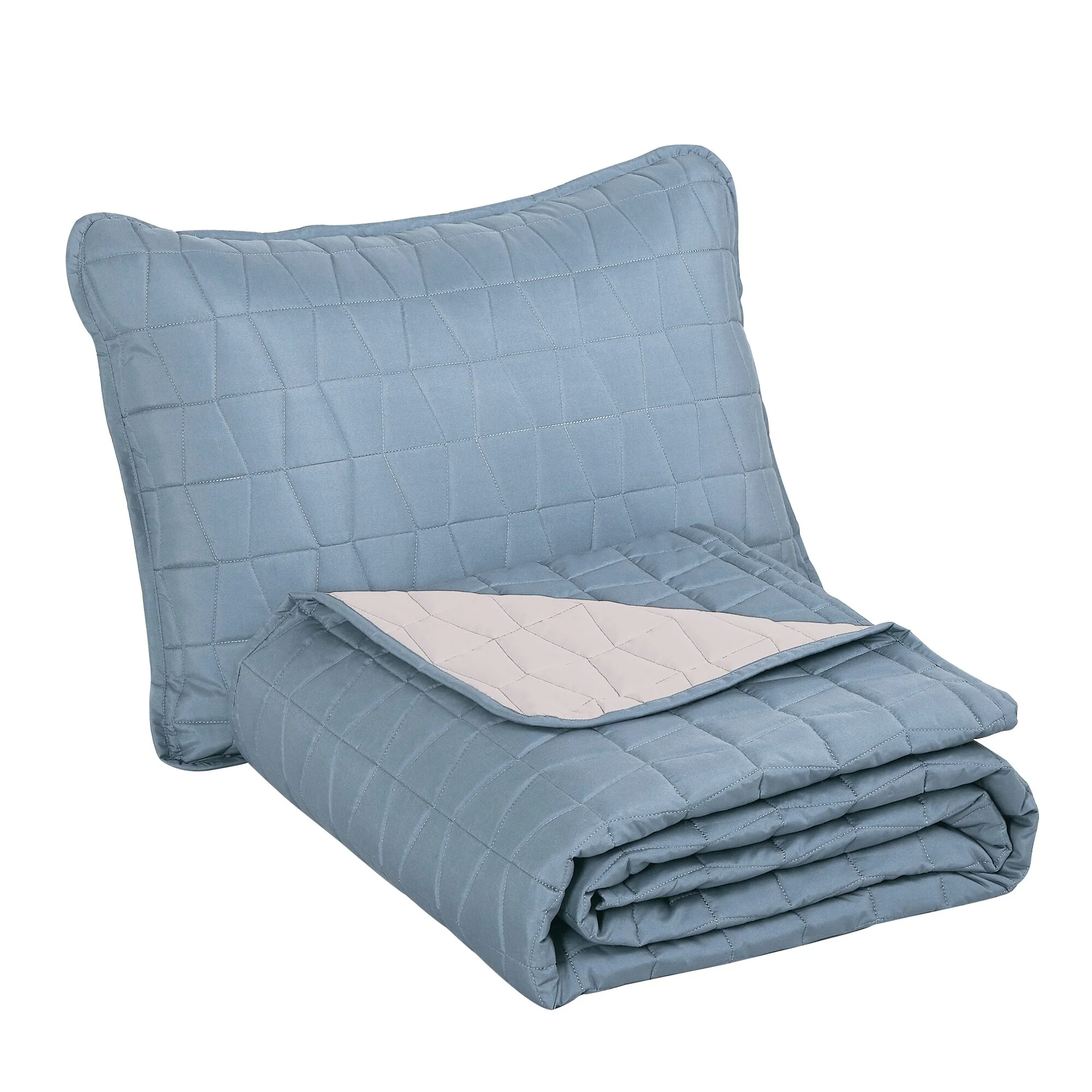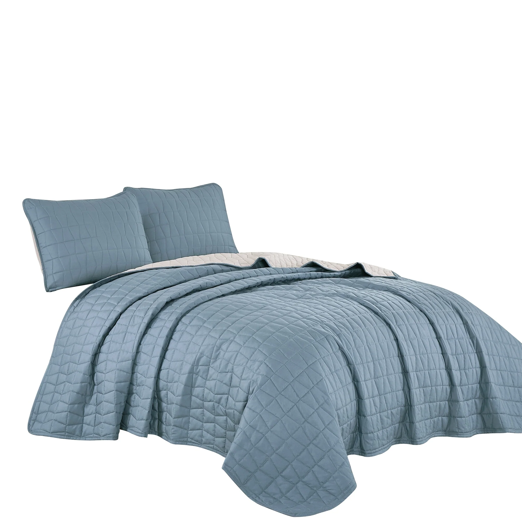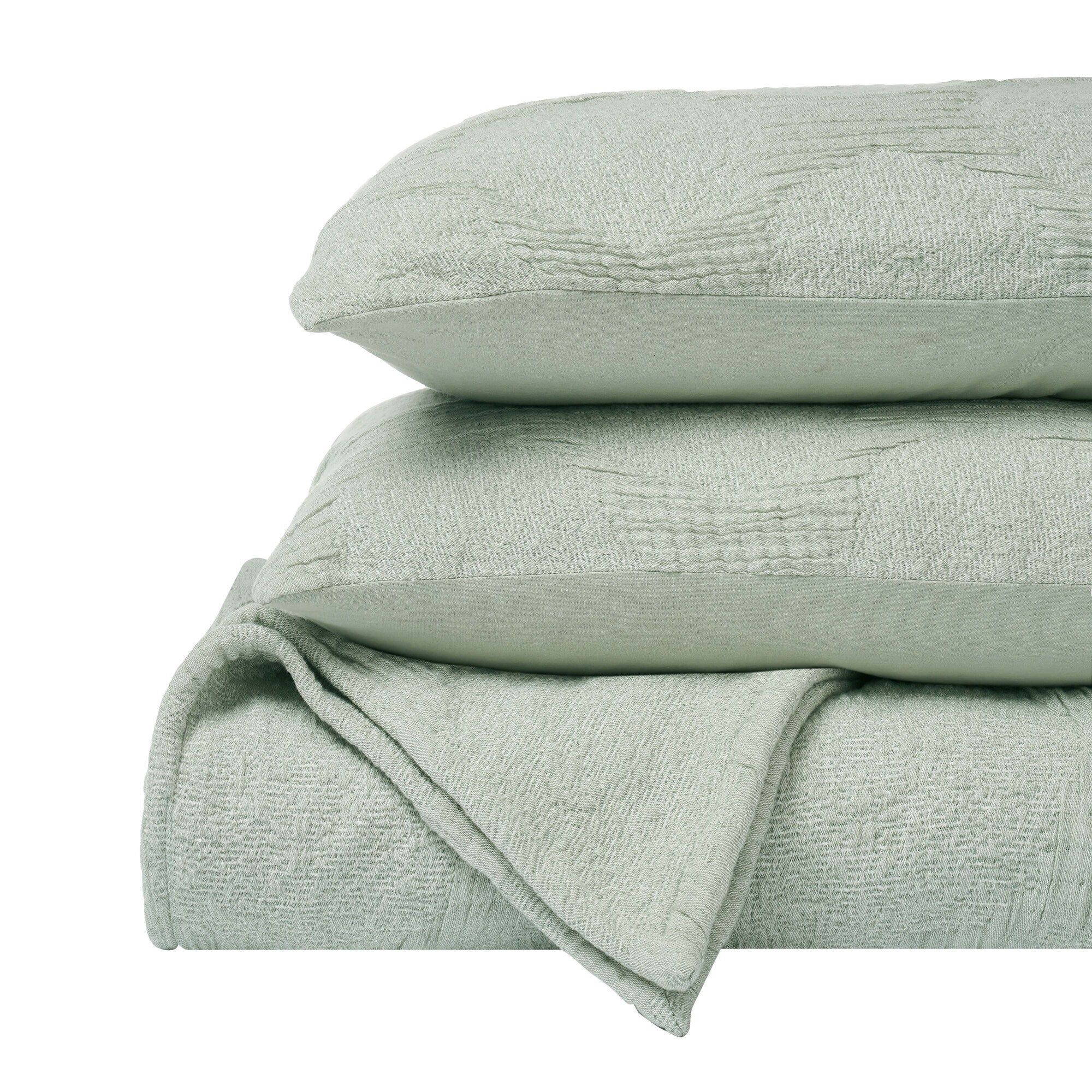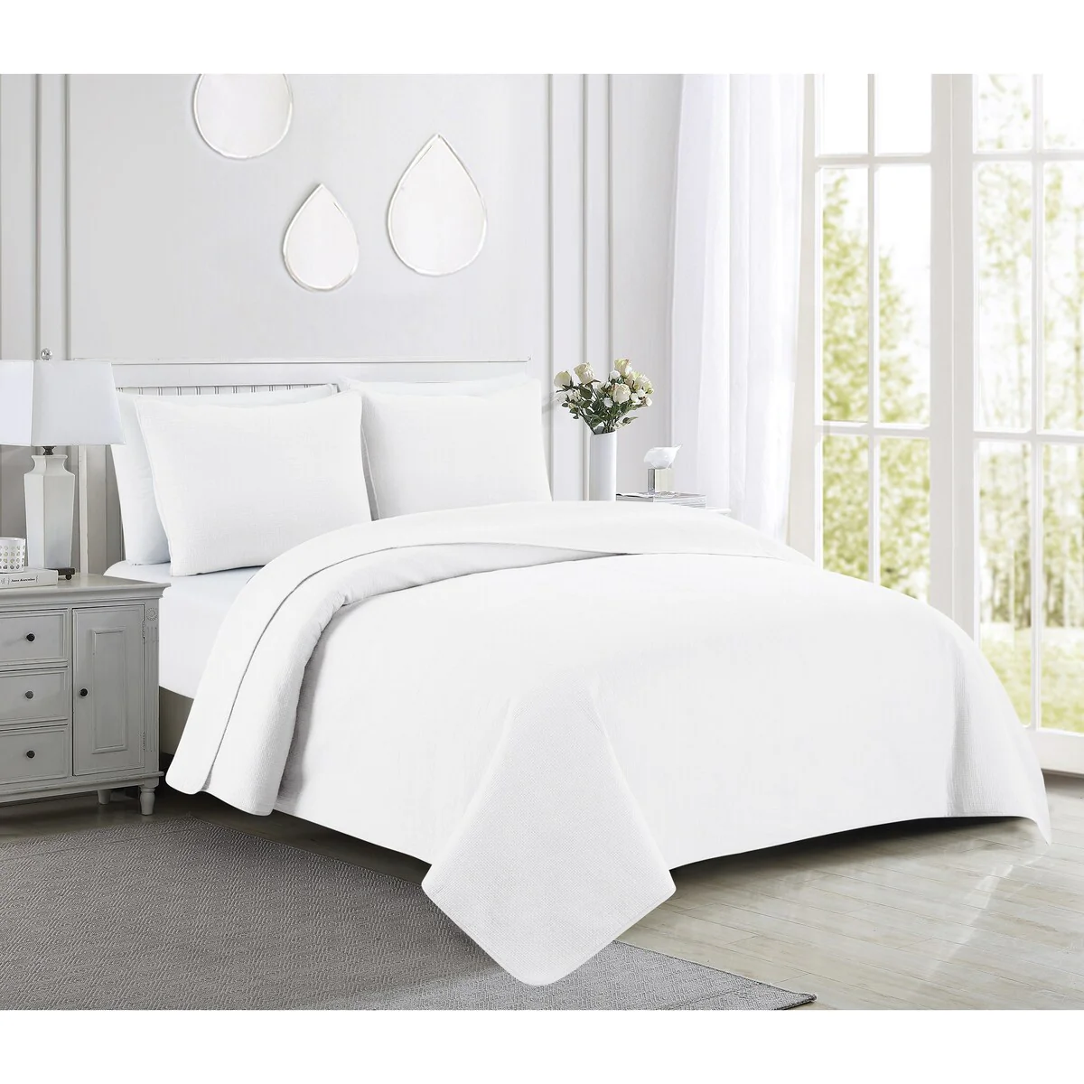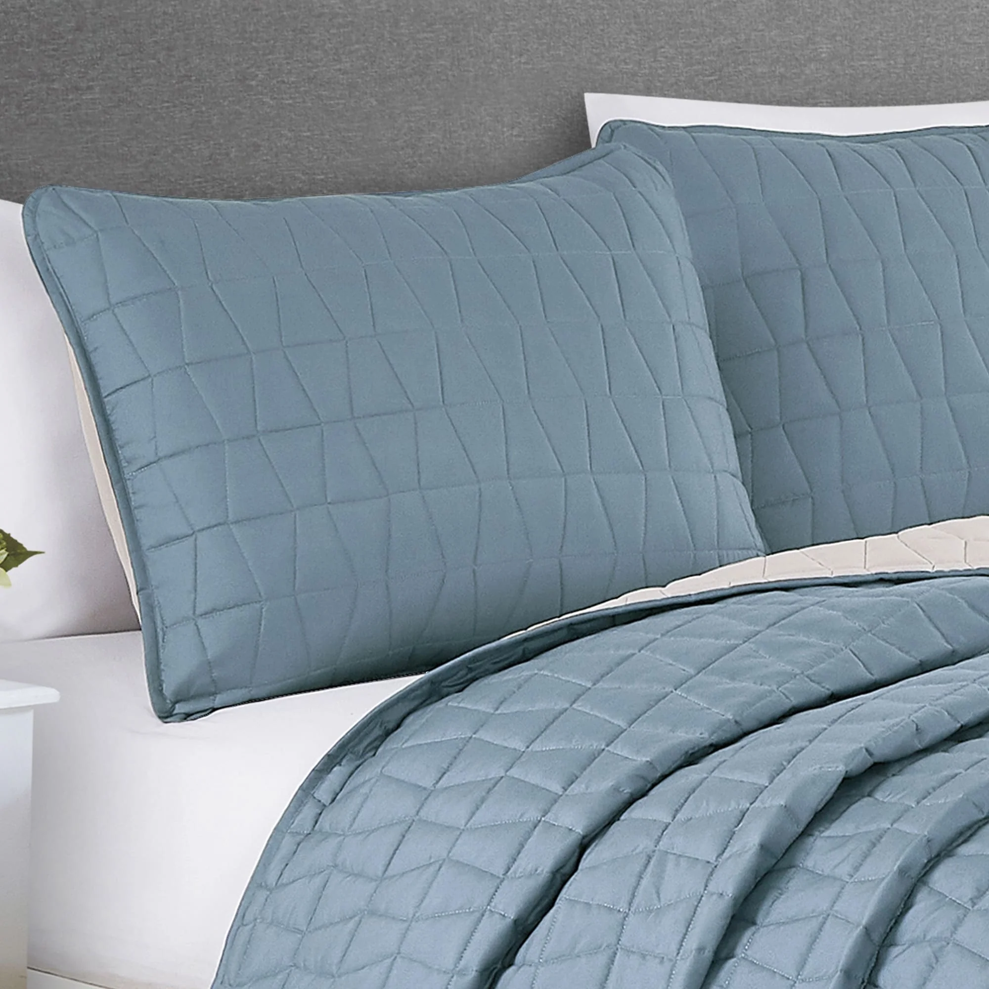 Modern Threads Leaf Solid Reversible Quilted 3-Piece Coverlet Set