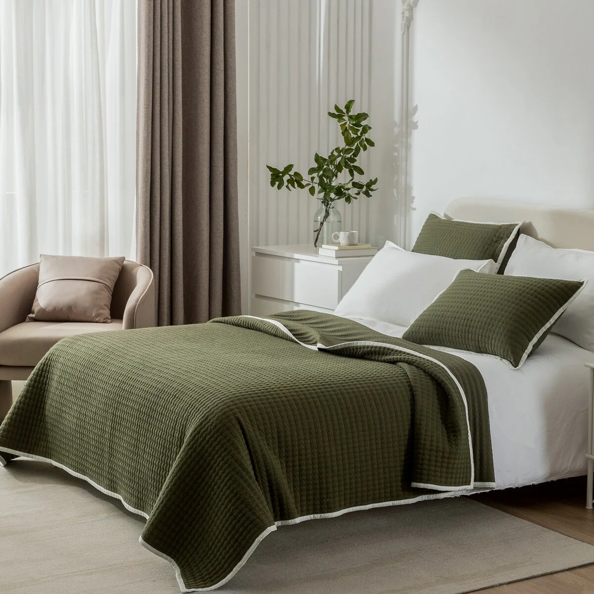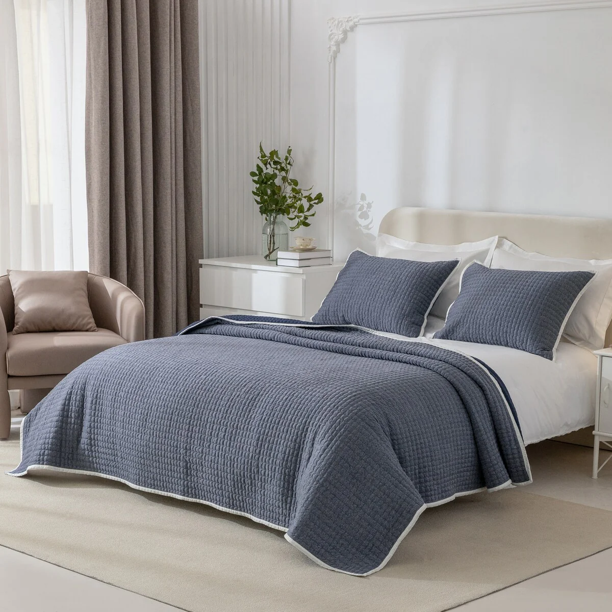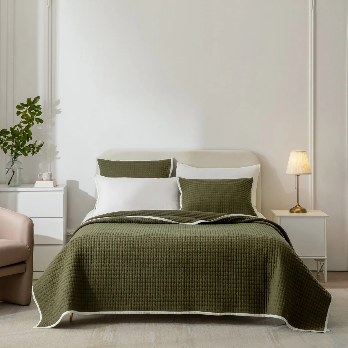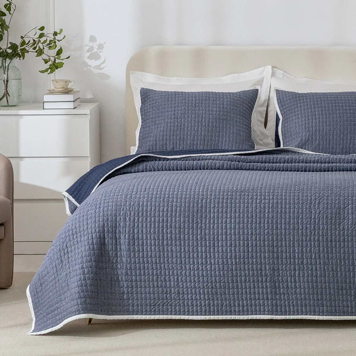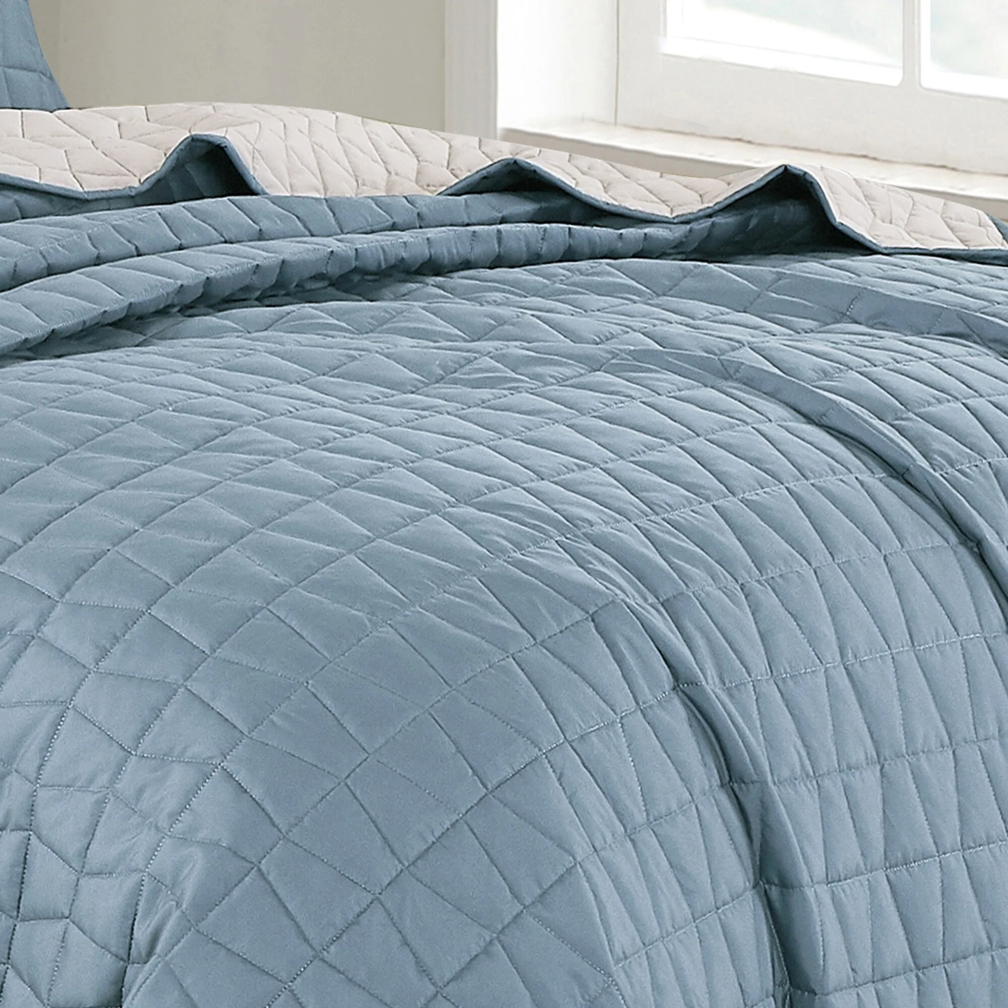 Modern Threads Leaf Solid Reversible Quilted 3-Piece Coverlet Set