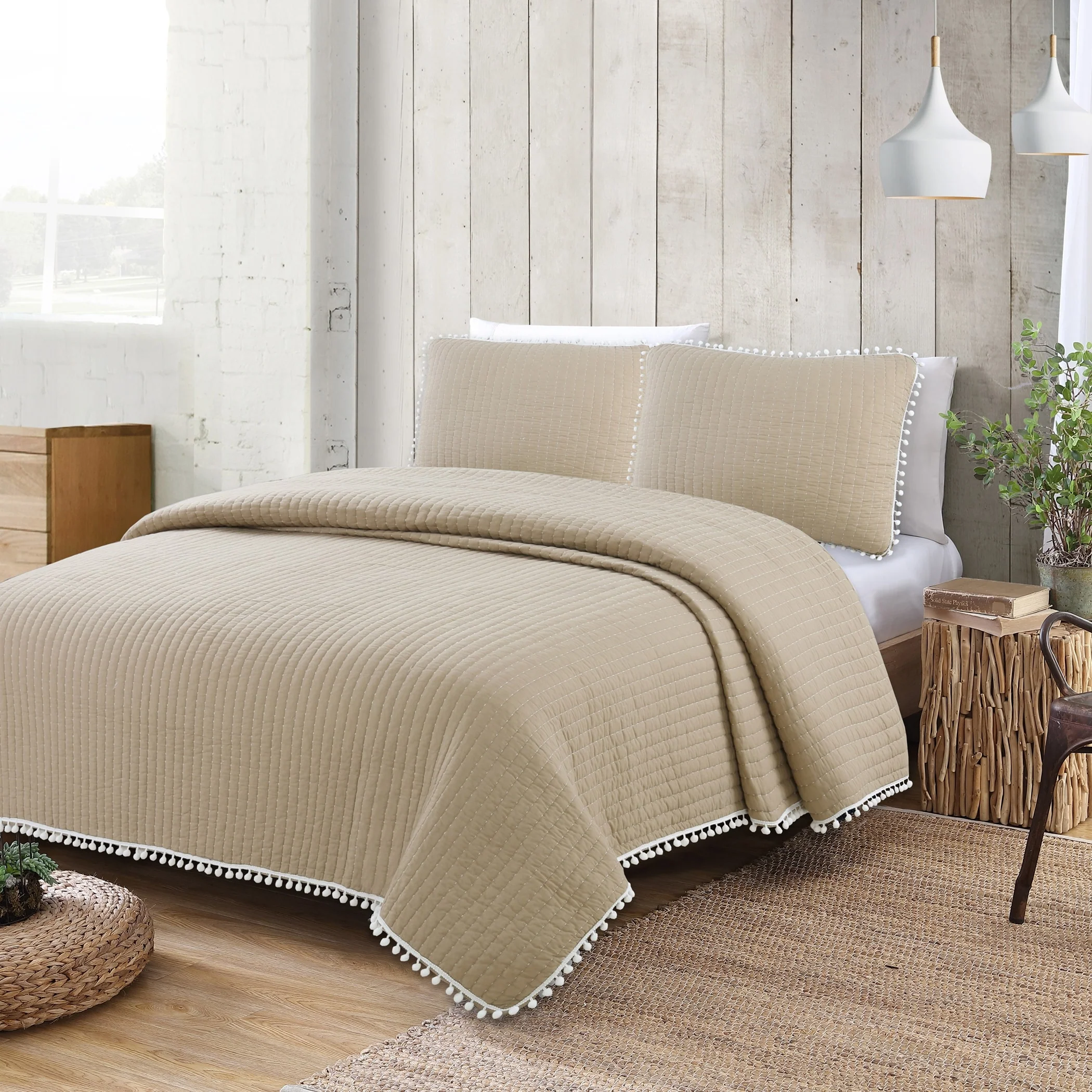 Estate Collection Costa Brava Pom-pom Cotton Quilt Set