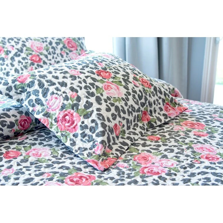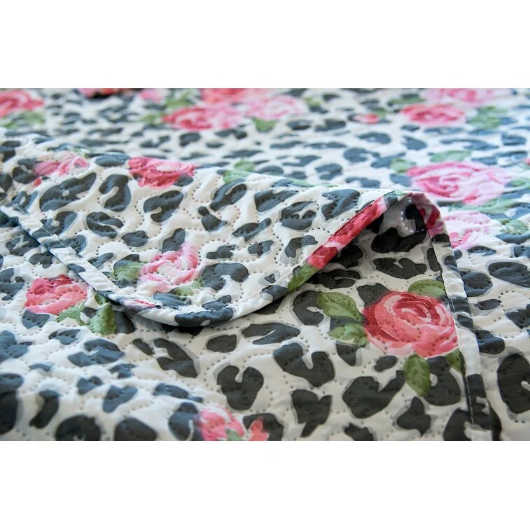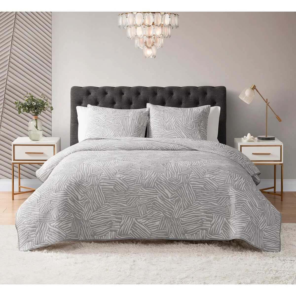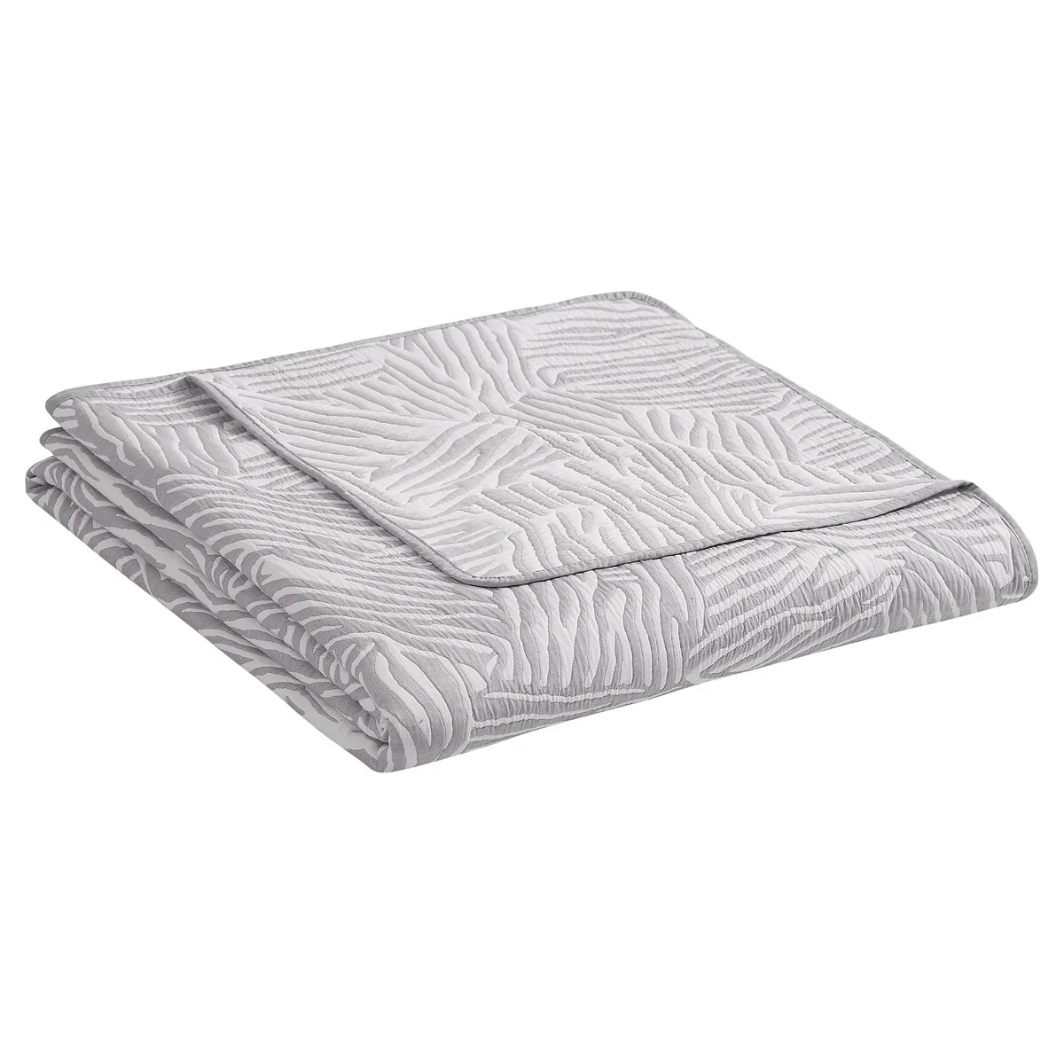 DESIGN STUDIO Abstract Zebra Light Grey 3-Piece All-Season Soft Woven Matelasse Jacquard Reversible Cotton Blend Quilt Set