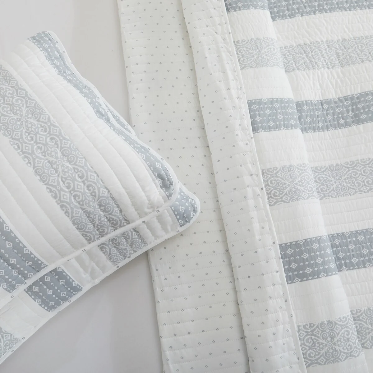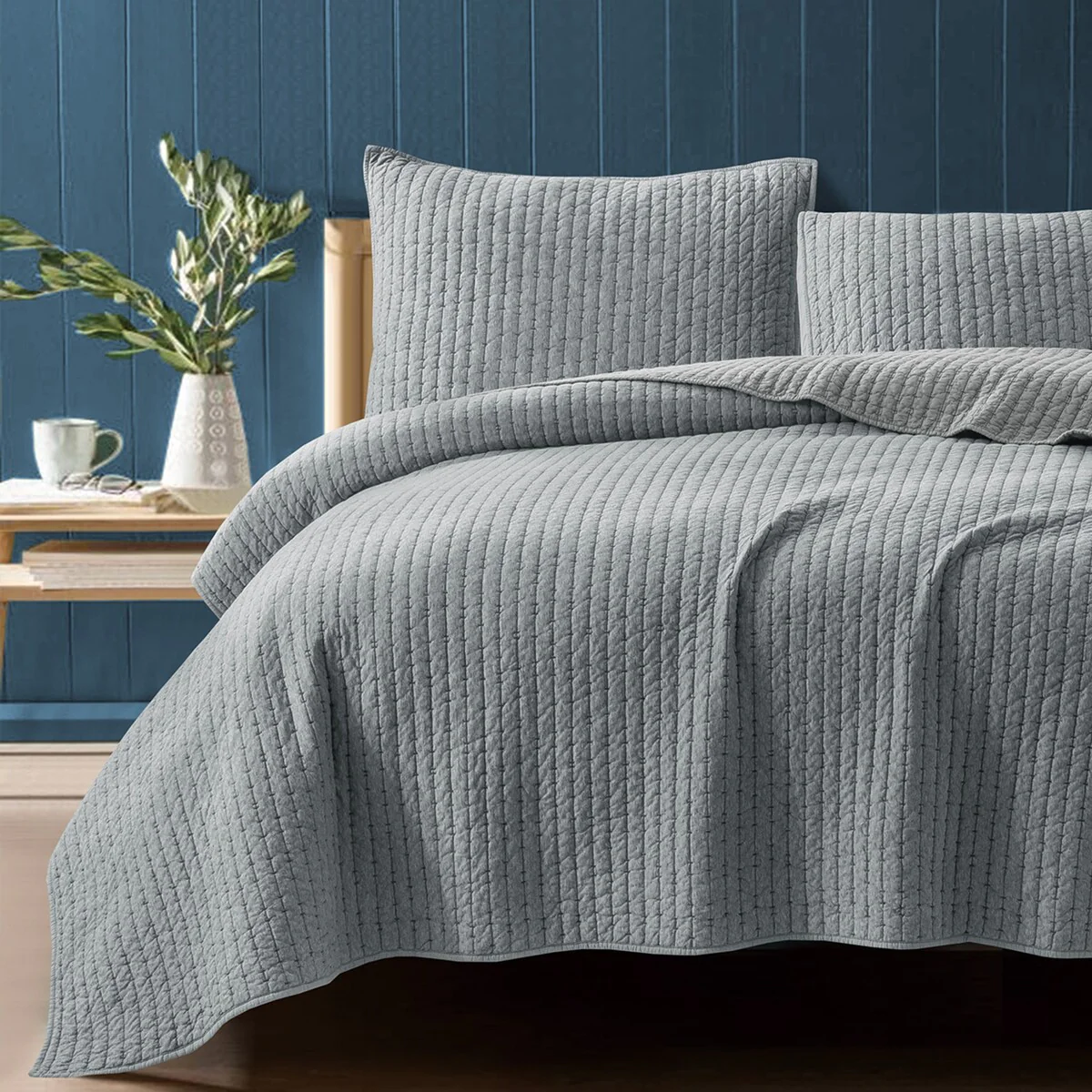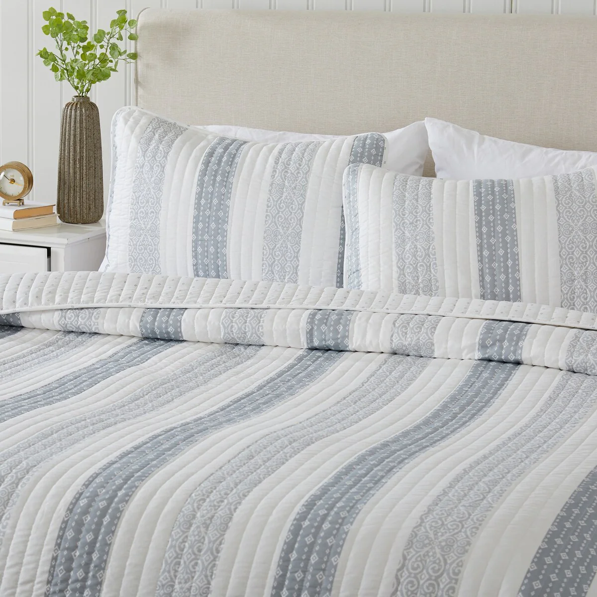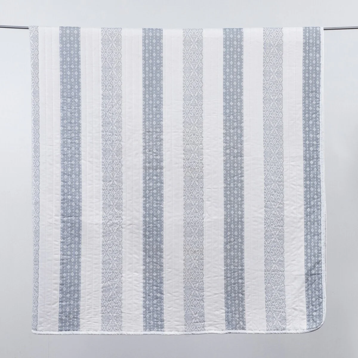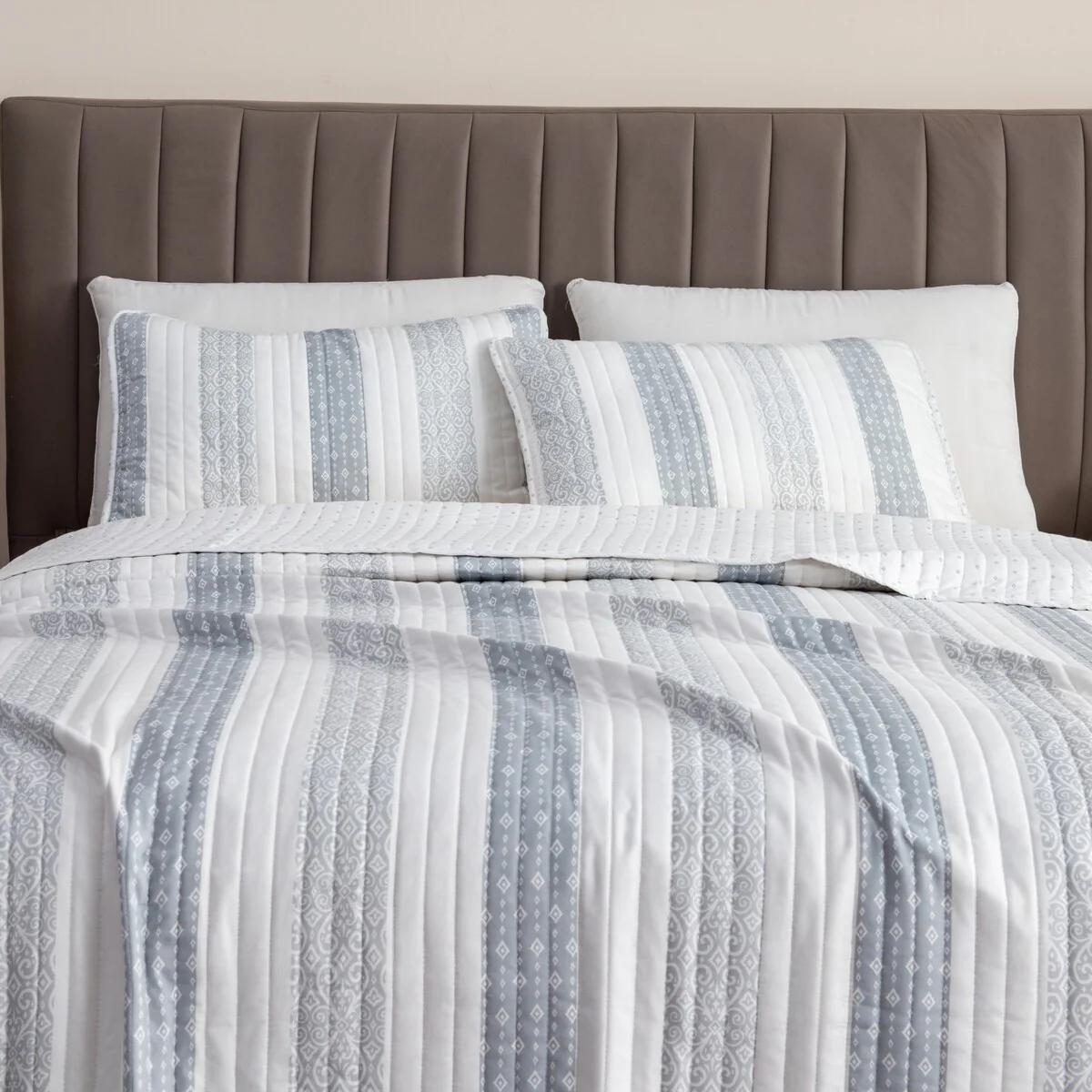 Premium Patterned Stripe Design Microfiber Quilt Set With Shams