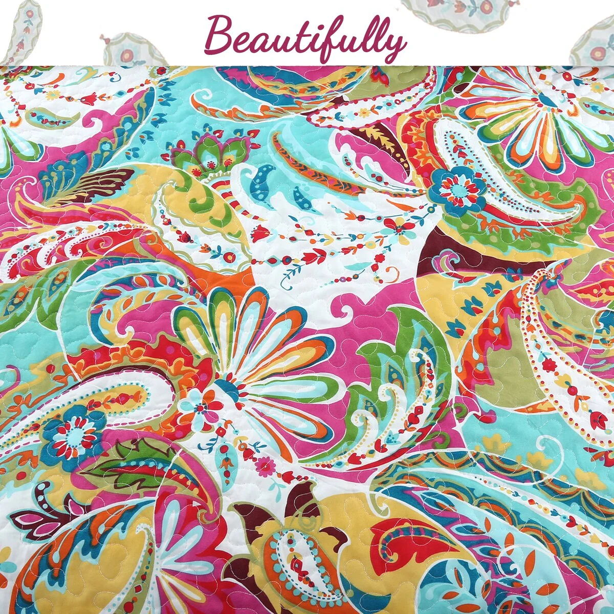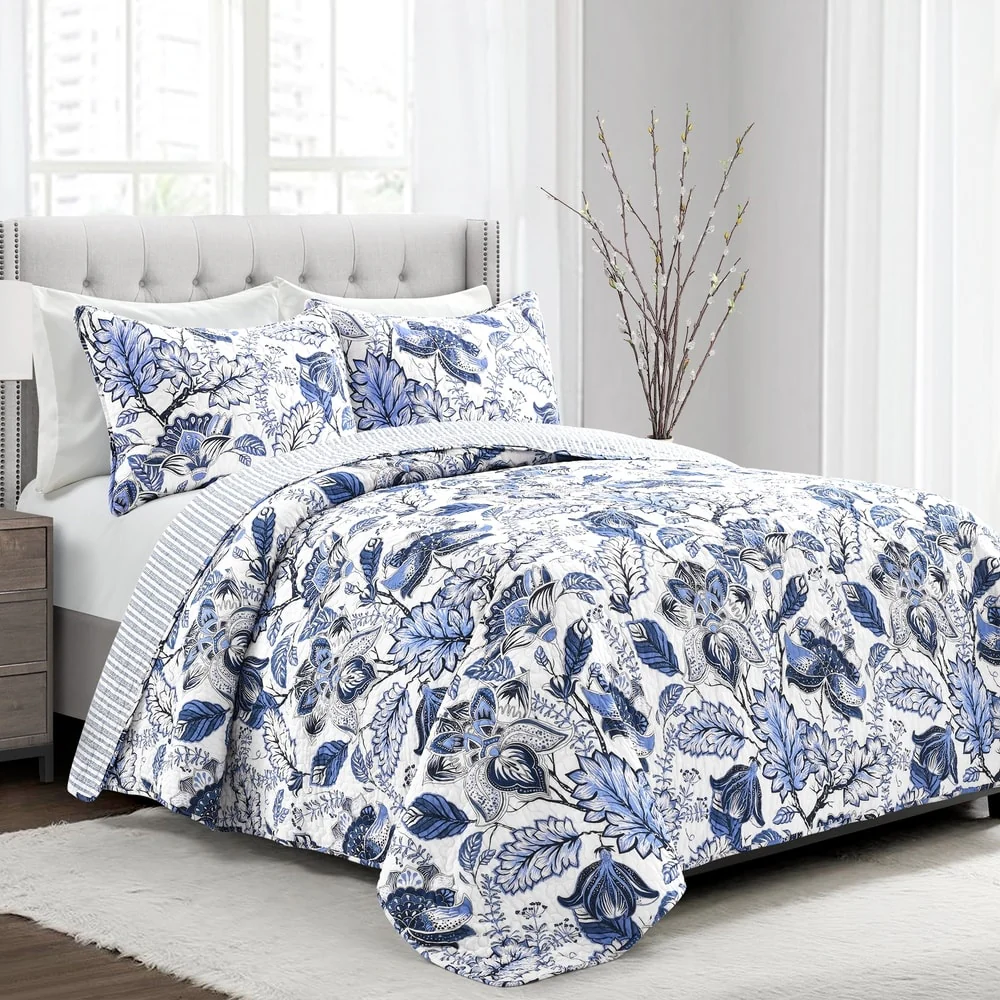 Flourish Colorful Floral Reversible 3-Piece Quilt Bedding Set
