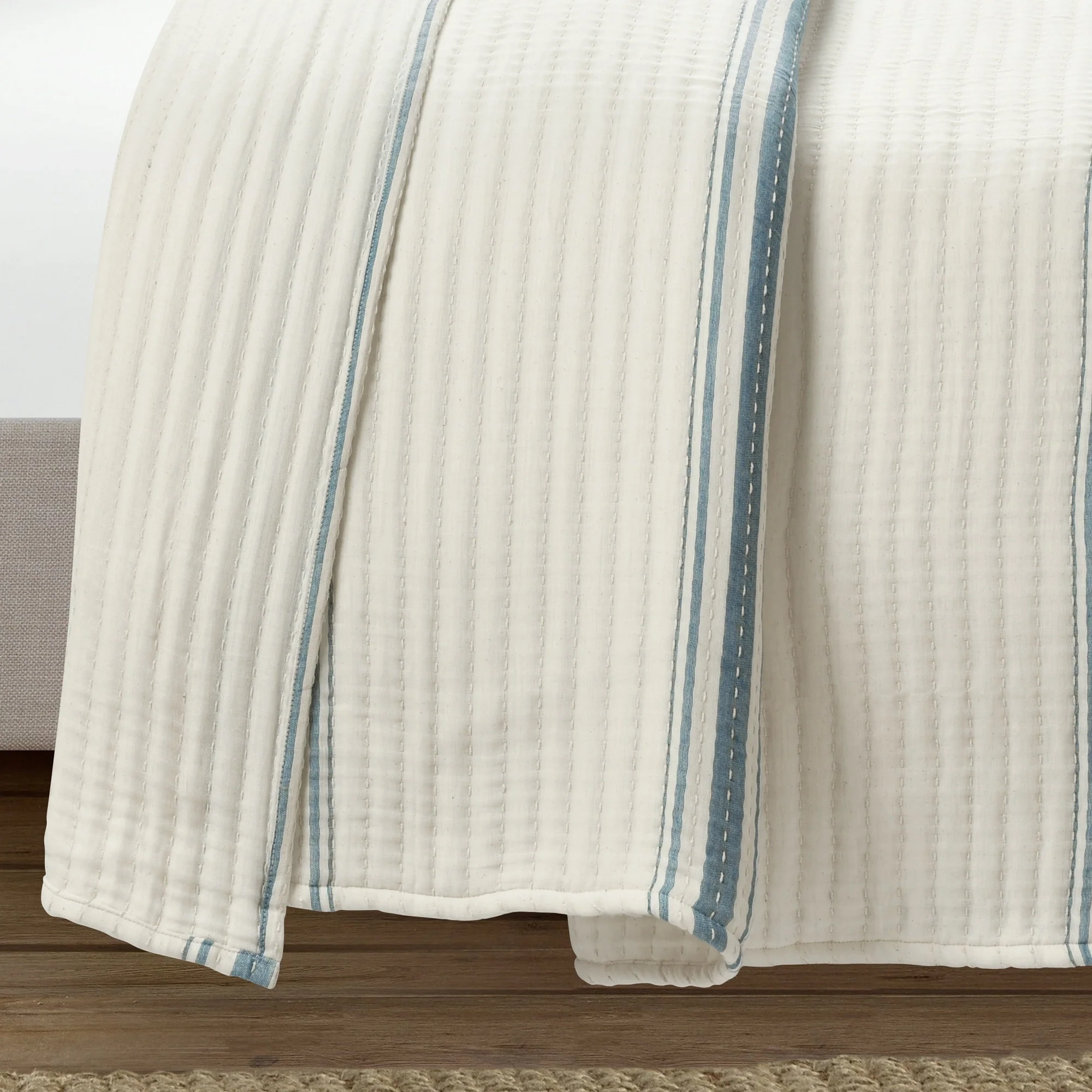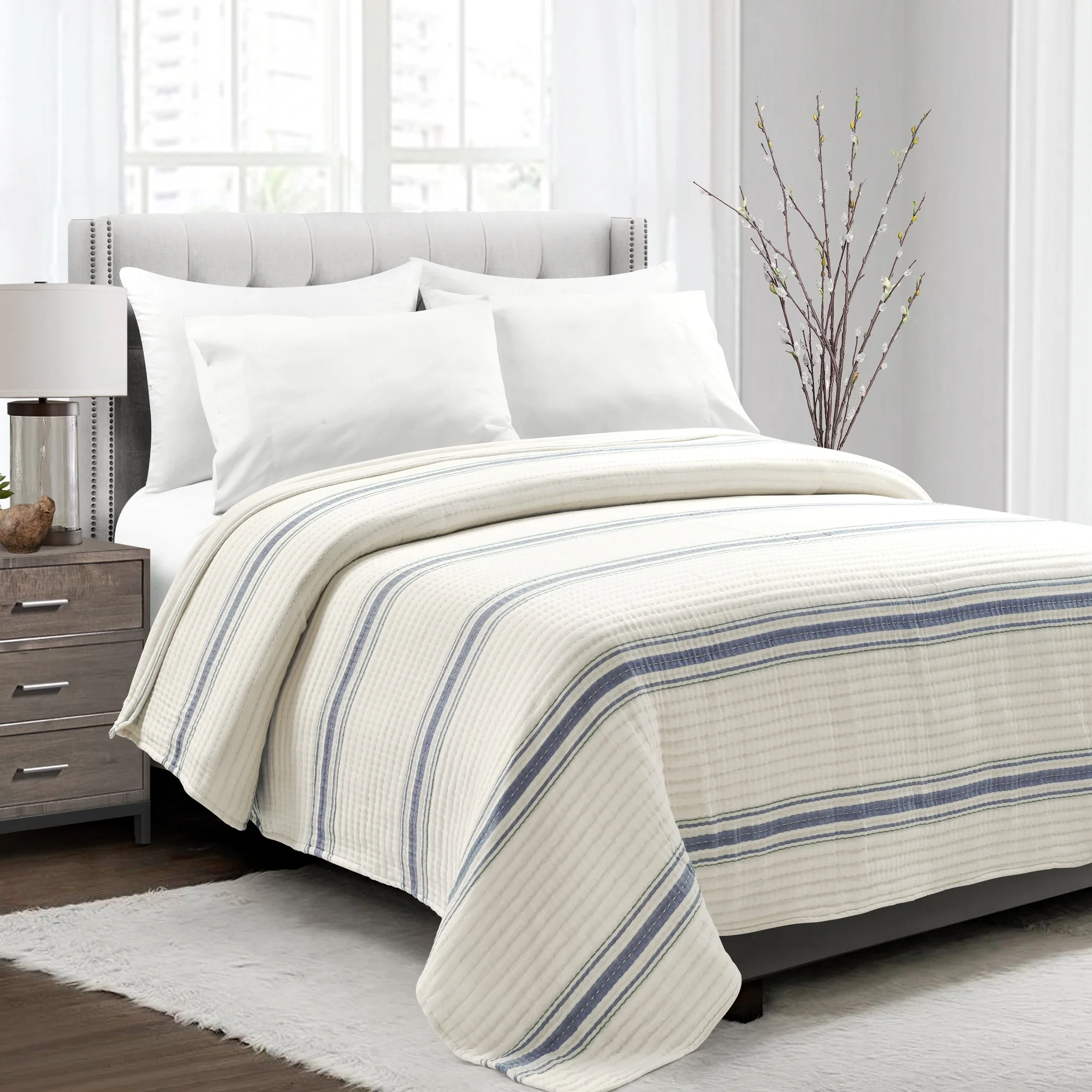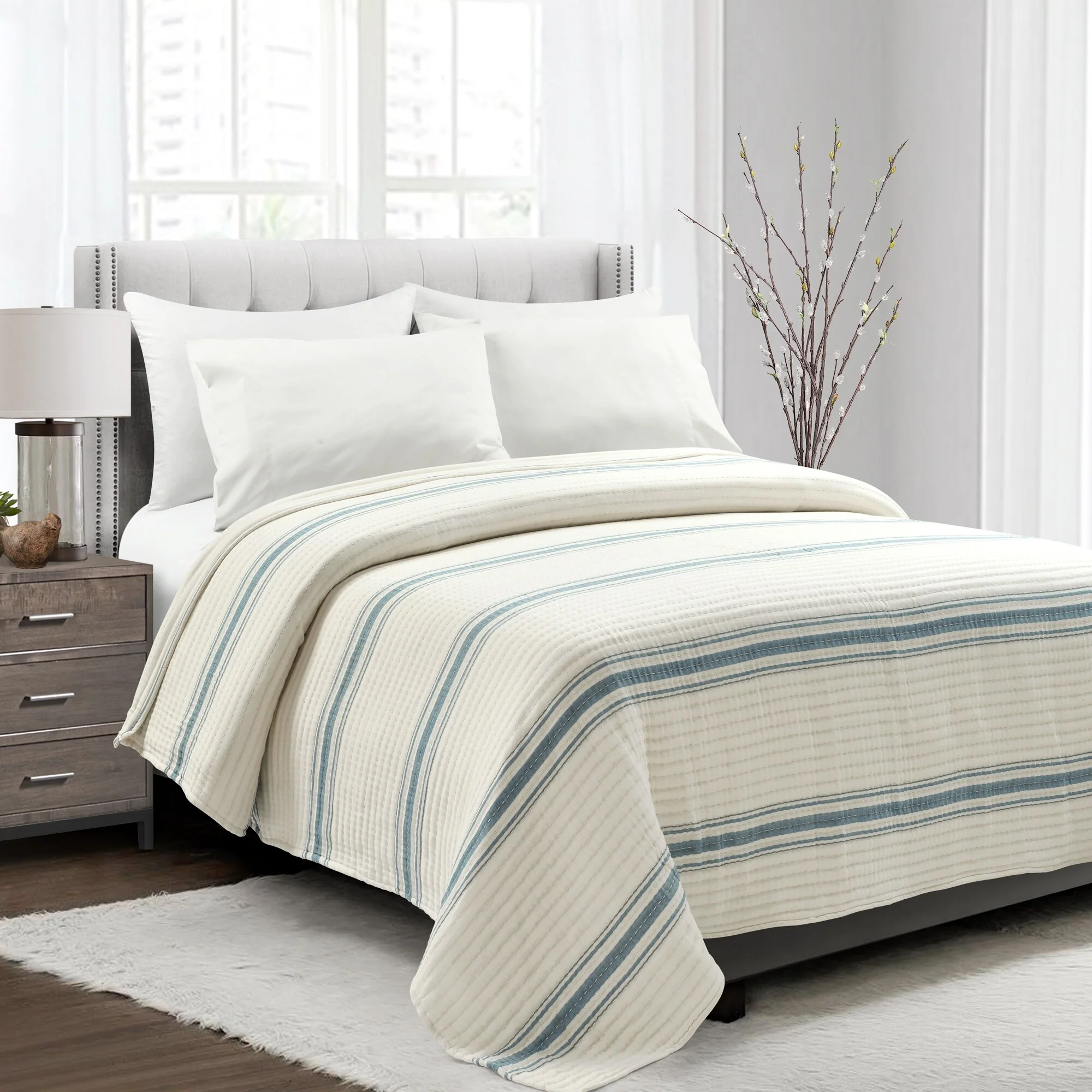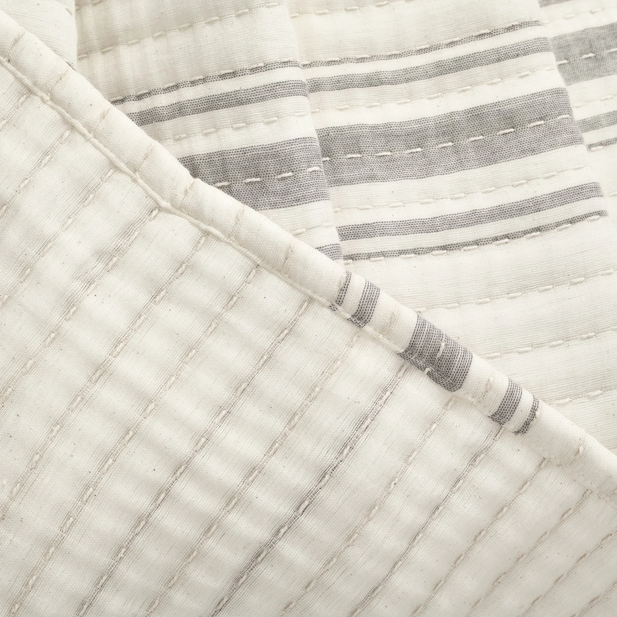Lush Decor Farmhouse Stripe Kantha Pick Stitch Yarn Dyed Cotton Woven Quilt/Coverlet