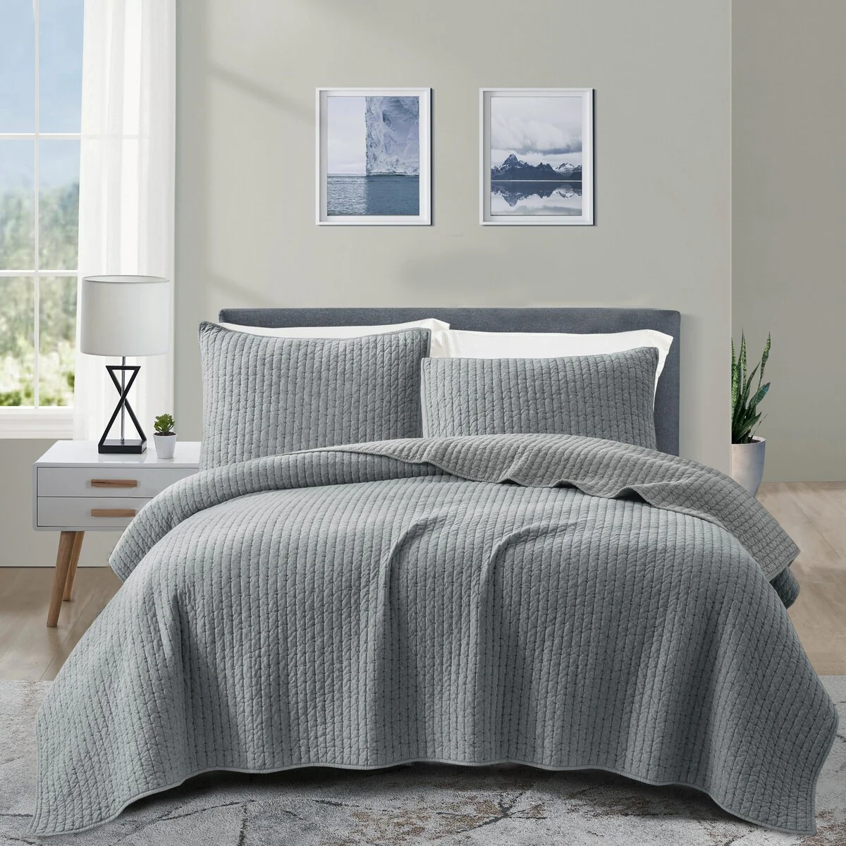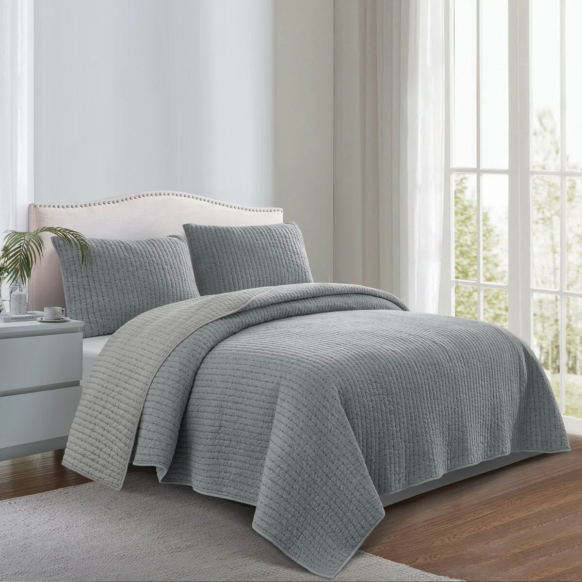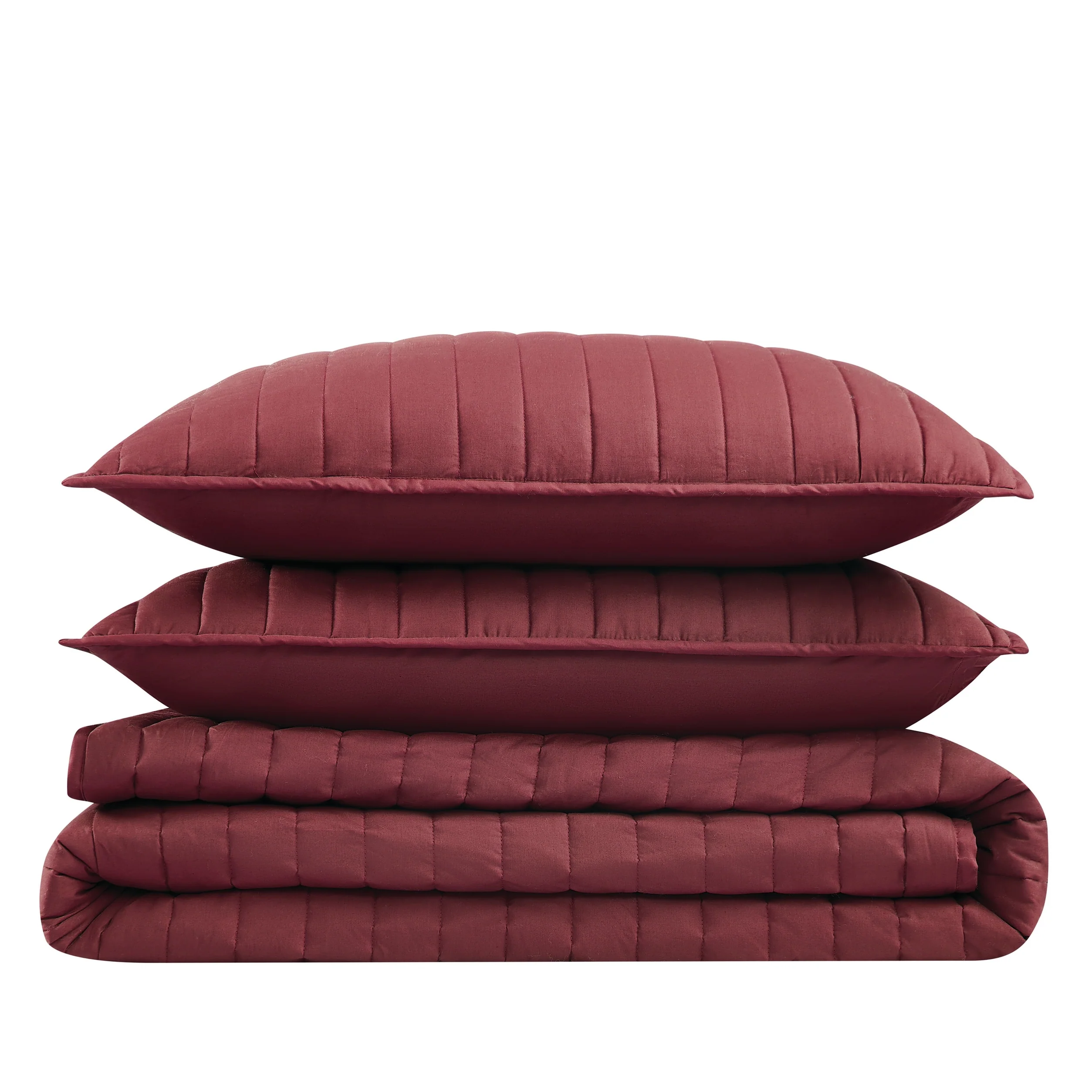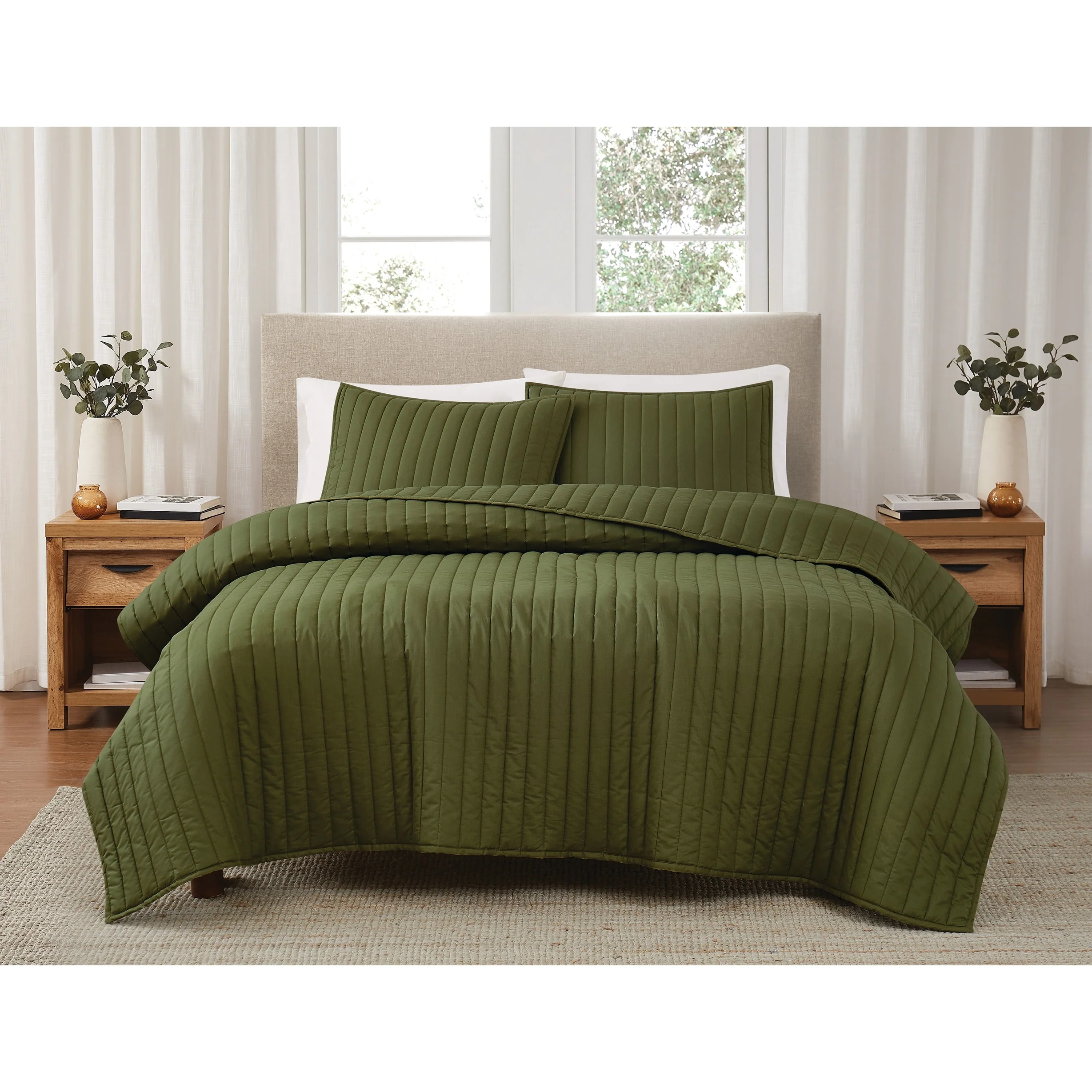 Linery & Co. Detailed Channel Stitch Microfiber Quilt Set With Shams.