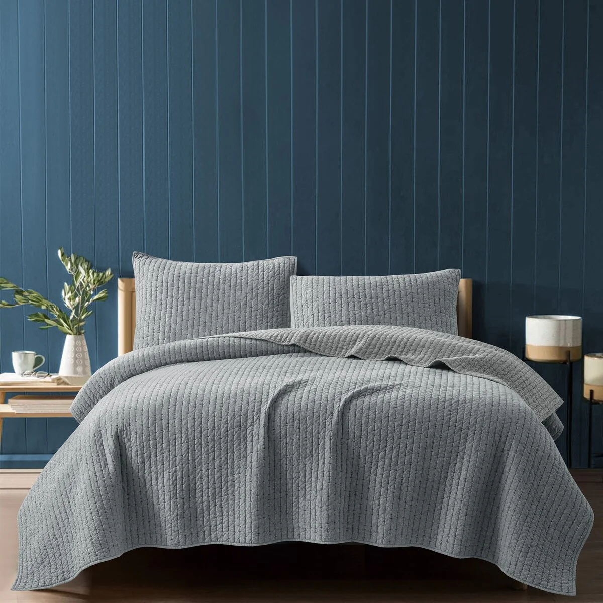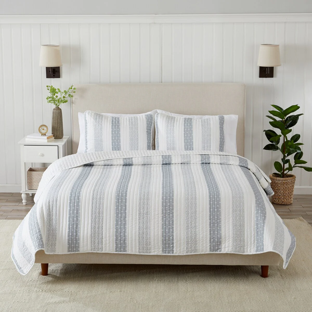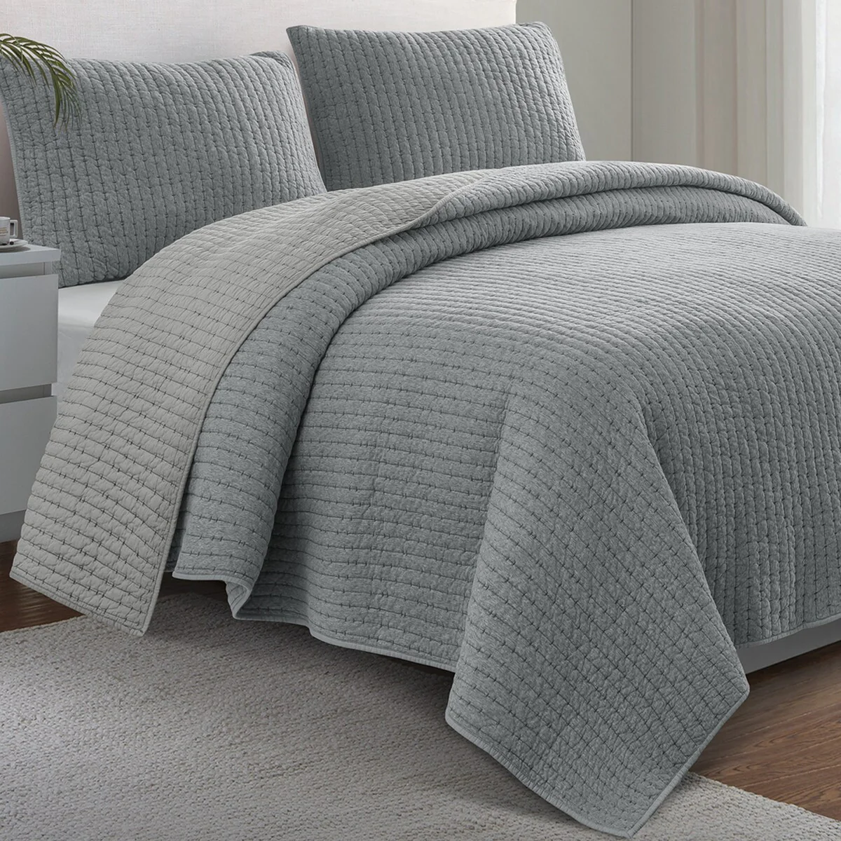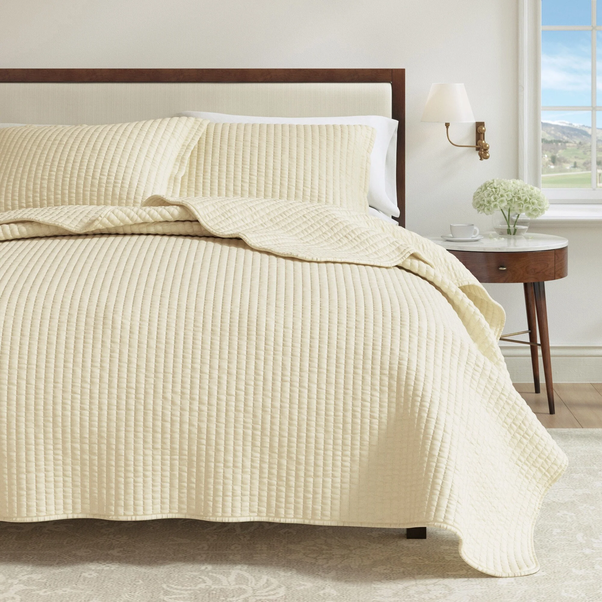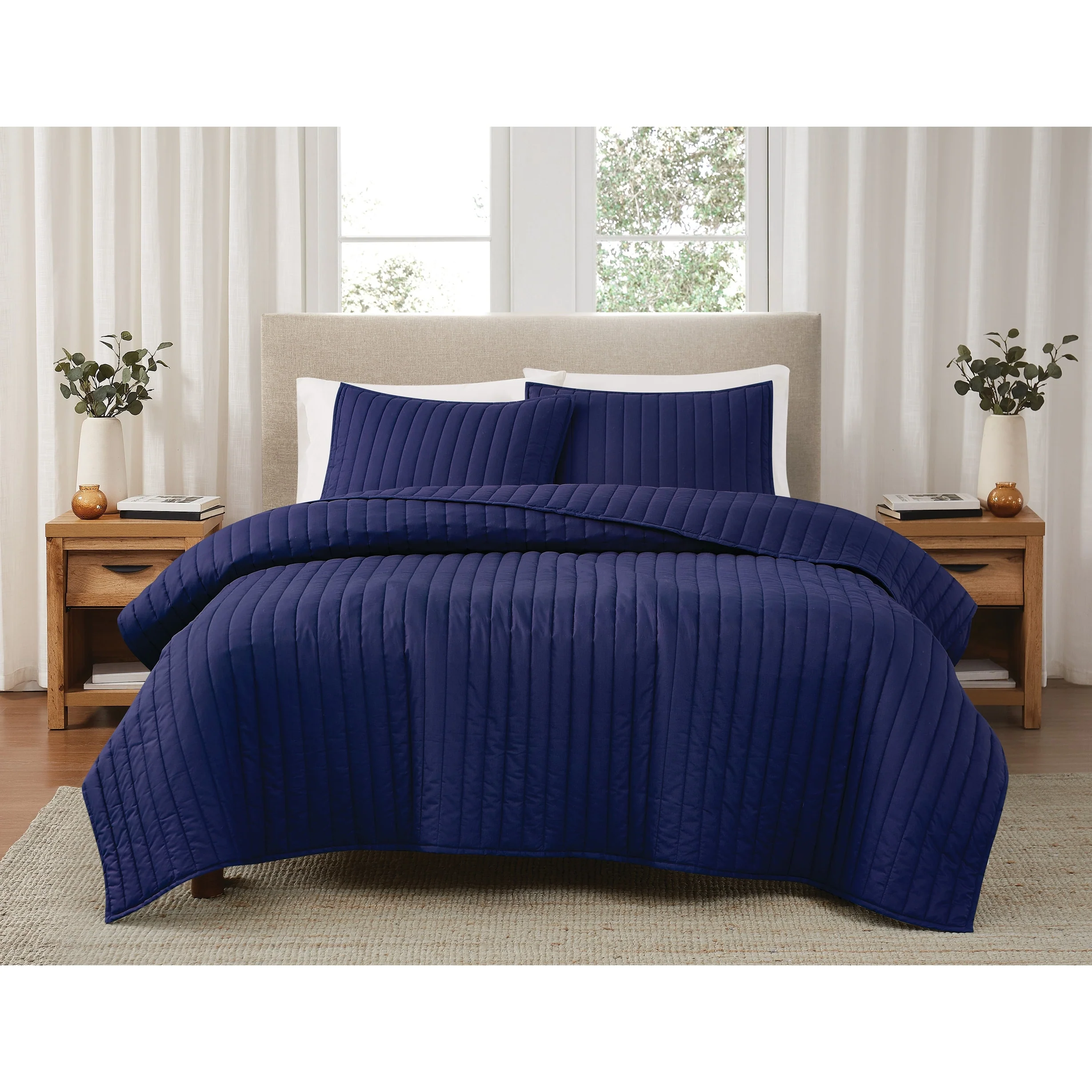 Linery & Co. Detailed Channel Stitch Microfiber Quilt Set With Shams.