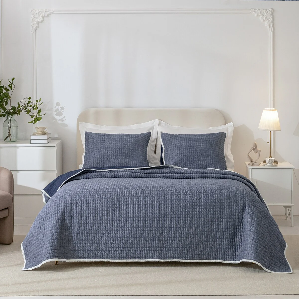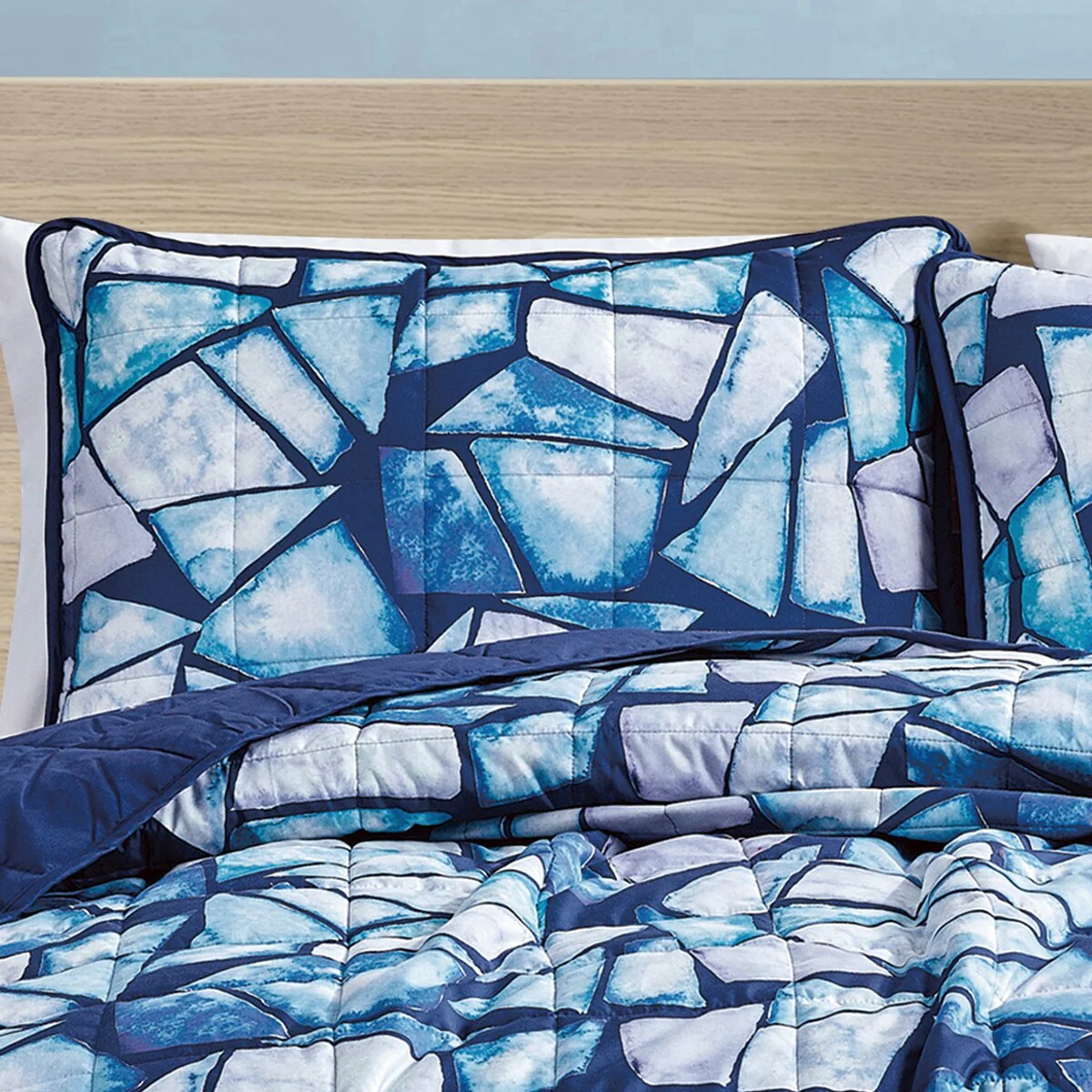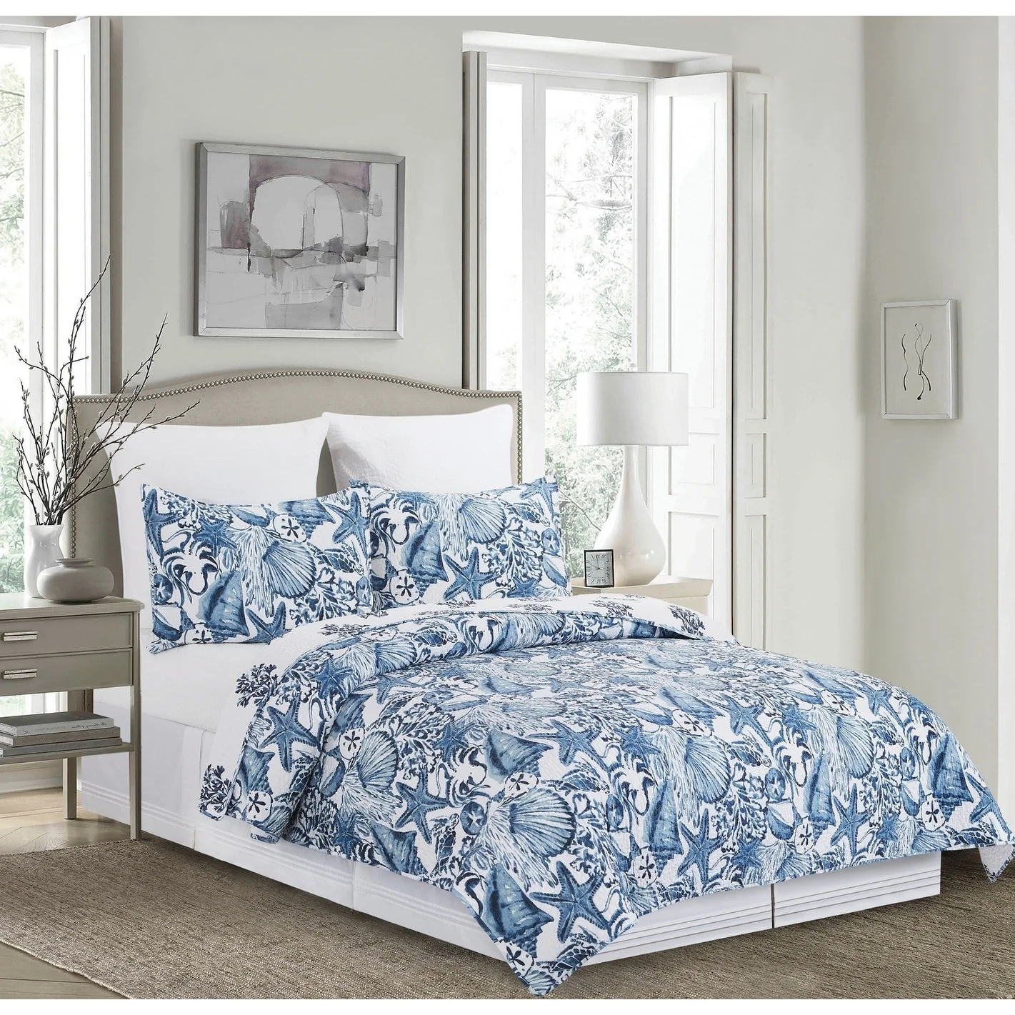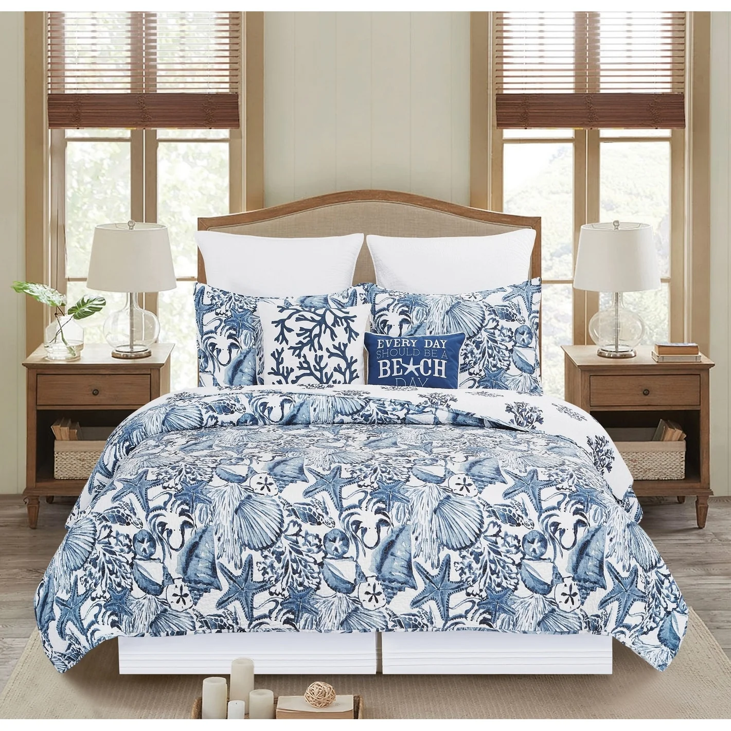 Premium Seashell Patchwork Microfiber Quilt Set With Shams